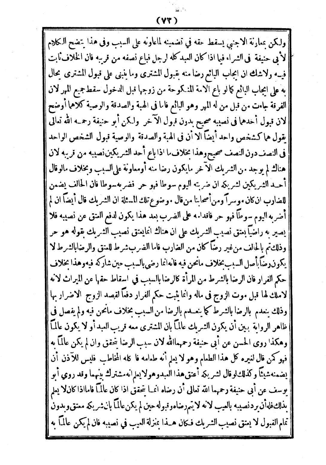 وَإِنَّمَا يَثْبُتُ حُكْمُ الْفِرَارِ دَفْعًا لِقَصْدِ الزَّوْجِ الْإِضْرَارَ بِهَا، وَذَلِكَ يَنْعَدِمُ بِالرِّضَا بِالشَّرْطِ كَمَا يَنْعَدِمُ بِالرِّضَا مِنْ السَّبَبِ بِخِلَافِ مَا نَحْنُ فِيهِ، وَلَمْ يُفَصِّلْ فِي ظَاهِرِ الرِّوَايَةِ بَيْنَ أَنْ يَكُونَ الشَّرِيكُ عَالِمًا بِأَنَّ الْمُشْتَرِيَ مَعَهُ قَرِيبُ الْعَبْدِ، أَوْ لَا يَكُونَ عَالِمًا، وَهَكَذَا رَوَى الْحَسَنُ عَنْ أَبِي حَنِيفَةَ رَحِمَهُمَا اللَّهُ؛ لِأَنَّ سَبَبَ الرِّضَا يَتَحَقَّقُ وَإِنْ لَمْ يَكُنْ عَالِمًا بِهِ فَهُوَ كَمَنْ قَالَ لِغَيْرِهِ: كُلْ هَذَا الطَّعَامَ، وَهُوَ يَعْلَمُ أَنَّهُ طَعَامُهُ فَأَكَلَهُ الْمُخَاطَبُ فَلَيْسَ لِلْآذِنِ أَنْ يُضَمِّنَهُ شَيْئًا، وَكَذَلِكَ لَوْ قَالَ لِشَرِيكِهِ: أَعْتِقْ هَذَا الْعَبْدَ وَهُوَ لَا يَعْلَمُ أَنَّهُ مُشْتَرَكٌ بَيْنَهُمَا، وَقَدْ رَوَى أَبُو يُوسُفَ عَنْ أَبِي حَنِيفَةَ - رَحِمَهُمَا اللَّهُ تَعَالَى - أَنَّ رِضَاهُ إنَّمَا يَتَحَقَّقُ إذَا كَانَ عَالِمًا، فَأَمَّا إذَا كَانَ لَا يَعْلَمُ بِذَلِكَ فَلَهُ أَنْ يَرُدَّ نَصِيبَهُ بِالْعَيْبِ؛ لِأَنَّهُ لَا يَتِمُّ رِضَاهُ، وَقَبُولُهُ حِينَ لَمْ يَكُنْ عَالِمًا بِأَنَّ شَرِيكَهُ مُعْتِقٌ، وَبِدُونِ تَمَامِ الْقَبُولِ لَا يَعْتِقُ نَصِيبُ الشَّرِيكِ فَكَانَ هَذَا بِمَنْزِلَةِ الْعَيْبِ فِي نَصِيبِهِ فَإِنْ لَمْ يَكُنْ عَالِمًا بِهِ