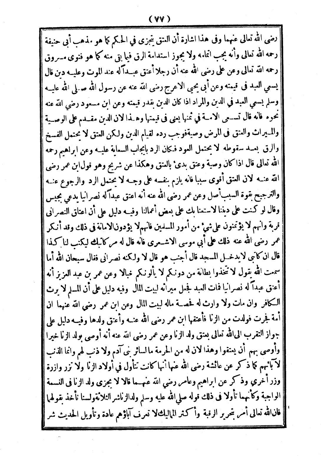 - رَضِيَ اللَّهُ تَعَالَى عَنْهُمَا - وَفِي هَذَا إشَارَةٌ أَنَّ الْعِتْقَ يَتَجَزَّأُ فِي الْحُكْمِ كَمَا هُوَ مَذْهَبُ أَبِي حَنِيفَةَ - رَحِمَهُ اللَّهُ تَعَالَى -، وَأَنَّهُ يَجِبُ إتْمَامُهُ، وَلَا يَجُوزُ اسْتِدَامَةُ الرِّقِّ فِيمَا بَقِيَ مِنْهُ كَمَا هُوَ فَتْوَى مَسْرُوقٍ - رَحِمَهُ اللَّهُ تَعَالَى -.