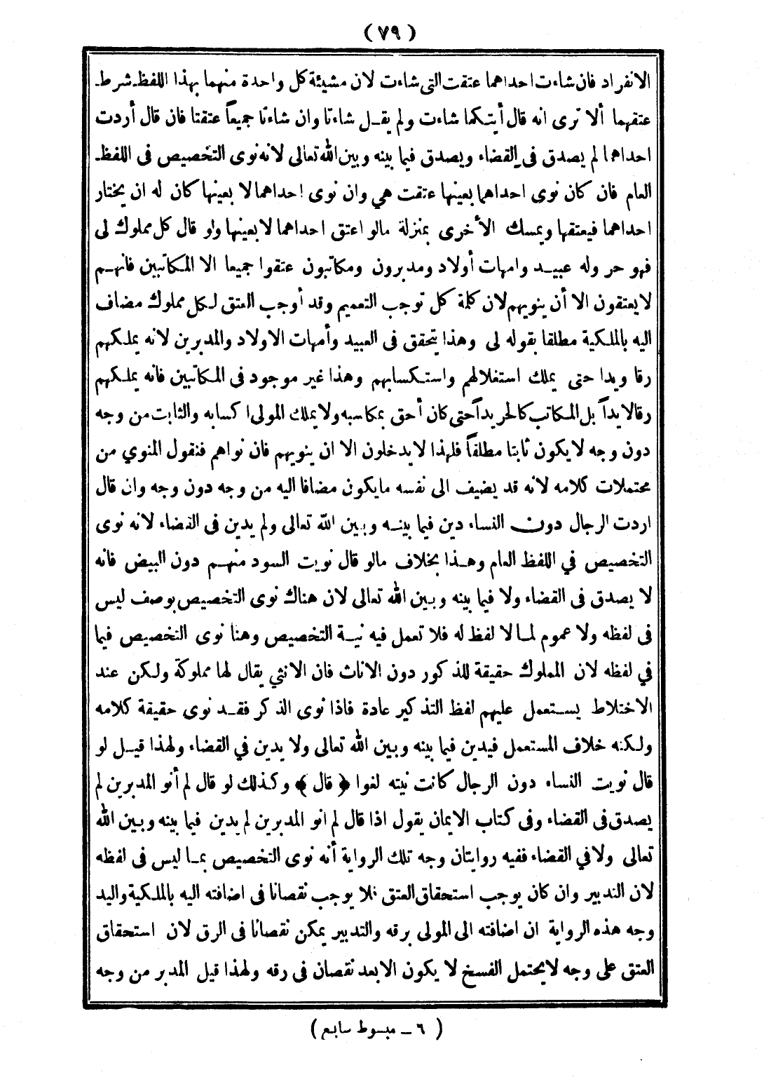 وَلَوْ قَالَ: كُلُّ مَمْلُوكٍ لِي فَهُوَ حُرٌّ، وَلَهُ عَبِيدٌ، وَأُمَّهَاتُ أَوْلَادٍ وَمُدَبَّرُونَ، وَمُكَاتَبُونَ عَتَقُوا جَمِيعًا إلَّا الْمُكَاتَبِينَ فَإِنَّهُمْ لَا يَعْتِقُونَ إلَّا أَنْ يَنْوِيَهُمْ؛ لِأَنَّ كَلِمَةَ كُلٍّ تُوجِبُ التَّعْمِيمَ، وَقَدْ أَوْجَبَ الْعِتْقَ لِكُلِّ مَمْلُوكٍ مُضَافٍ إلَيْهِ بِالْمِلْكِيَّةِ مُطْلَقًا بِقَوْلِهِ لِي، وَهَذَا يَتَحَقَّقُ فِي الْعَبِيدِ، وَأُمَّهَاتِ الْأَوْلَادِ وَالْمُدَبَّرِينَ؛ لِأَنَّهُ يَمْلِكُهُمْ رِقًّا، وَيَدًا حَتَّى يَمْلِكَ اسْتِغْلَالَهُمْ وَاسْتِكْسَابَهُمْ، وَهَذَا غَيْرُ مَوْجُودٍ فِي الْمُكَاتَبِينَ؛ فَإِنَّهُ يَمْلِكُهُمْ رِقًّا لَا يَدًا بَلْ الْمُكَاتَبُ كَالْحُرِّ يَدًا حَتَّى كَانَ أَحَقَّ بِمَكَاسِبِهِ، وَلَا يَمْلِكُ الْمَوْلَى إكْسَابَهُ، وَالثَّابِتُ مِنْ وَجْهٍ دُونَ وَجْهٍ لَا يَكُونُ ثَابِتًا مُطْلَقًا فَلِهَذَا لَا يَدْخُلُونَ إلَّا أَنْ يَنْوِيَهُمْ، فَإِنْ نَوَاهُمْ فَنَقُولُ: الْمَنْوِيُّ مِنْ مُحْتَمَلَاتِ كَلَامِهِ؛ لِأَنَّهُ قَدْ يُضِيفُ إلَى نَفْسِهِ مَا يَكُونُ مُضَافًا إلَيْهِ مِنْ وَجْهٍ دُونَ وَجْهٍ، وَإِنْ قَالَ: أَرَدْت الرِّجَالَ دُونَ النِّسَاءِ دِينَ فِيمَا بَيْنَهُ وَبَيْنَ اللَّهِ تَعَالَى، وَلَمْ يَدِنْ فِي الْقَضَاءِ؛ لِأَنَّهُ نَوَى التَّخْصِيصَ فِي اللَّفْظِ الْعَامِّ، وَهَذَا بِخِلَافِ مَا لَوْ قَالَ نَوَيْت السُّودَ مِنْهُمْ دُونَ الْبِيضِ فَإِنَّهُ لَا يُصَدَّقُ فِي الْقَضَاءِ، وَلَا فِيمَا بَيْنَهُ، وَبَيْنَ اللَّهِ تَعَالَى؛ لِأَنَّ هُنَاكَ نَوَى التَّخْصِيصَ بِوَصْفٍ لَيْسَ فِي لَفْظِهِ، وَلَا عُمُومَ لِمَا لَا لَفْظَ لَهُ، فَلَا تَعْمَلُ فِيهِ نِيَّةُ التَّخْصِيصِ وَهُنَا نَوَى التَّخْصِيصَ فِيمَا فِي لَفْظِهِ؛ لِأَنَّ الْمَمْلُوكَ حَقِيقَةٌ لِلذُّكُورِ دُونَ الْإِنَاثِ، فَإِنَّ الْأُنْثَى يُقَالُ لَهَا: مَمْلُوكَةٌ وَلَكِنْ عِنْدَ الِاخْتِلَاطِ يُسْتَعْمَلُ عَلَيْهِمْ لَفْظُ التَّذْكِيرِ عَادَةً فَإِذَا نَوَى الذَّكَرَ فَقَدْ نَوَى حَقِيقَةَ كَلَامِهِ، وَلَكِنَّهُ خِلَافُ الْمُسْتَعْمَلِ، فَيَدِينُ فِيمَا بَيْنَهُ، وَبَيْنَ اللَّهِ تَعَالَى وَلَا يَدِينُ فِي الْقَضَاءِ، وَلِهَذَا قِيلُ: لَوْ قَالَ: نَوَيْت النِّسَاءَ دُونَ الرِّجَالِ كَانَتْ نِيَّتُهُ لَغْوًا.