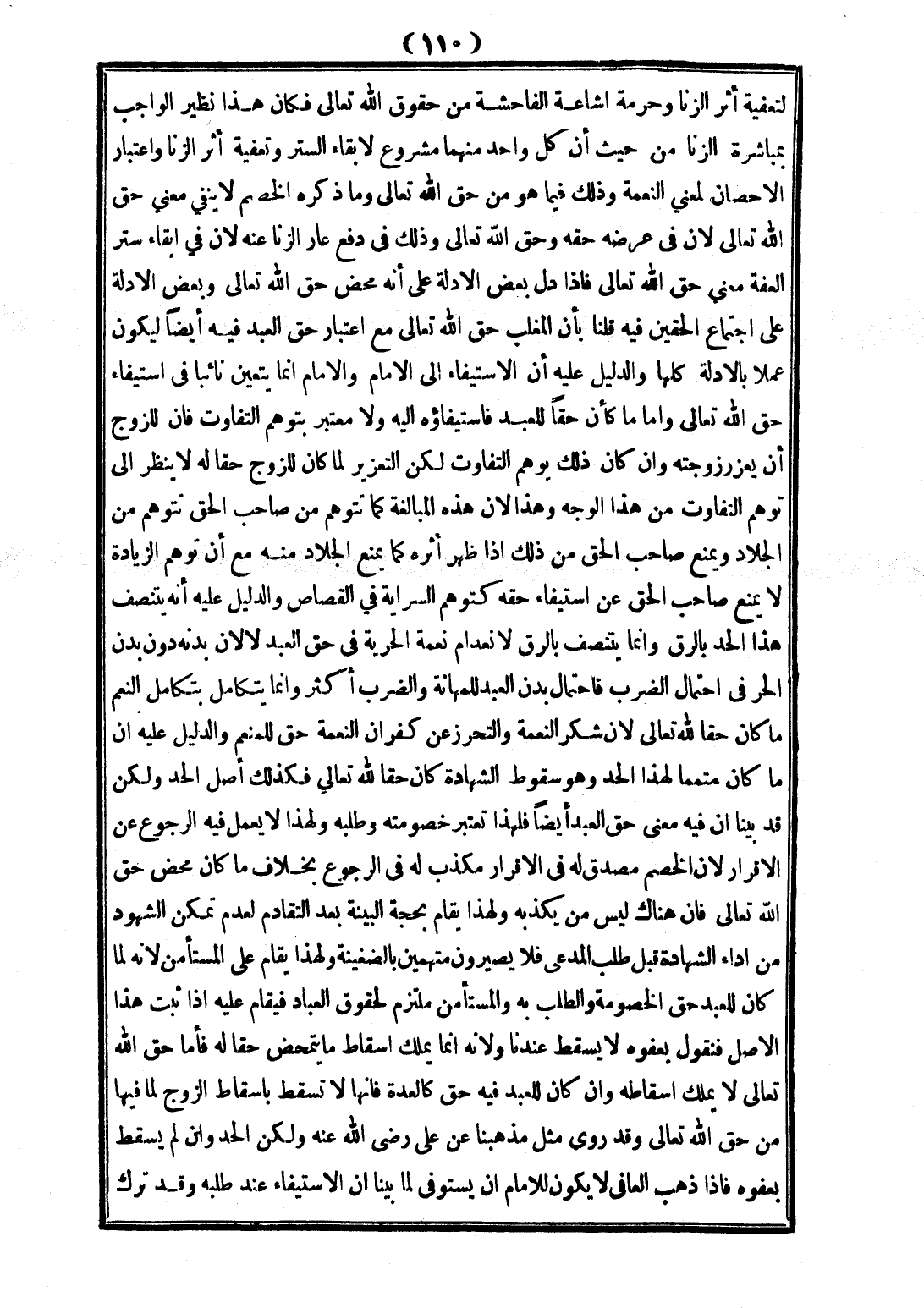 لِتَعْفِيَةِ أَثَرِ الزِّنَا وَحُرْمَةُ إشَاعَةِ الْفَاحِشَةِ مِنْ حُقُوقِ اللَّهِ تَعَالَى فَكَانَ هَذَا نَظِيرَ الْوَاجِبِ بِمُبَاشَرَةِ الزِّنَا مِنْ حَيْثُ إنَّ كُلَّ وَاحِدٍ مِنْهُمَا مَشْرُوعٌ لِإِبْقَاءِ السِّتْرِ وَتَعْفِيَةِ أَثَرِ الزِّنَا وَاعْتِبَارُ الْإِحْصَانِ لِمَعْنَى النِّعْمَةِ، وَذَلِكَ فِيمَا هُوَ مِنْ حَقِّ اللَّهِ تَعَالَى، وَمَا ذَكَرَهُ الْخَصْمُ لَا يَنْفِي مَعْنَى حَقِّ اللَّهِ تَعَالَى؛ لِأَنَّ فِي عِرْضِهِ حَقَّهُ وَحَقَّ اللَّهِ تَعَالَى، وَذَلِكَ فِي دَفْعِ عَارِ الزِّنَا عَنْهُ؛ لِأَنَّ فِي إبْقَاءِ سِتْرِ الْعِفَّةِ مَعْنَى حَقِّ اللَّهِ تَعَالَى، فَإِذَا دَلَّ بَعْضُ الْأَدِلَّةِ عَلَى أَنَّهُ مَحْضُ حَقِّ اللَّهِ تَعَالَى وَبَعْضُ الْأَدِلَّةِ عَلَى اجْتِمَاعِ الْحَقَّيْنِ فِيهِ، قُلْنَا بِأَنَّ الْمُغَلَّبَ حَقُّ اللَّهِ تَعَالَى مَعَ اعْتِبَارِ حَقِّ الْعَبْدِ فِيهِ أَيْضًا لِيَكُونَ عَمَلًا بِالْأَدِلَّةِ كُلِّهَا وَالدَّلِيلُ عَلَيْهِ أَنَّ الِاسْتِيفَاءَ إلَى الْإِمَامِ، وَالْإِمَامُ إنَّمَا يَتَعَيَّنُ نَائِبًا فِي اسْتِيفَاءِ حَقِّ اللَّهِ تَعَالَى.