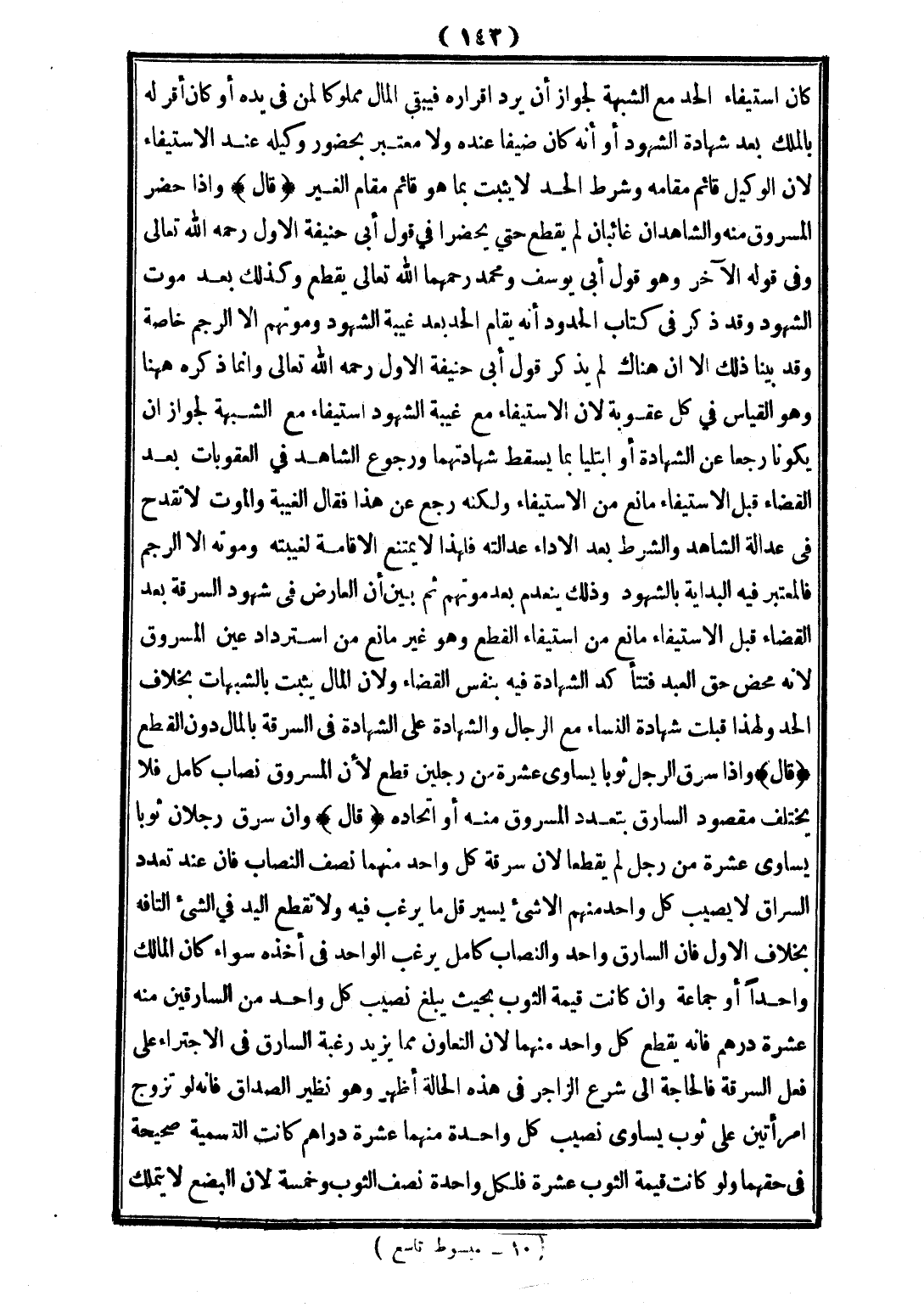 كَانَ اسْتِيفَاءَ الْحَدِّ مَعَ الشُّبْهَةِ لِجَوَازِ أَنْ يَرُدَّ إقْرَارُهُ فَيَبْقَى الْمَالُ مَمْلُوكًا لِمَنْ فِي يَدِهِ أَوْ كَانَ أَقَرَّ لَهُ بِالْمِلْكِ بَعْدَ شَهَادَةِ الشُّهُودِ أَوْ أَنَّهُ كَانَ ضَيْفًا عِنْدَهُ، وَلَا مُعْتَبَرَ بِحُضُورِ وَكِيلِهِ عِنْدَ الِاسْتِيفَاءِ؛ لِأَنَّ الْوَكِيلَ قَائِمٌ مَقَامَهُ وَشَرْطُ الْحَدِّ لَا يَثْبُتُ بِمَا هُوَ قَائِمٌ مَقَامَ الْغَيْرِ