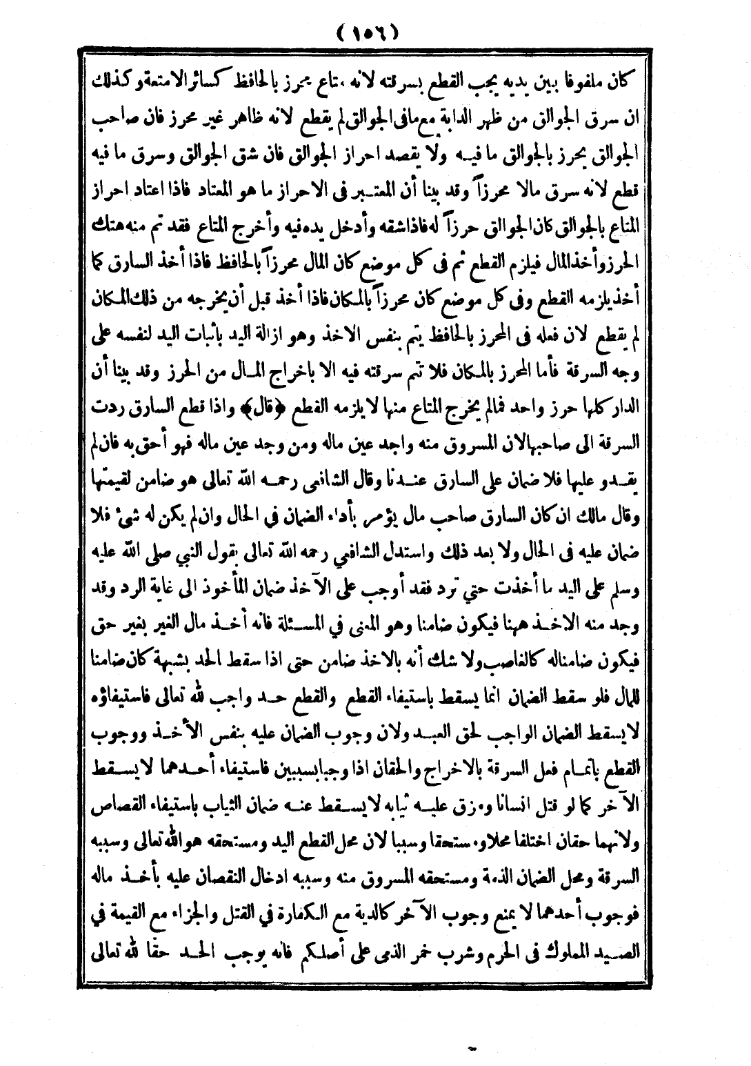 كَانَ مَلْفُوفًا بَيْنَ يَدَيْهِ يَجِبُ الْقَطْعُ بِسَرِقَتِهِ؛ لِأَنَّهُ مَتَاعٌ مُحْرَزٌ بِالْحَافِظِ كَسَائِرِ الْأَمْتِعَةِ، وَكَذَلِكَ إنْ سَرَقَ الْجُوَالِقَ مِنْ ظَهْرِ الدَّابَّةِ مَعَ مَا فِي الْجُوَالِقِ لَمْ يُقْطَعْ؛ لِأَنَّهُ ظَاهِرٌ غَيْرُ مُحْرَزٍ، فَإِنَّ صَاحِبَ الْجُوَالِقِ يُحْرِزُ بِالْجُوَالِقِ مَا فِيهِ، وَلَا يَقْصِدُ إحْرَازَ الْجُوَالِقِ فَإِنْ شَقَّ الْجُوَالِقَ وَسَرَقَ مَا فِيهِ قُطِعَ؛ لِأَنَّهُ سَرَقَ مَالًا مُحْرَزًا، وَقَدْ بَيَّنَّا أَنَّ الْمُعْتَبَرَ فِي الْإِحْرَازِ مَا هُوَ الْمُعْتَادُ، فَإِذَا اعْتَادَ إحْرَازُ الْمَتَاعِ بِالْجُوَالِقِ كَانَ الْجُوَالِقُ حِرْزًا لَهُ، فَإِذَا شَقَّهُ وَأَدْخَلَ يَدَهُ فِيهِ وَأَخْرَجَ الْمَتَاعَ، فَقَدْ تَمَّ مِنْهُ هَتْكُ الْحِرْزِ وَأَخْذُ الْمَالِ فَيَلْزَمُ الْقَطْعُ ثُمَّ فِي كُلِّ مَوْضِعٍ كَانَ الْمَالُ مُحْرَزًا بِالْحَافِظِ، فَإِذَا أَخَذَ السَّارِقُ كَمَا أَخَذَ يَلْزَمُهُ الْقَطْعُ، وَفِي كُلِّ مَوْضِعٍ كَانَ مُحْرَزًا بِالْمَكَانِ، فَإِذَا أَخَذَ قَبْلَ أَنْ يُخْرِجَهُ مِنْ ذَلِكَ الْمَكَانِ لَمْ يُقْطَعْ؛ لِأَنَّ فِعْلَهُ فِي الْمُحْرَزِ بِالْحَافِظِ يَتِمُّ بِنَفْسِ الْأَخْذِ، وَهُوَ إزَالَةُ الْيَدِ بِإِثْبَاتِ الْيَدِ لِنَفْسِهِ عَلَى وَجْهِ السَّرِقَةِ، فَأَمَّا الْمُحْرَزُ بِالْمَكَانِ فَلَا تَتِمُّ سَرِقَتُهُ فِيهِ إلَّا بِإِخْرَاجِ الْمَالِ مِنْ الْحِرْزِ، وَقَدْ بَيَّنَّا أَنَّ الدَّارَ كُلَّهَا حِرْزٌ وَاحِدٌ فَمَا لَمْ يَخْرُجْ الْمَتَاعُ مِنْهَا لَا يَلْزَمُهُ الْقَطْعُ