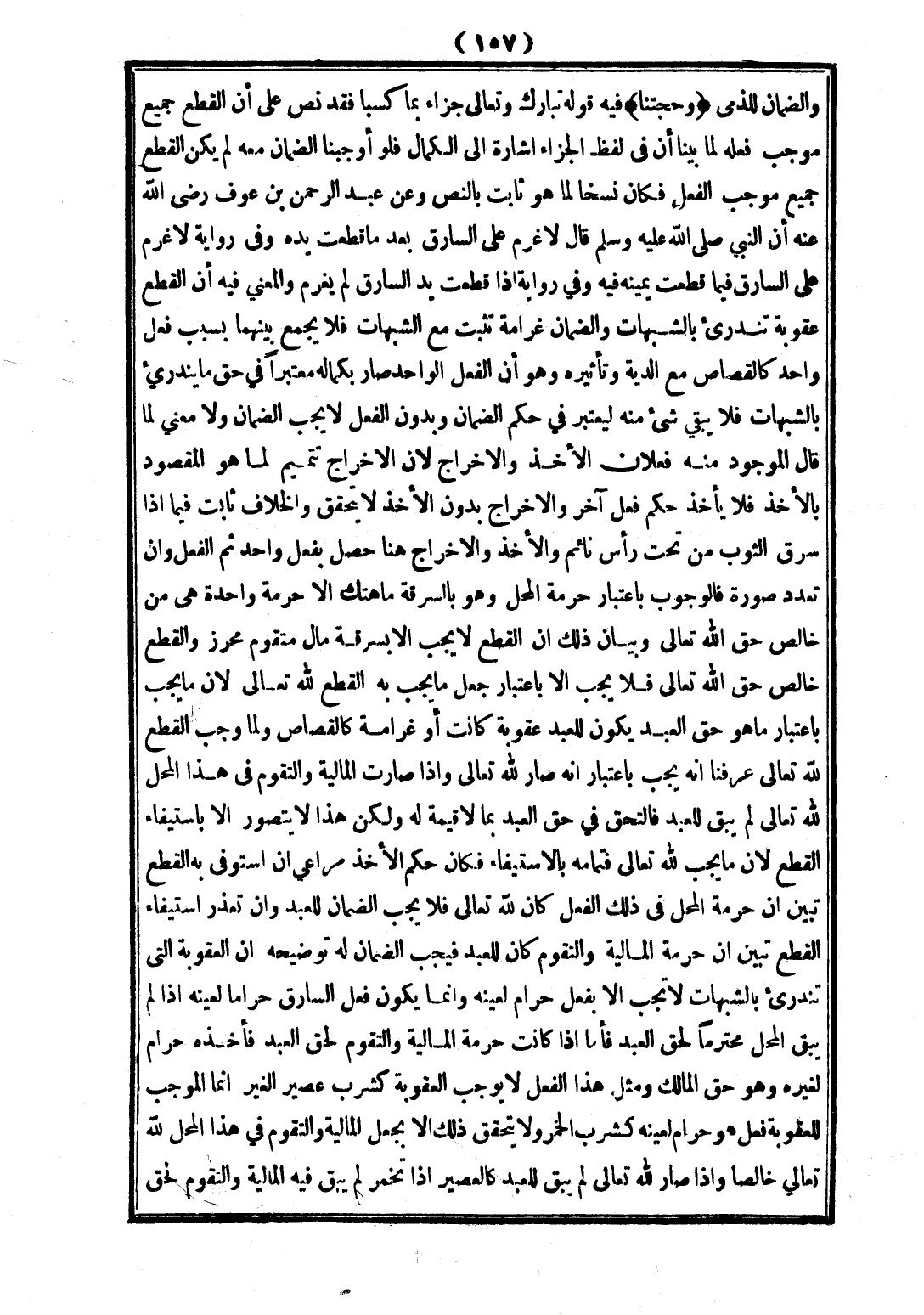 وَإِذَا صَارَتْ الْمَالِيَّةُ وَالتَّقَوُّمُ فِي هَذَا الْمَحَلِّ لِلَّهِ تَعَالَى لَمْ يَبْقَ لِلْعَبْدِ فَالْتَحَقَ فِي حَقِّ الْعَبْدِ بِمَا لَا قِيمَةَ لَهُ، وَلَكِنَّ هَذَا لَا يُتَصَوَّرُ إلَّا بِاسْتِيفَاءِ الْقَطْعِ؛ لِأَنَّ مَا يَجِبُ لِلَّهِ تَعَالَى فَتَمَامُهُ بِالِاسْتِيفَاءِ فَكَانَ حُكْمُ الْأَخْذِ مُرَاعًى إنْ اسْتَوْفَى بِهِ الْقَطْعَ تَبَيَّنَ أَنَّ حُرْمَةَ الْمَحَلِّ فِي ذَلِكَ الْفِعْلِ كَانَ لِلَّهِ تَعَالَى فَلَا يَجِبُ الضَّمَانُ لِلْعَبْدِ، وَإِنْ تَعَذَّرَ اسْتِيفَاءُ الْقَطْعِ تَبَيَّنَ أَنَّ حُرْمَةَ الْمَالِيَّةِ وَالتَّقَوُّمِ كَانَ لِلْعَبْدِ فَيَجِبُ الضَّمَانُ لَهُ تَوْضِيحُهُ أَنَّ الْعُقُوبَةَ الَّتِي تَنْدَرِئُ بِالشُّبُهَاتِ لَا تَجِبُ إلَّا بِفِعْلِ حَرَامٍ لِعَيْنِهِ، وَإِنَّمَا يَكُونُ فِعْلُ السَّارِقِ حَرَامًا لِعَيْنِهِ إذَا لَمْ يَبْقَ الْمَحَلُّ مُحْتَرَمًا لَحِقَ الْعَبْدِ، فَأَمَّا إذَا كَانَتْ حُرْمَةُ الْمَالِيَّةِ وَالتَّقَوُّمِ لِحَقِّ الْعَبْدِ فَأَخْذُهُ حَرَامٌ لِغَيْرِهِ، وَهُوَ حَقُّ الْمَالِكِ وَمِثْلُ هَذَا الْفِعْلِ لَا يُوجِبُ الْعُقُوبَةَ كَشُرْبِ عَصِيرِ الْغَيْرِ إنَّمَا الْمُوجِبُ لِلْعُقُوبَةِ فِعْلٌ هُوَ حَرَامٌ لِعَيْنِهِ كَشُرْبِ الْخَمْرِ، وَلَا يَتَحَقَّقُ ذَلِكَ إلَّا بِجَعْلِ الْمَالِيَّةِ وَالتَّقَوُّمِ فِي هَذَا الْمَحَلِّ لِلَّهِ تَعَالَى خَالِصًا، وَإِذَا صَارَ لِلَّهِ تَعَالَى لَمْ يَبْقَ لِلْعَبْدِ كَالْعَصِيرِ إذَا تَخَمَّرَ لَمْ يَبْقَ فِيهِ الْمَالِيَّةُ وَالتَّقَوُّمُ لِحَقِّ