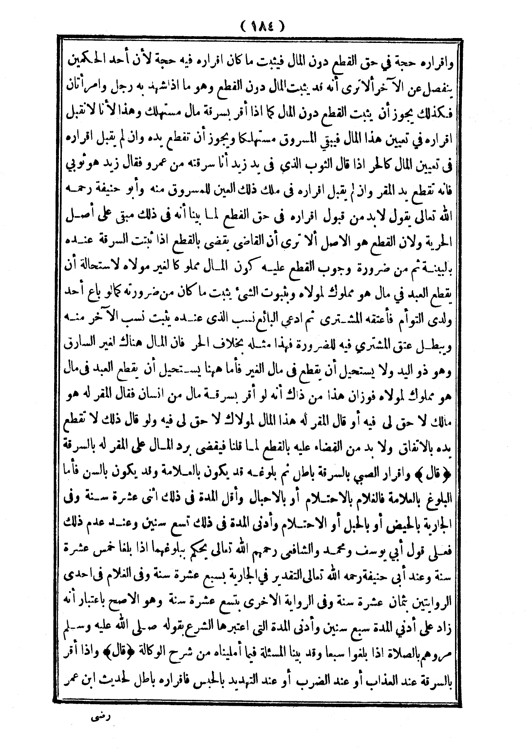 (قَالَ) وَإِقْرَارُ الصَّبِيِّ بِالسَّرِقَةِ بَاطِلٌ ثُمَّ بُلُوغُهُ قَدْ يَكُونُ بِالْعَلَامَةِ، وَقَدْ يَكُونُ بِالسِّنِّ، فَأَمَّا الْبُلُوغُ بِالْعَلَامَةِ فَالْغُلَامُ بِالِاحْتِلَامِ أَوْ بِالْإِحْبَالِ وَأَقَلُّ الْمُدَّةِ فِي ذَلِكَ اثْنَيْ عَشْرَةَ سَنَةً، وَفِي الْجَارِيَةِ بِالْحَيْضِ أَوْ بِالْحَبَلِ أَوْ الِاحْتِلَامِ وَأَدْنَى الْمُدَّةِ فِي ذَلِكَ تِسْعُ سِنِينَ، وَعِنْدَ عَدَمِ ذَلِكَ فَعَلَى قَوْلِ أَبِي يُوسُفَ وَمُحَمَّدٍ وَالشَّافِعِيِّ رَحِمَهُمْ اللَّهُ تَعَالَى يُحْكَمُ بِبُلُوغِهِمَا إذَا بَلَغَا خَمْسَ عَشْرَةَ سَنَةً، وَعِنْدَ أَبِي حَنِيفَةَ - رَحِمَهُ اللَّهُ تَعَالَى - التَّقْدِيرُ فِي الْجَارِيَةِ بِسَبْعِ عَشْرَةَ سَنَةً، وَفِي الْغُلَامِ فِي إحْدَى الرِّوَايَتَيْنِ بِثَمَانِ عَشْرَةَ سَنَةً، وَفِي الرِّوَايَةِ الْأُخْرَى بِتِسْعَ عَشْرَةَ سَنَةً، وَهُوَ الْأَصَحُّ بِاعْتِبَارِ أَنَّهُ زَادَ عَلَى أَدْنَى الْمُدَّةِ سَبْعَ سِنِينَ وَأَدْنَى الْمُدَّةِ الَّتِي اعْتَبَرَهَا الشَّرْعُ بِقَوْلِهِ - صَلَّى اللَّهُ عَلَيْهِ وَسَلَّمَ - «مُرُوهُمْ بِالصَّلَاةِ إذَا بَلَغُوا سَبْعًا»، وَقَدْ بَيَّنَّا الْمَسْأَلَةَ فِيمَا أَمْلَيْنَاهُ مِنْ شَرْحِ الْوَكَالَةِ