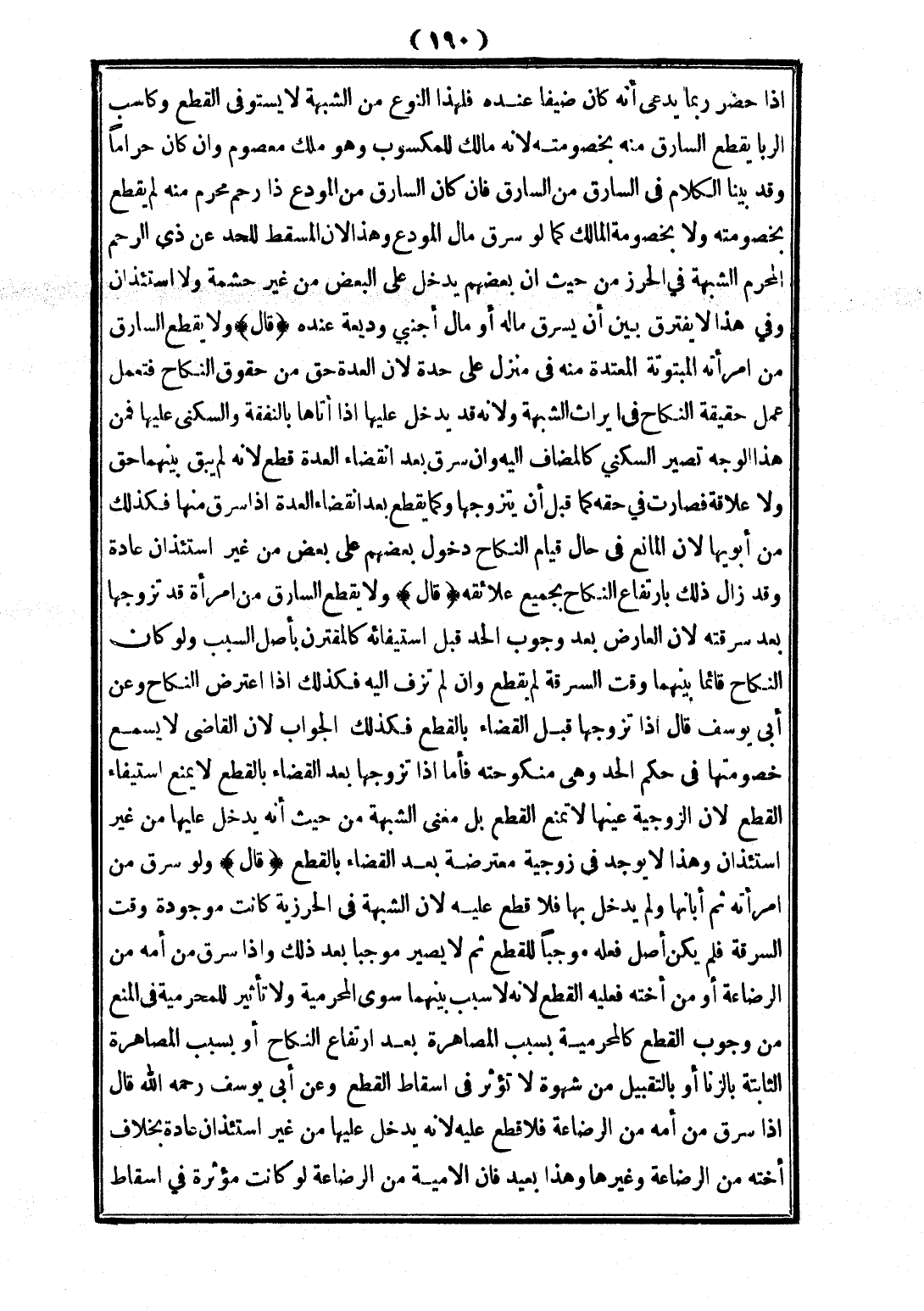 إذَا حَضَرَ رُبَّمَا يَدَّعِي أَنَّهُ كَانَ ضَيْفًا عِنْدَهُ، فَلِهَذَا النَّوْعِ مِنْ الشُّبْهَةِ لَا يُسْتَوْفَى الْقَطْعُ وَكَاسِبُ الرِّبَا يُقْطَعُ السَّارِقُ مِنْهُ بِخُصُومَتِهِ؛ لِأَنَّهُ مَالِكٌ لِلْمَكْسُوبِ، وَهُوَ مِلْكٌ مَعْصُومٌ، وَإِنْ كَانَ حَرَامًا، وَقَدْ بَيَّنَّا الْكَلَامَ فِي السَّارِقِ مِنْ السَّارِقِ