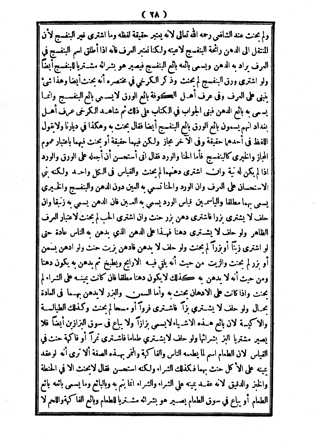 وَلَوْ حَلَفَ لَا يَشْتَرِي دُهْنًا فَهَذَا عَلَى الدُّهْنِ الَّذِي يَدَّهِنُ بِهِ النَّاسُ عَادَةً حَتَّى لَوْ اشْتَرَى زَيْتًا أَوْ بِزْرًا لَمْ يَحْنَثْ