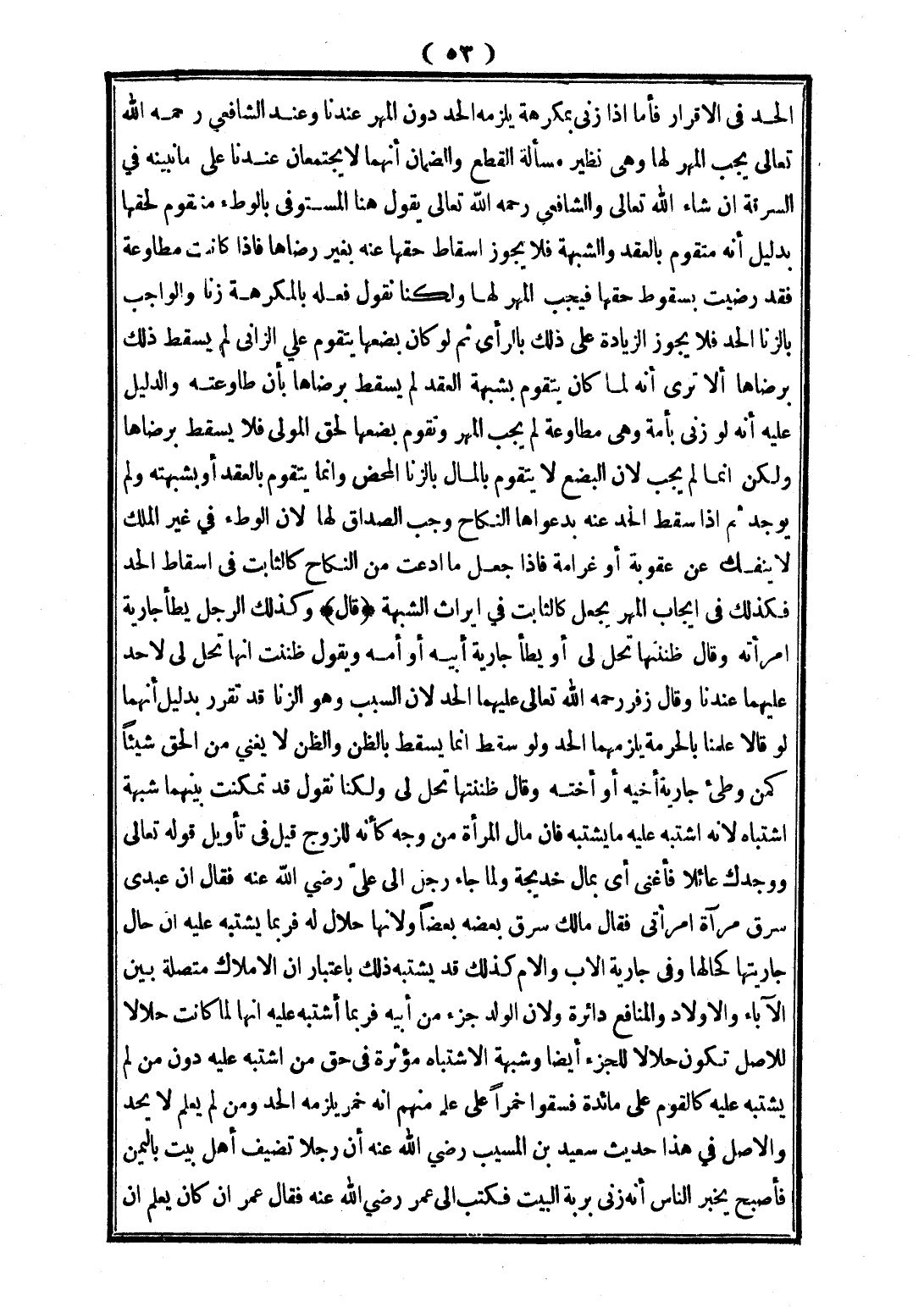 كَذَلِكَ قَدْ يُشْتَبَهُ ذَلِكَ بِاعْتِبَارِ أَنَّ الْأَمْلَاكَ مُتَّصِلَةٌ بَيْنَ الْآبَاءِ وَالْأَوْلَادِ، وَالْمَنَافِعُ دَائِرَةٌ وَلِأَنَّ الْوَلَدَ جُزْءٌ مِنْ أَبِيهِ فَرُبَّمَا اشْتَبَهَ عَلَيْهِ أَنَّهَا لَمَّا كَانَتْ حَلَالًا لِلْأَصْلِ تَكُونُ حَلَالًا لِلْجُزْءِ أَيْضًا وَشُبْهَةُ الِاشْتِبَاهِ مُؤَثِّرَةٌ فِي حَقِّ مَنْ اشْتَبَهَ عَلَيْهِ دُونَ مَنْ لَمْ يَشْتَبِهْ عَلَيْهِ كَالْقَوْمِ عَلَى مَائِدَةٍ فَسُقُوا خَمْرًا عَلَى عِلْمٍ مِنْهُمْ أَنَّهُ خَمْرٌ يَلْزَمُهُ الْحَدُّ وَمَنْ لَمْ يَعْلَمْ لَا يُحَدُّ وَالْأَصْلُ فِي حَدِيثِ سَعِيدِ بْنِ الْمُسَيِّبِ - رَضِيَ اللَّهُ عَنْهُ - أَنَّ رَجُلًا تَضَيَّفَ أَهْلَ بَيْتٍ بِالْيَمَنِ فَأَصْبَحَ يُخْبِرُ النَّاسَ أَنَّهُ زَنَى بِرَبَّةِ الْبَيْتِ فَكَتَبَ إلَى عُمَرَ - رَضِيَ اللَّهُ عَنْهُ - فَقَالَ عُمَرُ إنْ كَانَ يَعْلَمُ أَنَّ