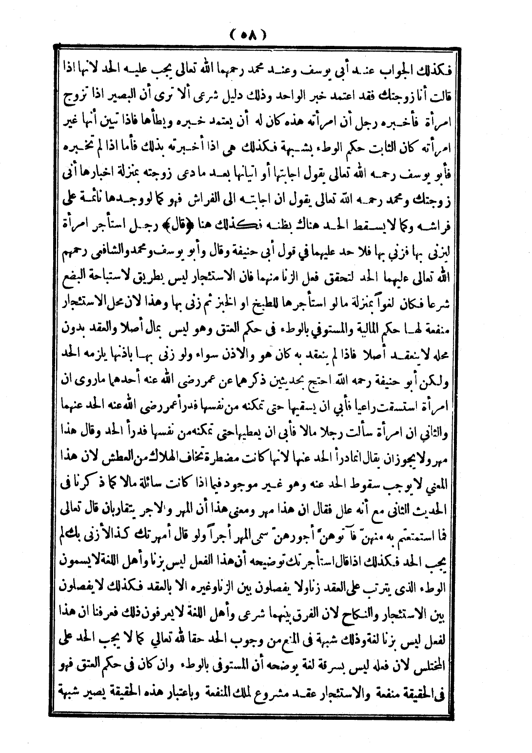 وَلَوْ قَالَ: أَمْهَرْتُك كَذَا لِأَزْنِيَ بِك لَمْ يَجِبْ الْحَدُّ، فَكَذَلِكَ إذَا قَالَ: اسْتَأْجَرْتُك تَوْضِيحُهُ أَنَّ هَذَا الْفِعْلَ لَيْسَ بِزِنًا، وَأَهْلُ اللُّغَةِ لَا يُسَمُّونَ الْوَطْءَ الَّذِي يَتَرَتَّبُ عَلَى الْعَقْدِ زِنًى وَلَا يَفْصِلُونَ بَيْنَ الزِّنَا وَغَيْرِهِ إلَّا بِالْعَقْدِ فَكَذَلِكَ لَا يَفْصِلُونَ بَيْنَ الِاسْتِئْجَارِ وَالنِّكَاحِ؛ لِأَنَّ الْفَرْقَ بَيْنَهُمَا شَرْعِيٌّ، وَأَهْلُ اللُّغَةِ لَا يَعْرِفُونَ ذَلِكَ فَعَرَفْنَا أَنَّ هَذَا الْفِعْلَ لَيْسَ بِزِنًا لُغَةً وَذَلِكَ شُبْهَةٌ فِي الْمَنْعِ مِنْ وُجُوبِ الْحَدِّ حَقًّا لِلَّهِ تَعَالَى كَمَا لَا يَجِبُ الْحَدُّ عَلَى الْمُخْتَلِسِ؛ لِأَنَّ فِعْلَهُ لَيْسَ بِسَرِقَةٍ لُغَةً، يُوَضِّحُهُ أَنَّ الْمُسْتَوْفَى بِالْوَطْءِ وَإِنْ كَانَ فِي حُكْمِ الْعِتْقِ فَهُوَ فِي الْحَقِيقَةِ مَنْفَعَةٌ، وَالِاسْتِئْجَارُ عَقْدٌ مَشْرُوعٌ لِمِلْكِ الْمَنْفَعَةِ وَبِاعْتِبَارِ هَذِهِ الْحَقِيقَةِ يَصِيرُ شُبْهَةً