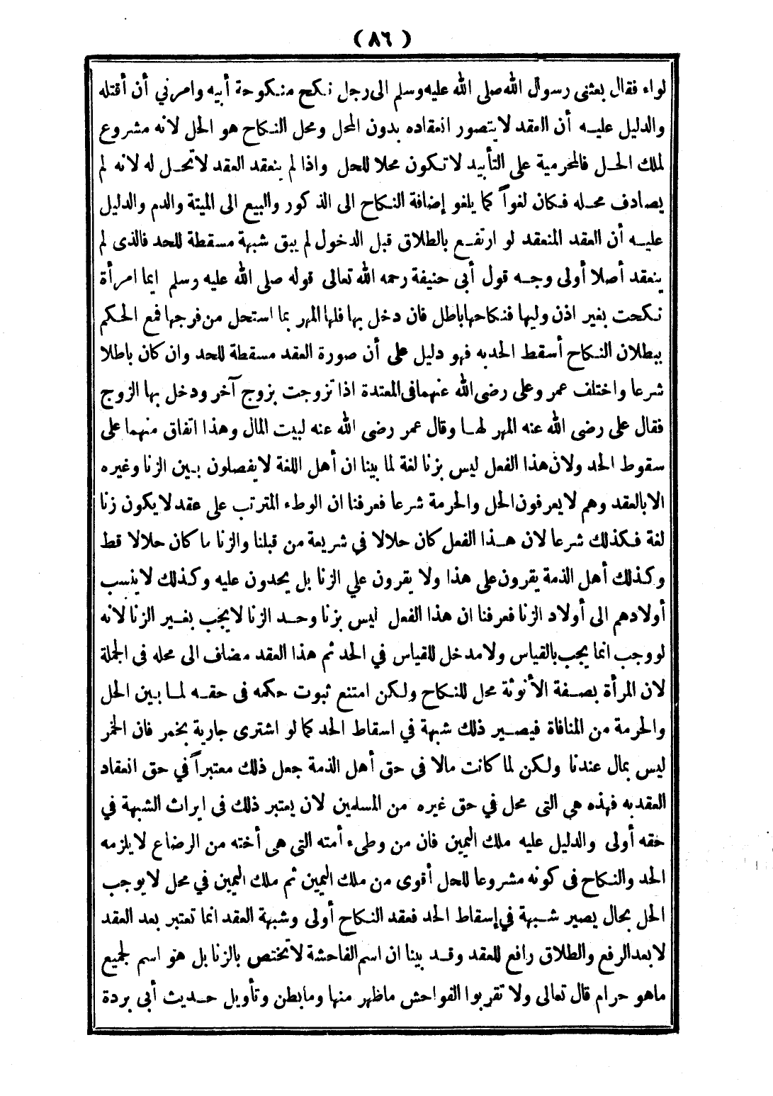 وَالنِّكَاحُ فِي كَوْنِهِ مَشْرُوعًا لِلْحِلِّ أَقْوَى مِنْ مِلْكِ الْيَمِينِ، ثُمَّ مِلْكُ الْيَمِينِ فِي مَحَلٍّ لَا يُوجِبُ الْحِلَّ بِحَالٍ يَصِيرُ شُبْهَةً فِي إسْقَاطِ الْحَدِّ فَعَقْدُ النِّكَاحِ أَوْلَى وَشُبْهَةُ الْعَقْدِ إنَّمَا تُعْتَبَرُ بَعْدَ الْعَقْدِ لَا بَعْدَ الرَّفْعِ وَالطَّلَاقُ رَافِعٌ لِلْعَقْدِ، وَقَدْ بَيَّنَّا أَنَّ اسْمَ الْفَاحِشَةِ لَا تَخْتَصُّ بِالزِّنَا بَلْ هُوَ اسْمٌ لِجَمِيعِ مَا هُوَ حَرَامٌ قَالَ تَعَالَى {وَلَا تَقْرَبُوا الْفَوَاحِشَ مَا ظَهَرَ مِنْهَا وَمَا بَطَنَ} [الأنعام: 151] وَتَأْوِيلُ حَدِيثِ أَبِي بُرْدَةَ بْنِ نِيَارٍ