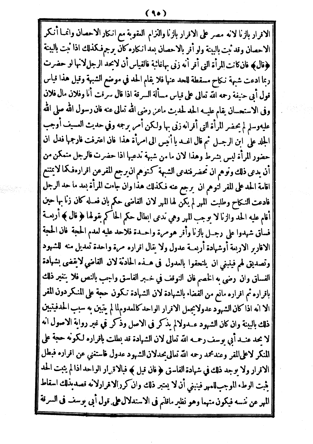 (قَالَ) أَرْبَعَةٌ فُسَّاقٌ شَهِدُوا عَلَى رَجُلٍ بِالزِّنَا وَأَقَرَّ هُوَ مَرَّةً وَاحِدَةً فَلَا حَدَّ عَلَيْهِ لِعَدَمِ الْحُجَّةِ، فَإِنَّ الْحُجَّةَ الْأَقَارِيرُ الْأَرْبَعَةُ أَوْ شَهَادَةُ أَرْبَعَةٍ عُدُولٍ، وَلَا يُقَالُ: إقْرَارُهُ مَرَّةً وَاحِدَةً تَعْدِيلٌ مِنْهُ لِلشُّهُودِ وَتَصْدِيقٌ لَهُمْ فَيَنْبَغِي أَنْ يَلْتَحِقُوا بِالْعُدُولِ فِي هَذِهِ الْحَادِثَةِ؛ لِأَنَّ الْقَاضِيَ لَا يَقْضِي بِشَهَادَةِ الْفُسَّاقِ، وَإِنْ رَضِيَ بِهِ الْخَصْمُ، فَإِنَّ التَّوَقُّفَ فِي خَبَرِ الْفَاسِقِ وَاجِبٌ بِالنَّصِّ فَلَا يَتَغَيَّرُ ذَلِكَ بِإِقْرَارِهِ ثُمَّ إقْرَارُهُ مَانِعٌ مِنْ الْقَضَاءِ بِالشَّهَادَةِ؛ لِأَنَّ الشَّهَادَةَ تَكُونُ حُجَّةً عَلَى الْمُنْكِرِ دُونَ الْمُقِرِّ إلَّا إنَّهُ إذَا كَانَ الشُّهُودُ عُدُولًا يُجْعَلُ الْإِقْرَارُ الْوَاحِدُ كَالْمَعْدُومِ لَمَّا لَمْ يَتَبَيَّنْ بِهِ سَبَبُ حَدٍّ فَيَتَبَيَّنُ ذَلِكَ بِالْبَيِّنَةِ، وَإِنْ كَانَ الشُّهُودُ عُدُولًا لَمْ يَذْكُرْ فِي الْأَصْلِ وَذَكَرَ فِي غَيْرِ رِوَايَةِ الْأُصُولِ أَنَّهُ لَا يُحَدُّ عِنْدَ أَبِي يُوسُفَ - رَحِمَهُ اللَّهُ تَعَالَى -؛ لِأَنَّ الشَّهَادَةَ قَدْ بَطَلَتْ بِإِقْرَارِهِ لِكَوْنِهِ حُجَّةً عَلَى الْمُنْكِرِ لَا عَلَى الْمُقِرِّ، وَعِنْدَ مُحَمَّدٍ - رَحِمَهُ اللَّهُ تَعَالَى - يُحَدُّ؛ لِأَنَّ الشُّهُودَ عُدُولٌ فَاسْتَغْنَى عَنْ إقْرَارِهِ فَبَطَلَ الْإِقْرَارُ، وَلَا يُوجَدُ ذَلِكَ فِي شَهَادَةِ الْفَاسِقِ.