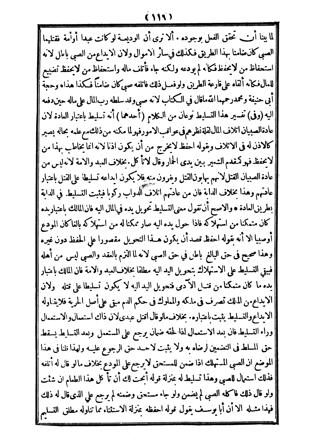 (وَفِي) تَفْسِيرِ هَذَا التَّسْلِيطِ نَوْعَانِ مِنْ الْكَلَامِ (أَحَدُهُمَا): أَنَّهُ تَسْلِيطٌ بِاعْتِبَارِ الْعَادَةِ؛ لِأَنَّ عَادَةَ الصِّبْيَانِ إتْلَافُ الْمَالِ؛ لِقِلَّةِ نَظَرِهِمْ فِي عَوَاقِبِ الْأُمُورِ، فَهُوَ لَمَّا مَكَّنَهُ مِنْ ذَلِكَ - مَعَ عِلْمِهِ بِحَالِهِ - يَصِيرُ كَالْإِذْنِ لَهُ فِي الْإِتْلَافِ. وَبِقَوْلِهِ: احْفَظْ، لَا يُخْرِجُ مِنْ أَنْ يَكُونَ إذْنًا؛ لِأَنَّهُ إنَّمَا يُخَاطِبُ بِهَذَا مَنْ لَا يَحْفَظُ، فَهُوَ كَمُقَدِّمِ الشَّعِيرِ بَيْنَ يَدَيْ الْحِمَارِ، وَقَالَ: لَا تَأْكُلْ، بِخِلَافِ الْعَبْدِ وَالْأَمَةِ؛ لِأَنَّهُ لَيْسَ مِنْ عَادَةِ الصَّبِيَّانِ الْقَتْلُ؛ لِأَنَّهُمْ يَهَابُونَ الْقَتْلَ، وَيَفِرُّونَ مِنْهُ، فَلَا يَكُونُ إيدَاعُهُ تَسَلُّطًا عَلَى الْقَتْلِ - بِاعْتِبَارِ عَادَتِهِمْ -. وَهَذَا بِخِلَافِ الدَّابَّةِ، فَإِنَّ مِنْ عَادَتِهِمْ إتْلَافَ الدَّوَابِّ، رُكُوبًا، فَيَثْبُتُ التَّسْلِيطُ فِي الدَّابَّةِ بِطَرِيقِ الْعَادَةِ، وَإِلَّا صَحَّ أَنْ تَقُولَ: مَعْنَى التَّسْلِيطِ: تَحْوِيلُ يَدِهِ فِي الْمَالِ إلَيْهِ؛ فَإِنَّ الْمَالِكَ - بِاعْتِبَارِ يَدِهِ - كَانَ مُتَمَكِّنًا مِنْ اسْتِهْلَاكِهِ، فَإِذَا حَوَّلَ يَدَهُ إلَيْهِ، صَارَ مُمَكَّنًا لَهُ مِنْ اسْتِهْلَاكِهِ - بَالِغًا كَانَ الْمُودَعُ، أَوْ صَبِيًّا - إلَّا أَنَّهُ بِقَوْلِهِ: احْفَظْ، قَصَدَ أَنْ يَكُونَ هَذَا التَّحْوِيلُ مَقْصُورًا عَلَى الْحِفْظِ - دُونَ غَيْرِهِ - وَهَذَا صَحِيحٌ فِي حَقِّ الْبَالِغِ، بَاطِلٌ فِي حَقِّ الصَّبِيِّ؛ لِأَنَّهُ لَمَّا الْتَزَمَ بِالْعَقْدِ، وَالصَّبِيُّ لَيْسَ مِنْ أَهْلِهِ، فَيَبْقَى التَّسْلِيطُ عَلَى الِاسْتِهْلَاكِ بِتَحْوِيلِ الْيَدِ إلَيْهِ مُطْلَقًا، بِخِلَافِ الْعَبْدِ وَالْأَمَةِ، فَإِنَّ الْمَالِكَ - بِاعْتِبَارِ يَدِهِ - مَا كَانَ مُتَمَكِّنًا مِنْ قَتْلِ الْآدَمِيِّ، فَتَحْوِيلُ الْيَدِ إلَيْهِ لَا يَكُونُ تَسْلِيطًا عَلَى قَتْلِهِ؛ لِأَنَّ الْإِيدَاعَ مِنْ الْمَالِكِ تَصَرُّفٌ فِي مِلْكِهِ، وَالْمَمْلُوكُ فِي حُكْمِ الدَّمِ مُبْقًى عَلَى أَصْلِ الْحُرِّيَّةِ؛ فَلَا يَتَنَاوَلُهُ الْإِيدَاعُ. وَالتَّسْلِيطُ يَثْبُتُ بِاعْتِبَارِهِ، بِخِلَافِ مَا لَوْ قَالَ: اُقْتُلْ عَبْدِي؛ لِأَنَّ ذَاكَ اسْتِعْمَالٌ، وَالِاسْتِعْمَالُ وَرَاءَ التَّسْلِيطِ، فَإِنَّ بَعْدَ الِاسْتِعْمَالِ إذَا لَحِقَهُ ضَمَانٌ، يَرْجِعُ عَلَى الْمُسْتَعْمَلِ، وَبَعْدَ التَّسْلِيطِ يَسْقُطُ حَقُّ الْمُسَلَّطِ فِي التَّضْمِينِ - لِرِضَاهُ بِهِ - وَلَا يَثْبُتُ لِأَحَدٍ حَقُّ الرُّجُوعِ عَلَيْهِ. وَلِهَذَا قُلْنَا فِي هَذَا الْمَوْضِعِ: إنَّ الصَّبِيَّ الْمُسْتَهْلِكَ، إذَا ضُمِنَ لِلْمُسْتَحَقِّ، لَا يُرْجَعُ عَلَى الْمُودَعِ، بِخِلَافِ مَا لَوْ قَالَ لَهُ: أَتْلِفْهُ، فَذَلِكَ اسْتِعْمَالٌ لِلصَّبِيِّ، وَهَذَا تَسْلِيطٌ لَهُ بِمَنْزِلَةِ قَوْلِهِ: أَبَحْتُ لَك أَنْ تَأْكُلَ هَذَا الطَّعَامَ، إنْ شِئْت، وَلَوْ قَالَ ذَلِكَ، فَأَكَلَهُ الصَّبِيُّ، لَمْ يَضْمَنْ. وَلَوْ جَاءَ مُسْتَحَقٌّ وَضَمِنَهُ، لَمْ يَرْجِعْ عَلَى الَّذِي قَالَ لَهُ ذَلِكَ؛ فَهَذَا مِثْلُهُ، إلَّا أَنَّ أَبَا يُوسُفَ يَقُولُ: قَوْلُهُ: احْفَظْهُ، بِمَنْزِلَةِ الِاسْتِثْنَاءِ مِمَّا تَنَاوَلَهُ مُطْلَقُ التَّسْلِيمِ.