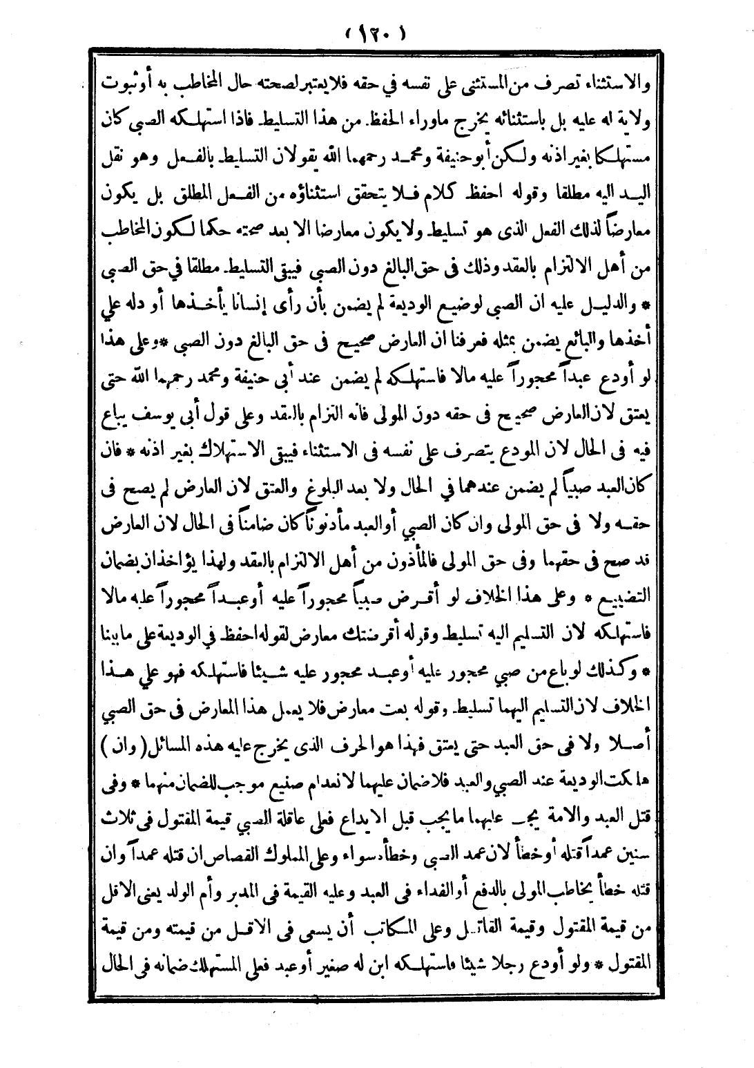 فَإِذَا اسْتَهْلَكَهُ الصَّبِيُّ كَانَ مُسْتَهْلِكًا بِغَيْرِ إذْنِهِ. وَلَكِنْ أَبُو حَنِيفَةَ وَمُحَمَّدٌ رَحِمَهُمَا اللَّهُ يَقُولَانِ: التَّسْلِيطُ: بِالْفِعْلِ، وَهُوَ نَقْلُ الْيَدِ إلَيْهِ مُطْلَقًا. وَقَوْلُهُ: احْفَظْ، كَلَامٌ، فَلَا يَتَحَقَّقُ اسْتِثْنَاؤُهُ مِنْ الْفِعْلِ الْمُطْلَقِ، بَلْ يَكُونُ مُعَارِضًا لِذَلِكَ الْفِعْلِ الَّذِي هُوَ تَسْلِيطٌ، وَلَا يَكُونُ مُعَارِضًا إلَّا بَعْدَ صِحَّتِهِ حُكْمًا؛ لِكَوْنِ الْمُخَاطَبِ مِنْ أَهْلِ الِالْتِزَامِ بِالْعَقْدِ، وَذَلِكَ فِي حَقِّ الْبَالِغِ دُونَ الصَّبِيِّ، فَيَبْقَى التَّسَلُّطُ فِي حَقِّ الصَّبِيِّ. وَالدَّلِيلُ عَلَيْهِ: أَنَّ الصَّبِيَّ لَوْ ضَيَّعَ الْوَدِيعَةَ، لَمْ يَضْمَنْ؛ بِأَنْ رَأَى إنْسَانًا يَأْخُذُهَا، أَوْ دَلَّهُ عَلَى أَخْذِهَا، وَالْبَائِع يَضْمَنُ - بِمِثْلِهِ -. فَعَرَفْنَا أَنَّ الْعَارِضَ صَحِيحٌ فِي حَقِّ الْبَالِغِ - دُونِ الصَّبِيِّ -. وَعَلَى هَذَا: لَوْ أَوْدَعَ عَبْدًا، مَحْجُورًا عَلَيْهِ، مَالًا فَاسْتَهْلَكَهُ: لَمْ يَضْمَنْ، عِنْدَ أَبِي حَنِيفَةَ وَمُحَمَّدٍ رَحِمَهُمَا اللَّهُ حَتَّى يُعْتَقَ؛ لِأَنَّ الْعَارِضَ صَحِيحٌ فِي حَقِّهِ دُونَ الْمَوْلَى فَإِنَّهُ الْتِزَامٌ بِالْعَقْدِ. وَعَلَى قَوْلِ أَبِي يُوسُفَ: يُبَاعُ فِيهِ فِي الْحَالِ؛ لِأَنَّ الْمُودَعَ يَتَصَرَّفُ عَلَى نَفْسِهِ فِي الِاسْتِثْنَاءِ؛ فَيَبْقَى الِاسْتِهْلَاكُ بِغَيْرِ إذْنِهِ.
