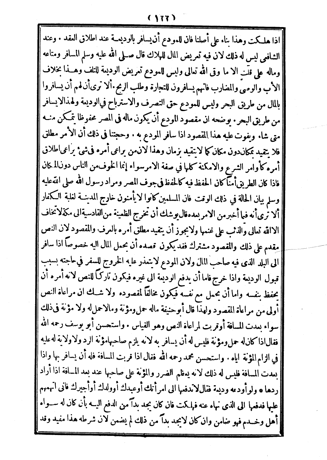 أَلَا تَرَى أَنَّ لَهُمْ أَنْ يُسَافِرُوا بِالْمَالِ مِنْ طَرِيقِ الْبَحْرِ. وَلَيْسَ لِلْمُودَعِ حَقُّ التَّصَرُّفِ وَالِاسْتِرْبَاحِ فِي الْوَدِيعَةِ؛ وَلِهَذَا: لَا يُسَافِرُ مِنْ طَرِيقِ الْبَحْرِ، يُوَضِّحُهُ: أَنَّ مَقْصُودَ الْمُودِعِ أَنْ يَكُونَ مَالُهُ فِي الْمِصْرِ مَحْفُوظًا، يَتَمَكَّنُ مِنْهُ مَتَى شَاءَ، وَيَفُوتُ عَلَيْهِ هَذَا الْمَقْصُودُ إذَا سَافَرَ الْمُودَعُ بِهِ. وَحُجَّتُنَا فِي ذَلِكَ: أَنَّ الْأَمْرَ مُطْلَقٌ، فَلَا يَتَقَيَّدُ بِمَكَانٍ دُونَ مَكَان، كَمَا لَا يَتَقَيَّدُ بِزَمَانٍ؛ وَهَذَا لِأَنَّ مَنْ يُرَاعَى أَمْرُهُ فِي شَيْءٍ يُرَاعَى إطْلَاقُ أَمْرِهِ، كَأَوَامِرِ الشَّرْعِ، وَالْأَمْكِنَةُ كُلُّهَا فِي صِفَةِ الْأَمْرِ سَوَاءٌ، إنَّمَا الْخَوْفُ مِنْ النَّاسِ - دُونَ الْمَكَانِ - فَإِذَا كَانَ الطَّرِيقُ أَمْنًا، كَانَ الْحِفْظُ فِيهِ كَالْحِفْظِ فِي جَوْفِ الْمِصْرِ. وَمُرَادُ رَسُولِ اللَّهِ - صَلَّى اللَّهُ عَلَيْهِ وَسَلَّمَ -: بَيَانُ الْحَالَةِ فِي ذَلِكَ الْوَقْتِ. فَإِنَّ الْمُسْلِمِينَ كَانُوا لَا يَأْمَنُونَ خَارِجَ الْمَدِينَةِ؛ لِغَلَبَةِ الْكُفَّارِ.
