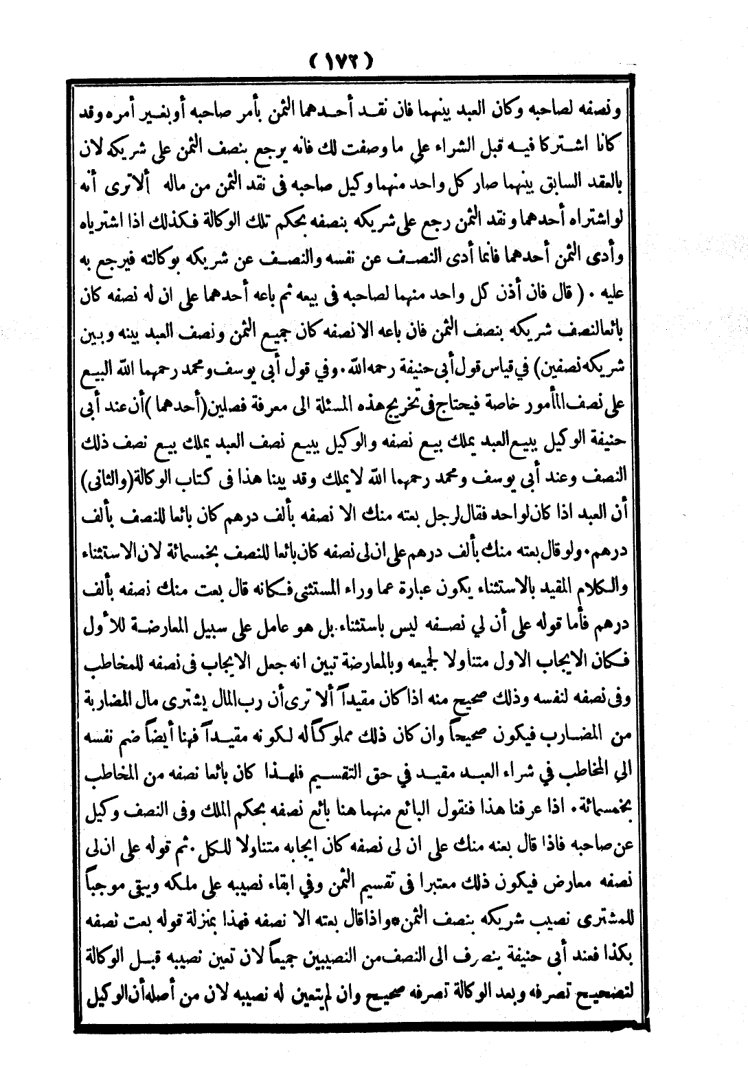 وَنِصْفَهُ لِصَاحِبِهِ، وَكَانَ الْعَبْدُ بَيْنَهُمَا؛ فَإِنْ نَقَدَ أَحَدُهُمَا الثَّمَنَ بِأَمْرِ صَاحِبِهِ أَوْ بِغَيْرِ أَمْرِهِ، وَقَدْ كَانَا اشْتَرِكَا فِيهِ قَبْلَ الشِّرَاءِ - عَلَى مَا وَصَفْت لَك - فَإِنَّهُ يَرْجِعُ بِنِصْفِ الثَّمَنِ عَلَى شَرِيكِهِ؛ لِأَنَّ بِالْعَقْدِ السَّابِقِ بَيْنَهُمَا صَارَ كُلُّ وَاحِدٍ مِنْهُمَا وَكِيلَ صَاحِبِهِ فِي نَقْدِ الثَّمَنِ مِنْ مَالِهِ. أَلَا تَرَى أَنَّهُ لَوْ اشْتَرَاهُ أَحَدُهُمَا، وَنَقَدَ الثَّمَنَ رَجَعَ عَلَى شَرِيكِهِ بِنِصْفِهِ، بِحُكْمِ تِلْكَ الْوَكَالَةِ،. فَكَذَلِكَ إذَا اشْتَرَيَاهُ وَأَدَّى الثَّمَنَ أَحَدُهُمَا فَإِنَّمَا أَدَّى النِّصْفَ عَنْ نَفْسِهِ، وَالنِّصْفَ عَنْ شَرِيكِهِ بِوَكَالَتِهِ، فَيَرْجِعُ بِهِ عَلَيْهِ. قَالَ: (فَإِنْ أَذِنَ كُلُّ وَاحِدٍ مِنْهُمَا لِصَاحِبِهِ فِي بَيْعِهِ، ثُمَّ بَاعَهُ أَحَدُهُمَا عَلَى أَنَّ لَهُ نِصْفَهُ: كَانَ بَائِعًا لِنِصْفِ شَرِيكِهِ بِنِصْفِ الثَّمَنِ؛ فَإِنْ بَاعَهُ إلَّا نِصْفَهُ، كَانَ جَمِيعُ الثَّمَنِ وَنِصْفُ الْعَبْدِ بَيْنَهُ وَبَيْنَ شَرِيكِهِ نِصْفَيْنِ) فِي قِيَاسِ قَوْلِ أَبِي حَنِيفَةَ - رَحِمَهُ اللَّهُ -، وَفِي قَوْلِ أَبِي يُوسُفَ وَمُحَمَّدٍ رَحِمَهُمَا اللَّهُ: الْبَيْعُ عَلَى نِصْفِ الْمَأْمُورِ خَاصَّةً. فَيَحْتَاجُ فِي تَخْرِيجِ هَذِهِ الْمَسْأَلَةِ إلَى مَعْرِفَةِ فَصْلَيْنِ (أَحَدُهُمَا): أَنَّ " عِنْدَ أَبِي حَنِيفَةَ " الْوَكِيلُ بِبَيْعِ الْعَبْدِ يَمْلِكُ بَيْعَ نِصْفِهِ، وَالْوَكِيلُ بِبَيْعِ نِصْفِ الْعَبْدِ يَمْلِكُ بَيْعَ نِصْفِ ذَلِكَ النِّصْفِ. " وَعِنْدَ أَبِي يُوسُفَ وَمُحَمَّدٍ رَحِمَهُمَا اللَّهُ " لَا يَمْلِكُ، وَقَدْ بَيَّنَّا هَذَا فِي كِتَابِ الْوَكَالَةِ.