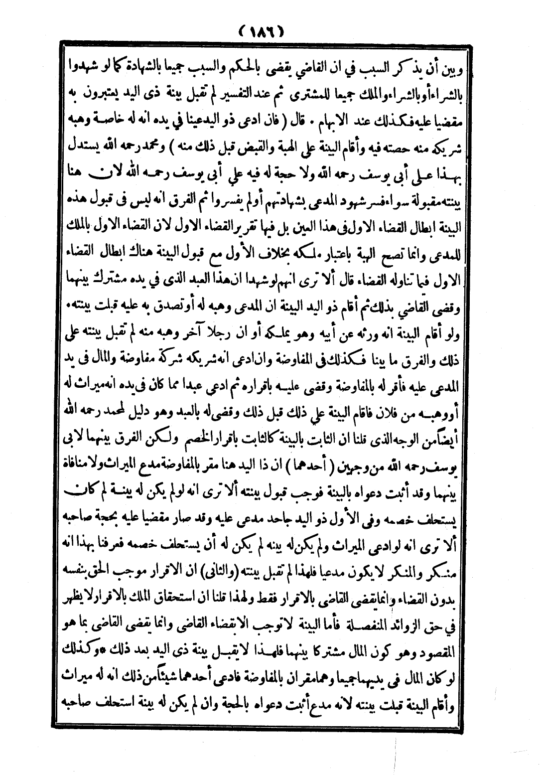 وَبَيْنَ أَنْ يَذْكُرَ السَّبَبَ فِي أَنَّ الْقَاضِيَ يَقْضِي بِالْحُكْمِ وَالسَّبَبِ جَمِيعًا بِالشَّهَادَةِ، كَمَا لَوْ شَهِدُوا بِالشِّرَاءِ، أَوْ بِالشِّرَاءِ وَالْمِلْكِ جَمِيعًا لِلْمُشْتَرِي، ثُمَّ عِنْدَ التَّفْسِيرِ لَمْ تُقْبَلْ بَيِّنَةُ ذِي الْيَدِ يَعْتَبِرُونَ بِهِ مَقْضِيًّا عَلَيْهِ، فَكَذَلِكَ عِنْدَ الْإِبْهَامِ.