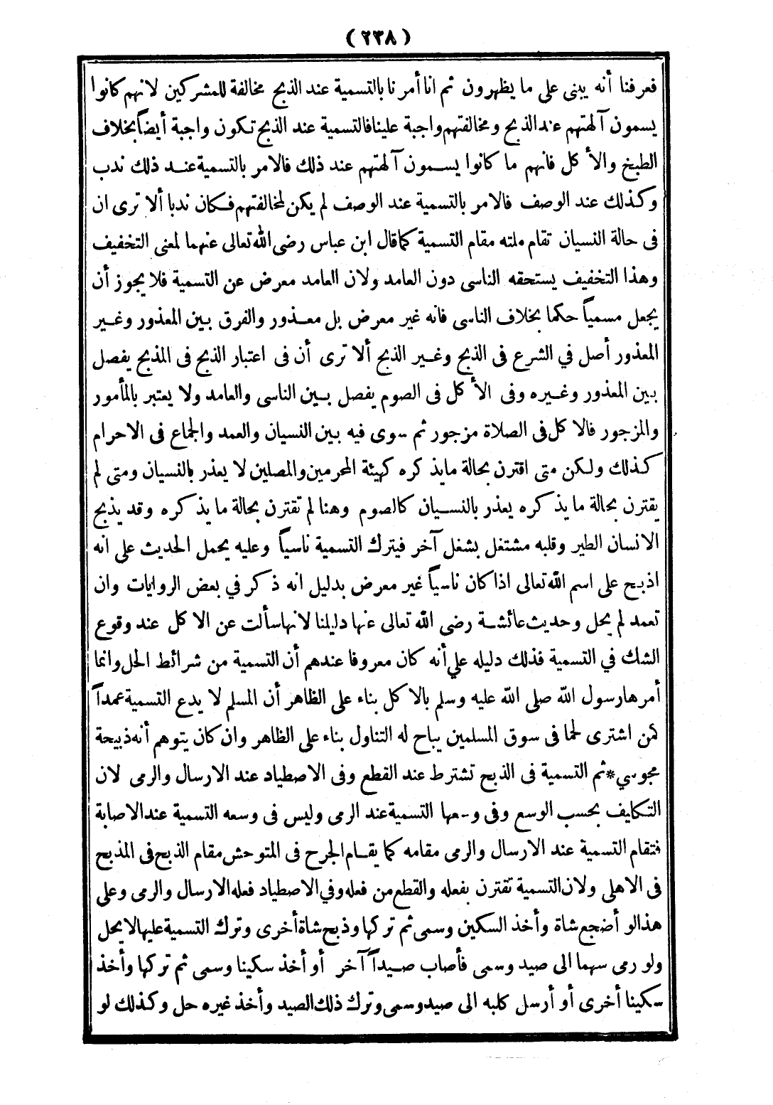 وَكَذَلِكَ عِنْدَ الْوَصْفِ فَالْأَمْرُ بِالتَّسْمِيَةِ عِنْدَ الْوَصْفِ لَمْ يَكُنْ لِمُخَالَفَتِهِمْ فَكَانَ نَدْبًا، أَلَا تَرَى أَنَّ فِي حَالَةِ النِّسْيَانِ تُقَامُ مِلَّتُهُ مُقَامَ التَّسْمِيَةِ، كَمَا قَالَ ابْنُ عَبَّاسٍ - رَضِيَ اللَّهُ تَعَالَى عَنْهُمَا - لِمَعْنَى التَّخْفِيفِ، وَهَذَا التَّخْفِيفُ يَسْتَحِقُّهُ النَّاسِي دُونَ الْعَامِدِ، وَلِأَنَّ الْعَامِدَ مُعْرِضٌ عَنْ التَّسْمِيَةِ، فَلَا يَجُوزُ أَنْ يُجْعَلَ مُسَمِّيًا حُكْمًا بِخِلَافِ النَّاسِي، فَإِنَّهُ غَيْرُ مُعْرِضٍ بَلْ مَعْذُورٌ، وَالْفَرْقُ بَيْنَ الْمَعْذُورِ وَغَيْرِ الْمَعْذُورِ أَصْلٌ فِي الشَّرْعِ فِي الذَّبْحِ وَغَيْرِ الذَّبْحِ أَلَا تَرَى أَنَّ فِي اعْتِبَارِ الذَّبْحِ فِي الْمَذْبَحِ يُفْصَلُ بَيْنَ الْمَعْذُورِ وَغَيْرِهِ، وَفِي الْأَكْلِ فِي الصَّوْمِ يُفْصَلُ بَيْنَ النَّاسِي وَالْعَامِدِ، وَلَا يُعْتَبَرُ بِالْمَأْمُورِ وَالْمَزْجُورِ فَالْأَكْلُ فِي الصَّلَاةِ مَزْجُورٌ، ثُمَّ سَوَّى فِيهِ بَيْنَ النِّسْيَانِ وَالْعَمْدِ، وَالْجِمَاعُ فِي الْإِحْرَامِ كَذَلِكَ، وَلَكِنْ مَتَى اقْتَرَنَ بِحَالَةِ مَا يَذْكُرُهُ كَهَيْئَةِ الْمُحْرِمِينَ وَالْمُصَلِّينَ لَا يُعْذَرُ بِالنِّسْيَانِ، وَمَتَى لَمْ يَقْتَرِنْ بِحَالَةِ مَا يَذْكُرُهُ يُعْذَرُ بِالنِّسْيَانِ كَالصَّوْمِ، وَهُنَا لَمْ تَقْتَرِنْ بِحَالَةِ مَا يَذْكُرُهُ، وَقَدْ يَذْبَحُ الْإِنْسَانُ الطَّيْرَ وَقَلْبُهُ مُشْتَغِلٌ بِشُغْلٍ آخَرَ فَيَتْرُكُ التَّسْمِيَةَ نَاسِيًا، وَعَلَيْهِ يُحْمَلُ الْحَدِيثُ عَلَى أَنَّهُ اذْبَحْ عَلَى اسْمِ اللَّهِ تَعَالَى إذَا كَانَ نَاسِيًا غَيْرَ مُعْرِضٍ، بِدَلِيلِ أَنَّهُ ذُكِرَ فِي بَعْضِ الرِّوَايَاتِ «وَإِنْ تَعَمَّدَ لَمْ يَحِلَّ» وَحَدِيثُ عَائِشَةَ - رَضِيَ اللَّهُ تَعَالَى عَنْهَا - دَلِيلُنَا؛ لِأَنَّهَا سَأَلَتْ عَنْ الْأَكْلِ عِنْدَ وُقُوعِ الشَّكِّ فِي التَّسْمِيَةِ، فَذَلِكَ دَلِيلُهُ عَلَى أَنَّهُ كَانَ مَعْرُوفًا عِنْدَهُمْ أَنَّ التَّسْمِيَةَ مِنْ شَرَائِطِ الْحِلِّ، وَإِنَّمَا أَمَرَهَا رَسُولُ اللَّهِ - صَلَّى اللَّهُ عَلَيْهِ وَسَلَّمَ - بِالْأَكْلِ بِنَاءً عَلَى الظَّاهِرِ أَنَّ الْمُسْلِمَ لَا يَدَعُ التَّسْمِيَةَ عَمْدًا كَمَنْ اشْتَرَى لَحْمًا فِي سُوقِ الْمُسْلِمِينَ يُبَاحُ لَهُ التَّنَاوُلُ بِنَاءً عَلَى الظَّاهِرِ، وَإِنْ كَانَ يَتَوَهَّمُ أَنَّهُ ذَبِيحَةُ مَجُوسِيٍّ.