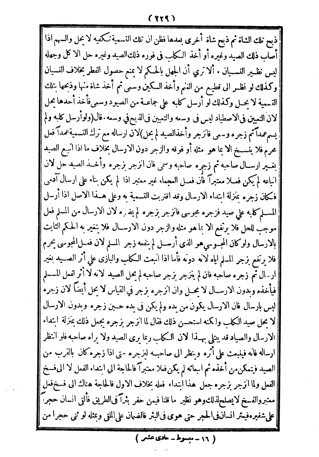 ذَبَحَ تِلْكَ الشَّاةَ ثُمَّ ذَبَحَ شَاةً أُخْرَى بَعْدَهَا فَظَنَّ أَنَّ تِلْكَ التَّسْمِيَةَ تَكْفِيهِ لَا يَحِلُّ، وَالسَّهْمُ إذَا أَصَابَ ذَلِكَ الصَّيْدَ وَغَيْرَهُ. أَوْ أَخَذَ الْكَلْبُ فِي فَوْرِهِ ذَلِكَ الصَّيْدَ وَغَيْرَهُ حَلَّ الْأَكْلُ، وَجَهْلُهُ لَيْسَ نَظِيرَ النِّسْيَانِ، أَلَا تَرَى أَنَّ الْجَهْلَ بِالْحُكْمِ لَا يَمْنَعُ حُصُولَ الْفِطْرِ بِخِلَافِ النِّسْيَانِ، وَكَذَلِكَ لَوْ نَظَرَ إلَى قَطِيعٍ مِنْ الْغَنَمِ وَأَخَذَ السِّكِّينَ وَسَمَّى ثُمَّ أَخَذَ شَاةً مِنْهَا وَذَبَحَهَا بِتِلْكَ التَّسْمِيَةِ لَا يَحِلُّ، وَكَذَلِكَ لَوْ أَرْسَلَ كَلْبَهُ عَلَى جَمَاعَةٍ مِنْ الصَّيُودِ وَسَمَّى فَأَخَذَ أَحَدُهَا يَحِلُّ؛ لِأَنَّ التَّعْيِينَ فِي الِاصْطِيَادِ لَيْسَ فِي وُسْعِهِ، وَالتَّعْيِينُ فِي الذَّبْحِ فِي وُسْعِهِ.