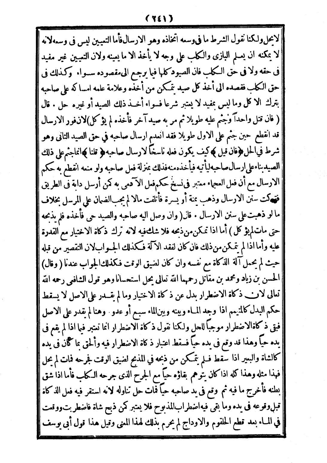 لَا يَحِلُّ، وَلَكِنَّا نَقُولُ: الشَّرْطُ مَا فِي وُسْعِهِ اتِّخَاذُهُ وَهُوَ الْإِرْسَالُ، فَأَمَّا التَّعْيِينُ لَيْسَ فِي وُسْعِهِ؛ لِأَنَّهُ لَا يُمْكِنُهُ أَنْ يَعْلَمَ الْبَازِي، وَالْكَلْبَ عَلَى وَجْهٍ لَا يَأْخُذُ إلَّا مَا يُعِينُهُ، وَلِأَنَّ التَّعْيِينَ غَيْرُ مُفِيدٍ فِي حَقِّهِ وَلَا فِي حَقِّ الْكَلْبِ، فَإِنَّ الصَّيُودَ كُلَّهَا فِيمَا يَرْجِعُ إلَى مَقْصُودِهِ سَوَاءٌ، وَكَذَلِكَ فِي حَقِّ الْكَلْبِ فَقَصْدُهُ إلَى أَخْذِ كُلِّ صَيْدٍ يَتَمَكَّنُ مِنْ أَخْذِهِ، وَعَلَامَةُ عِلْمِهِ إمْسَاكُهُ عَلَى صَاحِبِهِ بِتَرْكِ الْأَكْلِ، وَمَا لَيْسَ بِمُفِيدٍ لَا يُعْتَبَرُ شَرْعًا فَسَوَاءٌ أَخَذَ ذَلِكَ الصَّيْدُ أَوْ غَيْرُهُ حَلَّ. قَالَ: (فَإِنْ قَتَلَ وَاحِدًا وَجَثَمَ عَلَيْهِ طَوِيلًا ثُمَّ مَرَّ بِهِ صَيْدٌ آخَرُ فَأَخَذَهُ لَمْ يُؤْكَلْ)؛ لِأَنَّ فَوْرَ الْإِرْسَالِ قَدْ انْقَطَعَ حِينَ جَثَمَ عَلَى الْأَوَّلِ طَوِيلًا فَقَدْ انْعَدَمَ إرْسَالُ صَاحِبِهِ فِي حَقِّ الصَّيْدِ الثَّانِي، وَهُوَ شَرْطٌ فِي الْحِلِّ. (فَإِنْ قِيلَ:) كَيْفَ يَكُونُ فِعْلُهُ نَاسِخًا لِإِرْسَالِ صَاحِبِهِ.؟ (قُلْنَا:) إنَّمَا جَثَمَ عَلَى ذَلِكَ الصَّيْدِ بِنَاءً عَلَى إرْسَالِ صَاحِبِهِ لِيَأْتِيَهُ فَيَأْخُذَهُ مِنْهُ فَذَلِكَ بِمَنْزِلَةِ فِعْلِ صَاحِبِهِ، وَلَوْ مَنَعَهُ انْقَطَعَ بِهِ حُكْمُ الْإِرْسَالِ مَعَ أَنَّ فِعْلَ الْعَجْمَاءِ مُعْتَبَرٌ فِي نَسْخِ حُكْمِ فِعْلِ الْآدَمِيِّ بِهِ، كَمَنْ أَرْسَلَ دَابَّةً فِي الطَّرِيقِ فَتَرَكَتْ سُنَنَ الْإِرْسَالِ، وَذَهَبَ يَمْنَةً أَوْ يَسْرَةً فَأَتْلَفَتْ مَالًا لَمْ يَجِبْ الضَّمَانُ عَلَى الْمُرْسِلِ، بِخِلَافِ مَا لَوْ ذَهَبَتْ عَلَى سَنَنِ الْإِرْسَالِ.
