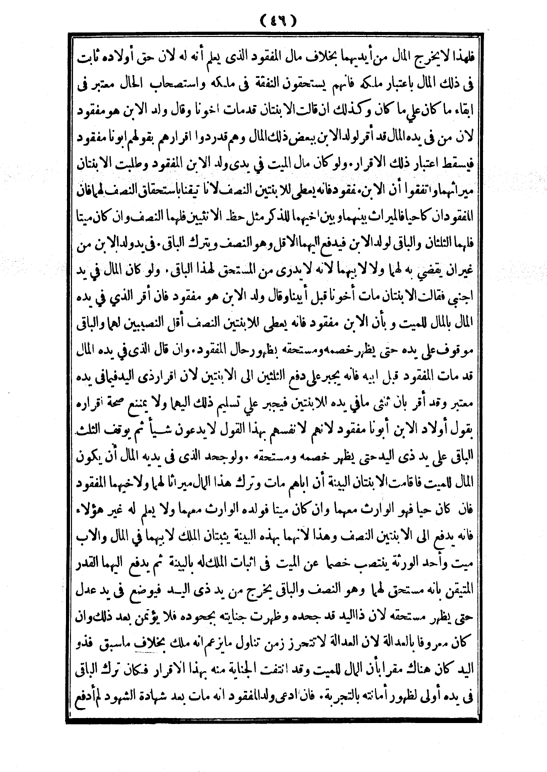 فَلِهَذَا لَا يَخْرُجُ الْمَالُ مِنْ أَيْدِيهِمَا بِخِلَافِ مَالِ الْمَفْقُودِ الَّذِي يَعْلَمُ أَنَّهُ لَهُ؛ لِأَنَّ حَقَّ أَوْلَادِهِ ثَابِتٌ فِي ذَلِكَ الْمَالِ بِاعْتِبَارِ مِلْكِهِ، فَإِنَّهُمْ يَسْتَحِقُّونَ النَّفَقَةَ فِي مِلْكِهِ، وَاسْتِصْحَابُ الْحَالِ مُعْتَبَرٌ فِي إبْقَاءِ مَا كَانَ عَلَى مَا كَانَ، وَكَذَلِكَ إنْ قَالَتْ الِابْنَتَانِ: قَدْ مَاتَ أَخُونَا، وَقَالَ وَلَدُ الِابْنِ: هُوَ مَفْقُودٌ؛ لِأَنَّ مَنْ فِي يَدِهِ الْمَالُ قَدْ أَقَرَّ لِوَلَدِ الِابْنِ بِبَعْضِ ذَلِكَ الْمَالِ، وَهُمْ قَدْ رَدُّوا إقْرَارَهُمْ بِقَوْلِهِمْ: أَبُونَا مَفْقُودٌ فَيَسْقُطُ اعْتِبَارُ ذَلِكَ الْإِقْرَارِ، وَلَوْ كَانَ مَالُ الْمَيِّتِ فِي يَدَيْ وَلَدِ الِابْنِ الْمَفْقُودِ، وَطَلَبَتْ الِابْنَتَانِ مِيرَاثَهُمَا، وَاتَّفَقُوا أَنَّ الِابْنَ مَفْقُودٌ، فَإِنَّهُ يُعْطَى لِلِابْنَتَيْنِ النِّصْفُ؛ لِأَنَّا تَيَقَّنَّا بِاسْتِحْقَاقِ النِّصْفِ لَهُمَا، فَإِنَّ الْمَفْقُودَ إنْ كَانَ حَيًّا فَالْمِيرَاثُ بَيْنَهُمَا وَبَيْنَ أَخِيهِمَا لِلذَّكَرِ مِثْلُ حَظِّ الْأُنْثَيَيْنِ فَلَهُمَا النِّصْفُ، وَإِنْ كَانَ مَيِّتًا فَلَهُمَا الثُّلُثَانِ وَالْبَاقِي لِوَلَدِ الِابْنِ فَيَدْفَعُ إلَيْهِمَا الْأَقَلَّ وَهُوَ النِّصْفُ، وَيَتْرُكُ الْبَاقِي فِي يَدِ وَلَدِ الِابْنِ مِنْ غَيْرِ أَنْ يَقْضِيَ بِهِ لَهُمَا، وَلَا لِأَبِيهِمَا؛ لِأَنَّهُ لَا يَدْرِي مَنْ الْمُسْتَحِقُّ لِهَذَا الْبَاقِي، وَلَوْ كَانَ الْمَالُ فِي يَدِ أَجْنَبِيٍّ فَقَالَتْ الِابْنَتَانِ: مَاتَ أَخُونَا قَبْلَ أَبِينَا، وَقَالَ وَلَدُ الِابْنِ: هُوَ مَفْقُودٌ فَإِنْ أَقَرَّ الَّذِي فِي - يَدِهِ الْمَالُ بِالْمَالِ لِلْمَيِّتِ، وَبِأَنَّ الِابْنَ مَفْقُودٌ فَإِنَّهُ يُعْطَى لِلِابْنَتَيْنِ النِّصْفُ أَقَلُّ النَّصِيبَيْنِ لَهُمَا، وَالْبَاقِي مَوْقُوفٌ عَلَى يَدِهِ حَتَّى يَظْهَرَ خَصْمُهُ، وَمُسْتَحِقُّهُ بِظُهُورِ حَالِ الْمَفْقُودِ. وَإِنْ قَالَ الَّذِي فِي يَدِهِ الْمَالُ قَدْ مَاتَ الْمَفْقُودُ قَبْلَ أَبِيهِ، فَإِنَّهُ يُجْبَرُ عَلَى دَفْع الثُّلُثَيْنِ إلَى الِابْنَتَيْنِ؛ لِأَنَّ إقْرَارَ ذِي الْيَدِ فِيمَا فِي يَدِهِ مُعْتَبَرٌ، وَقَدْ أَقَرَّ بِأَنَّ ثُلُثَيْ مَا فِي يَدِهِ لِلِابْنَتَيْنِ فَيُجْبَرُ عَلَى تَسْلِيمِ ذَلِكَ إلَيْهِمَا، وَلَا يَمْتَنِعُ صِحَّةُ إقْرَارِهِ يَقُولُ أَوْلَادُ الِابْنِ: أَبُونَا مَفْقُودٌ لِأَنَّهُمْ لِأَنْفُسِهِمْ بِهَذَا الْقَوْلِ لَا يَدَّعُونَ شَيْئًا، ثُمَّ يُوقَفُ الثُّلُثُ الْبَاقِي عَلَى يَدِ ذِي الْيَدِ حَتَّى يَظْهَرَ خَصْمُهُ وَمُسْتَحِقُّهُ.