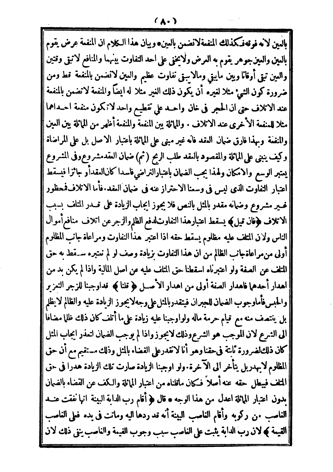 وَالْمُمَاثَلَةُ بَيْنَ الْمَنْفَعَةِ وَالْمَنْفَعَةِ أَظْهَرُ مِنْ الْمُمَاثَلَةِ بَيْنَ الْعَيْنِ وَالْمَنْفَعَةِ، وَبِهَذَا فَارَقَ ضَمَانَ الْعَقْدِ، فَإِنَّهُ غَيْرُ مَبْنِيٍّ عَلَى الْمُمَاثَلَةِ بِاعْتِبَارِ الْأَصْلِ بَلْ عَلَى الْمُرَاضَاةِ، وَكَيْفَ يَنْبَنِي عَلَى الْمُمَاثَلَةِ، وَالْمَقْصُودُ بِالْعَقْدِ طَلَبُ الرِّبْحِ. (ثُمَّ) ضَمَانُ الْعَقْدِ مَشْرُوعٌ، وَفِي الْمَشْرُوعِ يُعْتَبَرُ الْوُسْعُ وَالْإِمْكَانُ؛ وَلِهَذَا يَجِبُ الضَّمَانُ بِاعْتِبَارِ التَّرَاضِي فَاسِدًا كَانَ الْعَقْدُ أَوْ جَائِزًا فَيَسْقُطُ اعْتِبَارُ التَّفَاوُتِ الَّذِي لَيْسَ فِي وُسْعِنَا الِاحْتِرَازُ عَنْهُ فِي ضَمَانِ الْعَقْدِ، فَأَمَّا الْإِتْلَافُ فَمَحْظُورٌ غَيْرُ مَشْرُوعٍ، وَضَمَانُهُ مُقَدَّرٌ بِالْمِثْلِ بِالنَّصِّ، فَلَا يَجُوزُ إيجَابُ الزِّيَادَةِ عَلَى قَدْرِ الْمُتْلَفِ بِسَبَبِ الْإِتْلَافِ.