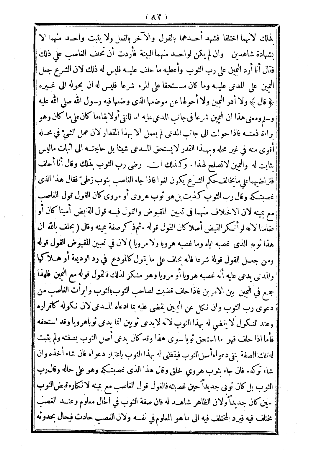 (قَالَ:) وَلَا أَدْرَأُ الْيَمِينَ، وَلَا أُحَوِّلُهَا عَنْ مَوْضِعِهَا الَّذِي وَضَعَهَا فِيهِ رَسُولُ اللَّهِ - صَلَّى اللَّهُ عَلَيْهِ وَسَلَّمَ -، وَمَعْنَى هَذَا أَنَّ الْيَمِينَ شَرْعًا فِي جَانِبِ الْمُدَّعَى عَلَيْهِ إمَّا لِلنَّفْيِ أَوْ لِإِبْقَاءِ مَا كَانَ عَلَى مَا كَانَ، وَهُوَ بَرَاءَةُ ذِمَّتِهِ، فَإِذَا حُوِّلَتْ إلَى جَانِبِ الْمُدَّعِي لَمْ يُعْمَلْ إلَّا بِهَذَا الْمِقْدَارِ؛ لِأَنَّ عَمَلَ الشَّيْءِ فِي مَحِلِّهِ أَقْوَى مِنْهُ فِي غَيْرِ مَحِلِّهِ، وَبِهَذَا الْقَدْرِ لَا يَسْتَحِقُّ الْمُدَّعِي شَيْئًا بَلْ حَاجَتُهُ إلَى إثْبَاتِ مَا لَيْسَ بِثَابِتٍ لَهُ، وَالْيَمِينُ لَا تَصْلُحُ لِهَذَا. وَكَذَلِكَ إنْ رَضِيَ رَبُّ الثَّوْبِ بِذَلِكَ، وَقَالَ: أَنَا أَحْلِفُ فَتَرَاضِيهِمَا عَلَى مَا يُخَالِفُ حُكْمَ الشَّرْعِ يَكُونُ لَغْوًا، فَإِذَا جَاءَ الْغَاصِبُ بِثَوْبٍ زُطِّيٍّ فَقَالَ: هَذَا الَّذِي غَصَبْتُكَهُ، وَقَالَ رَبُّ الثَّوْبِ: كَذَبْتَ بَلْ هُوَ ثَوْبٌ هَرَوِيٌّ أَوْ مَرْوِيٌّ كَانَ الْقَوْلُ قَوْلَ الْغَاصِبِ مَعَ يَمِينِهِ؛ لِأَنَّ الِاخْتِلَافَ مِنْهُمَا فِي تَعْيِينِ الْمَقْبُوضِ، وَالْقَوْلُ فِيهِ قَوْلُ الْقَابِضِ أَمِينًا كَانَ أَوْ ضَامِنًا؛ لِأَنَّهُ لَوْ أَنْكَرَ الْقَبْضَ أَصْلًا كَانَ الْقَوْلُ قَوْلَهُ، ثُمَّ ذَكَرَ صِفَةَ يَمِينِهِ، وَقَالَ: (يَحْلِفُ بِاَللَّهِ أَنَّ هَذَا ثَوْبُهُ الَّذِي غَصَبَهُ إيَّاهُ وَمَا غَصَبَهُ هَرَوِيًّا وَلَا مَرْوِيًّا)؛ لِأَنَّ فِي تَعْيِينِ الْمَقْبُوضِ الْقَوْلَ قَوْلُهُ، وَمَنْ جَعَلَ الْقَوْلَ قَوْلَهُ شَرْعًا، فَإِنَّهُ يَحْلِفُ عَلَى مَا يَقُولُ كَالْمُودِعِ فِي رَدِّ الْوَدِيعَةِ أَوْ هَلَاكِهَا، وَالْمُدَّعِي يَدَّعِي عَلَيْهِ أَنَّهُ غَصَبَهُ هَرَوِيًّا أَوْ مَرْوِيًّا، وَهُوَ مُنْكِرٌ لِذَلِكَ فَالْقَوْلُ قَوْلُهُ مَعَ الْيَمِينِ، فَلِهَذَا جَمَعَ فِي الْيَمِينِ بَيْنَ الْأَمْرَيْنِ، فَإِذَا حَلَفَ قَضَيْتُ لِصَاحِبِ الثَّوْبِ بِالثَّوْبِ، وَأَبْرَأْتُ الْغَاصِبَ مِنْ دَعْوَى رَبِّ الثَّوْبِ، وَإِنْ نَكَلَ عَنْ الْيَمِينِ يُقْضَى عَلَيْهِ بِمَا ادَّعَاهُ الْمُدَّعِي؛ لِأَنَّ نُكُولَهُ كَإِقْرَارِهِ. وَعِنْدَ النُّكُولِ لَا يُقْضَى لَهُ بِهَذَا الثَّوْبِ؛ لِأَنَّهُ لَا يَدَّعِي ثَوْبَيْنِ إنَّمَا يَدَّعِي ثَوْبًا هَرَوِيًّا وَقَدْ اسْتَحَقَّهُ، فَأَمَّا إذَا حَلَفَ فَهُوَ مَا اسْتَحَقَّ ثَوْبًا سِوَى هَذَا، وَقَدْ كَانَ يَدَّعِي أَصْلَ الثَّوْبِ بِصِفَتِهِ، وَلَمْ يُثْبِتْ لَهُ تِلْكَ الصِّفَةَ بِنَفْيِ دَعْوَاهُ أَصْلَ الثَّوْبِ فَيُقْضَى لَهُ بِهَذَا الثَّوْبِ بِاعْتِبَارِ دَعْوَاهُ، فَإِنْ شَاءَ أَخَذَهُ، وَإِنْ شَاءَ تَرَكَهُ، فَإِنْ جَاءَ بِثَوْبٍ هَرَوِيٍّ خَلَقٍ، وَقَالَ: هَذَا الَّذِي غَصَبْتُكَهُ وَهُوَ عَلَى حَالِهِ، وَقَالَ رَبُّ الثَّوْبِ: بَلْ كَانَ ثَوْبِي جَدِيدًا حِينَ غَصَبْتَهُ فَالْقَوْلُ قَوْلُ الْغَاصِبِ مَعَ يَمِينِهِ لِإِنْكَارِهِ قَبْضَ الثَّوْبِ حِينَ كَانَ جَدِيدًا، وَلِأَنَّ الظَّاهِرَ شَاهِدٌ لَهُ، فَإِنَّ صِفَةَ الثَّوْبِ فِي الْحَالِ مَعْلُومٌ، وَعِنْدَ الْغَصْبِ مُخْتَلَفٌ فِيهِ فَيُرَدُّ الْمُخْتَلَفُ فِيهِ إلَى مَا هُوَ الْمَعْلُومُ فِي نَفْسِهِ، وَلِأَنَّ الْغَصْبَ حَادِثٌ فَيُحَالُ بِحُدُوثِهِ