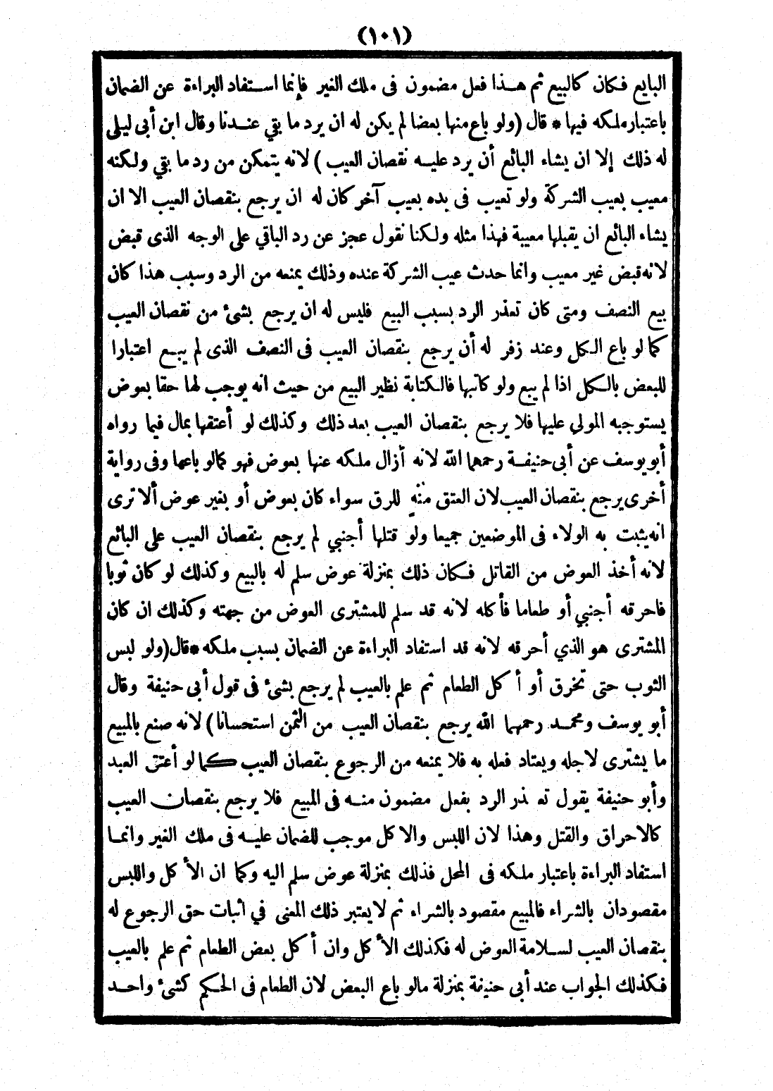 الْبَائِعِ فَكَانَ كَالْبَيْعِ ثُمَّ هَذَا فِعْلٌ مَضْمُونٌ فِي مِلْكِ الْغَيْرِ فَإِنَّمَا اسْتَفَادَ الْبَرَاءَةَ عَنْ الضَّمَانِ بِاعْتِبَارِ مِلْكِهِ فِيهَا قَالَ: وَلَوْ بَاعَ مِنْهَا بَعْضًا لَمْ يَكُنْ لَهُ أَنْ يَرُدَّ مَا بَقِيَ عِنْدَنَا وَقَالَ ابْنُ أَبِي لَيْلَى لَهُ ذَلِكَ إلَّا أَنْ يَشَاءَ الْبَائِعُ أَنْ يَرُدَّ عَلَيْهِ نُقْصَانَ الْعَيْبِ؛ لِأَنَّهُ يَتَمَكَّنُ مِنْ رَدِّ مَا بَقِيَ وَلَكِنَّهُ مَعِيبٌ بِعَيْبِ الشَّرِكَةِ وَلَوْ تَعَيَّبَ فِي يَدِهِ بِعَيْبٍ آخَرَ كَانَ لَهُ أَنْ يَرْجِعَ بِنُقْصَانِ الْعَيْبِ إلَّا أَنْ يَشَاءَ الْبَائِعُ أَنْ يَقْبَلَهَا مَعِيبَةً، فَهَذَا مِثْلُهُ وَلَكِنَّا نَقُولُ عَجَزَ عَنْ رَدِّ الْبَاقِي عَلَى الْوَجْهِ الَّذِي قَبَضَ؛ لِأَنَّهُ قَبْضٌ غَيْرُ مَعِيبٍ وَإِنَّمَا حَدَثَ عَيْبُ الشَّرِكَةِ عِنْدَهُ وَذَلِكَ يَمْنَعُهُ مِنْ الرَّدِّ وَسَبَبُ هَذَا كَانَ بَيْعَ النِّصْفِ وَمَتَى كَانَ تَعَذَّرَ الرَّدُّ بِسَبَبِ الْبَيْعِ فَلَيْسَ لَهُ أَنْ يَرْجِعَ بِشَيْءٍ مِنْ نُقْصَانِ الْعَيْبِ كَمَا لَوْ بَاعَ الْكُلَّ وَعِنْدَ زُفَرَ لَهُ أَنْ يَرْجِعَ بِنُقْصَانِ الْعَيْبِ فِي النِّصْفِ الَّذِي لَمْ يَبِعْ اعْتِبَارًا لِلْبَعْضِ بِالْكُلِّ إذَا لَمْ يَبِعْ، وَلَوْ كَاتَبَهَا فَالْكِتَابَةُ نَظِيرُ الْبَيْعِ مِنْ حَيْثُ إنَّهُ يُوجِبُ لَهَا حَقًّا بِعِوَضٍ يَسْتَوْجِبُهُ الْمَوْلَى عَلَيْهَا فَلَا يَرْجِعُ بِنُقْصَانِ الْعَيْبِ بَعْدَ ذَلِكَ.