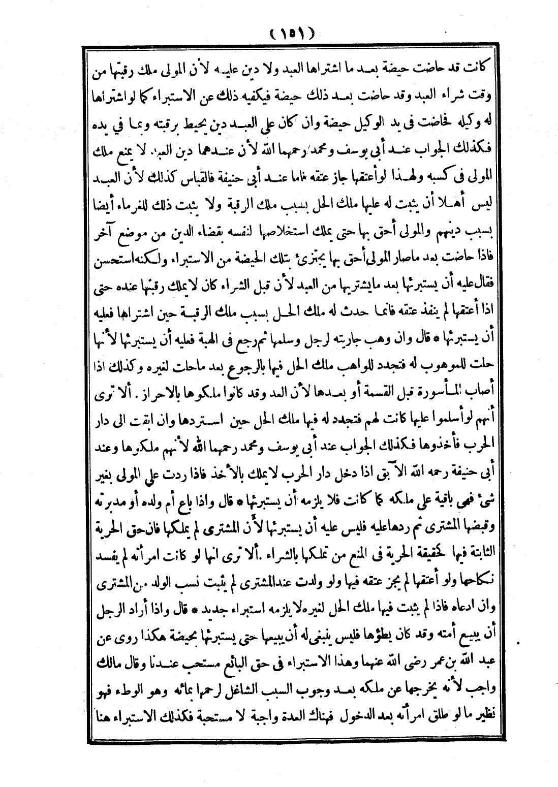 قَالَ: وَإِذَا أَرَادَ الرَّجُلُ أَنْ يَبِيعَ أُمَّتَهُ وَقَدْ كَانَ يَطَؤُهَا فَلَيْسَ يَنْبَغِي لَهُ أَنْ يَبِيعَهَا حَتَّى يَسْتَبْرِئَهَا بِحَيْضَةٍ هَكَذَا رُوِيَ عَنْ عَبْدِ اللَّهِ بْنِ عُمَرَ - رَضِيَ اللَّهُ عَنْهُمَا - وَهَذَا الِاسْتِبْرَاءُ فِي حَقِّ الْبَائِعِ مُسْتَحَبٌّ عِنْدَنَا وَقَالَ مَالِكٌ وَاجِبٌ؛ لِأَنَّهُ يُخْرِجُهَا عَنْ مِلْكِهِ بَعْدَ وُجُوبِ السَّبَبِ الشَّاغِلِ لِرَحِمِهَا بِمَائِهِ وَهُوَ الْوَطْءُ فَهُوَ نَظِيرُ مَا لَوْ طَلَّقَ امْرَأَتَهُ بَعْدَ الدُّخُولِ فَهُنَاكَ الْعِدَّةُ وَاجِبَةٌ لَا مُسْتَحَبَّةٌ فَكَذَلِكَ الِاسْتِبْرَاءُ هُنَا
