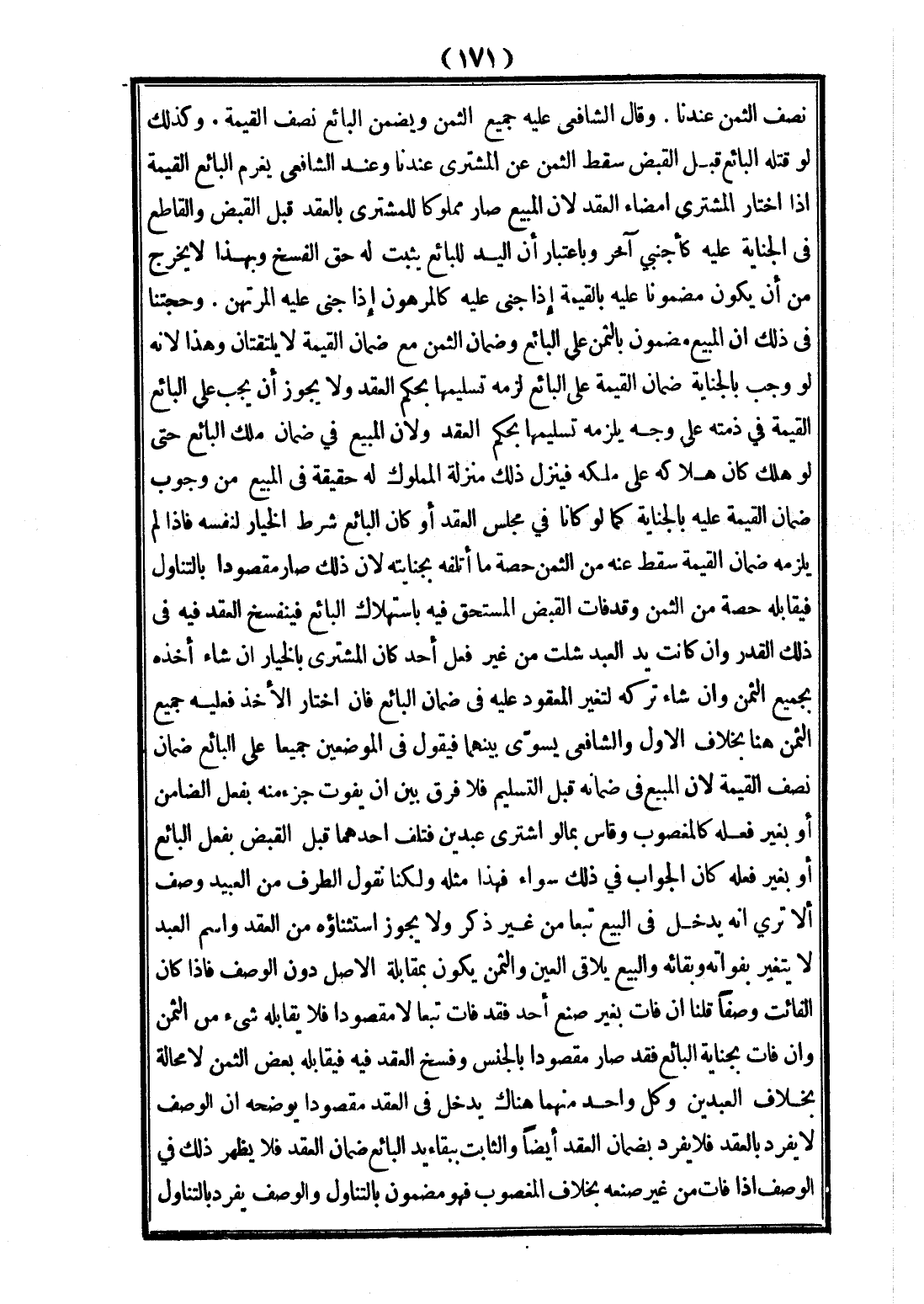 فَإِذَا لَمْ يَلْزَمْهُ ضَمَانُ الْقِيمَةِ سَقَطَ عَنْهُ مِنْ الثَّمَنِ حِصَّةُ مَا أَتْلَفَهُ بِجِنَايَتِهِ؛ لِأَنَّ ذَلِكَ صَارَ مَقْصُودًا بِالتَّنَاوُلِ فَيُقَابِلُهُ حِصَّةٌ مِنْ الثَّمَنِ وَقَدْ فَاتَ الْقَبْضُ الْمُسْتَحَقُّ فِيهِ بِاسْتِهْلَاكِ الْبَائِعِ فَيَنْفَسِخُ الْعَقْدُ فِيهِ فِي ذَلِكَ الْقَدْرِ، وَإِنْ كَانَتْ يَدُ الْعَبْدِ شَلَّتْ مِنْ غَيْرِ فِعْلِ أَحَدٍ كَانَ الْمُشْتَرِي بِالْخِيَارِ إنْ شَاءَ أَخَذَهُ بِجَمِيعِ الثَّمَنِ وَإِنْ شَاءَ تَرَكَهُ لِتَغَيُّرِ الْمَعْقُودِ عَلَيْهِ فِي ضَمَانِ الْبَائِعِ، فَإِنْ اخْتَارَ الْأَخْذَ فَعَلَيْهِ جَمِيعُ الثَّمَنِ هُنَا بِخِلَافِ الْأَوَّلِ وَالشَّافِعِيُّ يُسَوِّي بَيْنَهُمَا فَيَقُولُ فِي الْمَوْضِعَيْنِ جَمِيعًا عَلَى الْبَائِعِ ضَمَانُ نِصْفِ الْقِيمَةِ؛ لِأَنَّ الْمَبِيعَ فِي ضَمَانِهِ قَبْلَ التَّسْلِيمِ فَلَا فَرْقَ بَيْنَ أَنْ يَفُوتَ جُزْءٌ مِنْهُ بِفِعْلِ الضَّامِنِ أَوْ بِغَيْرِ فِعْلِهِ كَالْمَغْصُوبِ وَقَاسَ بِمَا لَوْ اشْتَرَى عَبْدَيْنِ فَتَلِفَ أَحَدُهُمَا قَبْلَ الْقَبْضِ بِفِعْلِ الْبَائِعِ أَوْ بِغَيْرِ فِعْلِهِ كَانَ الْجَوَابُ فِي ذَلِكَ سَوَاءٌ فَهَذَا مِثْلُهُ وَلَكِنَّا نَقُولُ الطَّرَفُ مِنْ الْعَبِيدِ وَصْفٌ، أَلَا تَرَى أَنَّهُ يَدْخُلُ فِي الْبَيْعِ تَبَعًا مِنْ غَيْرِ ذِكْرٍ وَلَا يَجُوزُ اسْتِثْنَاؤُهُ مِنْ الْعَقْدِ وَاسْمُ الْعَبْدِ لَا يَتَغَيَّرُ بِفَوَاتِهِ وَبَقَائِهِ وَالْبَيْعُ يُلَاقِي الْعَيْنَ وَالثَّمَنُ يَكُونُ بِمُقَابَلَةِ الْأَصْلِ دُونَ الْوَصْفِ، فَإِذَا كَانَ الْفَائِتُ وَصْفًا قُلْنَا إنْ فَاتَ بِغَيْرِ صُنْعِ أَحَدٍ فَقَدْ فَاتَ تَبَعًا لَا مَقْصُودًا فَلَا يُقَابِلُهُ شَيْءٌ مِنْ الثَّمَنِ وَإِنْ فَاتَ بِجِنَايَةِ الْبَائِعِ فَقَدْ صَارَ مَقْصُودًا بِالْجِنْسِ وَفَسْخُ الْعَقْدِ فِيهِ فَيُقَابِلُهُ بَعْضُ الثَّمَنِ لَا مَحَالَةَ بِخِلَافِ الْعَبْدَيْنِ وَكُلُّ وَاحِدٍ مِنْهُمَا هُنَاكَ يَدْخُلُ فِي الْعَقْدِ مَقْصُودًا يُوَضِّحُهُ أَنَّ الْوَصْفَ لَا يُفْرَدُ بِالْعَقْدِ فَلَا يُفْرَدُ بِضَمَانِ الْعَقْدِ أَيْضًا.