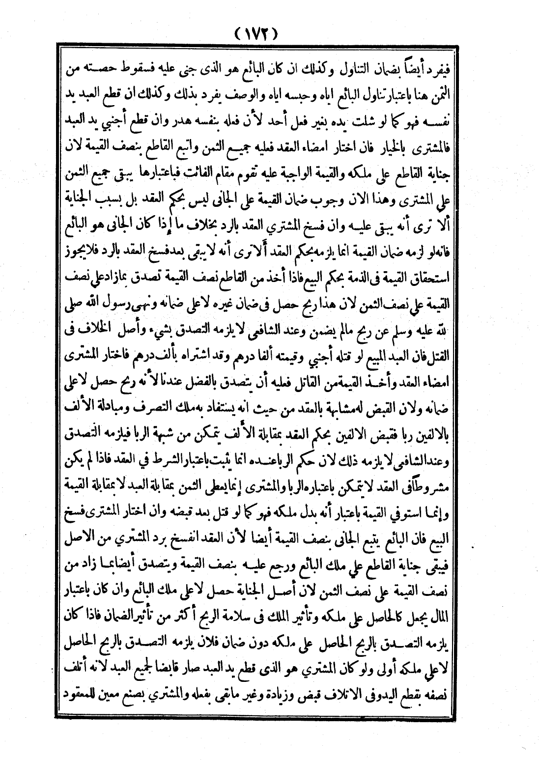 وَأَصْلُ الْخِلَافِ فِي الْقَتْلِ فَإِنَّ الْعَبْدَ الْمَبِيعَ لَوْ قَتَلَهُ أَجْنَبِيٌّ وَقِيمَتُهُ أَلْفَا دِرْهَمٍ وَقَدْ اشْتَرَاهُ بِأَلْفِ دِرْهَمٍ فَاخْتَارَ الْمُشْتَرِي إمْضَاءَ الْعَقْدِ وَأَخَذَ الْقِيمَةِ مِنْ الْقَاتِلِ فَعَلَيْهِ أَنْ يَتَصَدَّقَ بِالْفَضْلِ عِنْدَنَا؛ لِأَنَّهُ رِبْحٌ حَصَلَ لَا عَلَى ضَمَانِهِ وَلِأَنَّ الْقَبْضَ لَهُ مُشَابَهَةٌ بِالْعَقْدِ مِنْ حَيْثُ إنَّهُ يُسْتَفَادُ بِهِ مِلْكُ التَّصَرُّفِ وَمُبَادَلَةُ الْأَلْفِ بِالْأَلْفَيْنِ رِبًا فَقَبَضَ الْأَلْفَيْنِ بِحُكْمِ الْعَقْدِ بِمُقَابَلَةِ الْأَلْفِ يَتَمَكَّنُ مِنْ شُبْهَةِ الرِّبَا فَيَلْزَمُهُ التَّصَدُّقُ، وَعِنْدَ الشَّافِعِيِّ لَا يَلْزَمُهُ ذَلِكَ؛ لِأَنَّ حُكْمَ الرِّبَا عِنْدَهُ إنَّمَا يَثْبُتُ بِاعْتِبَارِ الشَّرْطِ فِي الْعَقْدِ، فَإِذَا لَمْ يَكُنْ مَشْرُوطًا فِي الْعَقْدِ لَا يَتَمَكَّنُ بِاعْتِبَارِهِ الرِّبَا وَالْمُشْتَرِي إنَّمَا يُعْطِي الثَّمَنَ بِمُقَابَلَةِ الْعَبْدِ لَا بِمُقَابَلَةِ الْقِيمَةِ وَإِنَّمَا اسْتَوْفَى فِي الْقِيمَةِ بِاعْتِبَارِ أَنَّهُ بَدَلُ مِلْكِهِ فَهُوَ كَمَا لَوْ قُتِلَ بَعْدَ قَبْضِهِ وَإِنْ اخْتَارَ الْمُشْتَرِي فَسْخَ الْبَيْعِ فَإِنَّ الْبَائِعَ يَتْبَعُ الْجَانِيَ بِنِصْفِ الْقِيمَةِ أَيْضًا؛ لِأَنَّ الْعَقْدَ انْفَسَخَ بِرَدِّ الْمُشْتَرِي مِنْ الْأَصْلِ فَيَبْقَى جِنَايَةُ الْقَاطِعِ عَلَى مِلْكِ الْبَائِعِ وَرَجَعَ عَلَيْهِ بِنِصْفِ الْقِيمَةِ وَيَتَصَدَّقُ أَيْضًا بِمَا زَادَ مِنْ نِصْفِ الْقِيمَةِ عَلَى نِصْفِ الثَّمَنِ؛ لِأَنَّ أَصْلَ الْجِنَايَةَ حَصَلَ لَا عَلَى مِلْكِ الْبَائِعِ، وَإِنْ كَانَ بِاعْتِبَارِ الْمَالِ يُجْعَلُ كَالْحَاصِلِ عَلَى مِلْكِهِ وَتَأْثِيرُ الْمِلْكِ فِي سَلَامَةِ الرِّبْحِ أَكْثَرُ مِنْ تَأْثِيرِ الضَّمَانِ، فَإِذَا كَانَ يَلْزَمُهُ التَّصَدُّقُ بِالرِّبْحِ الْحَاصِلِ عَلَى مِلْكِهِ دُونَ ضَمَانٍ فَلَأَنْ يَلْزَمَهُ التَّصَدُّقُ بِالرِّبْحِ الْحَاصِلِ لَا عَلَى مِلْكِهِ أَوْلَى.