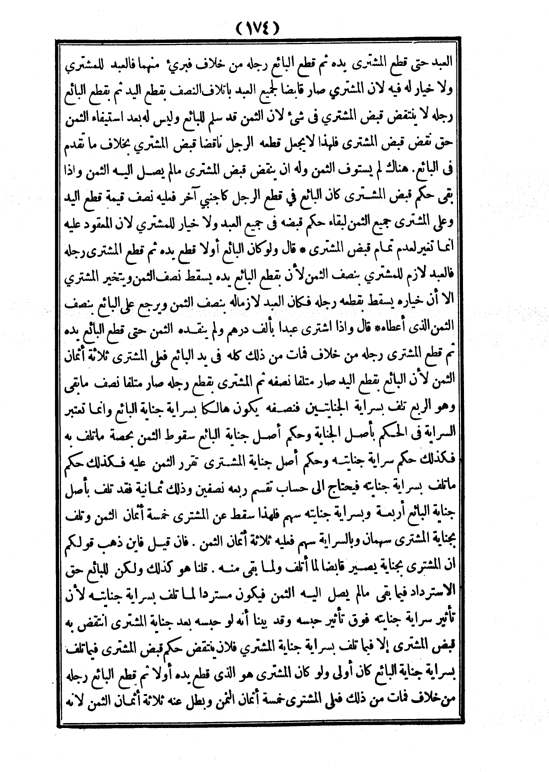قَالَ: وَإِذَا اشْتَرَى عَبْدًا بِأَلْفِ دِرْهَمٍ وَلَمْ يَنْقُدْهُ الثَّمَنَ حَتَّى قَطَعَ الْبَائِعُ يَدَهُ ثُمَّ قَطَعَ الْمُشْتَرِي رِجْلَهُ مِنْ خِلَافٍ فَمَاتَ مِنْ ذَلِكَ كُلِّهِ فِي يَدِ الْبَائِعِ فَعَلَى الْمُشْتَرِي ثَلَاثَةُ أَثْمَانِ الثَّمَنِ؛ لِأَنَّ الْبَائِعَ بِقَطْعِ الْيَدِ صَارَ مُتْلِفًا نِصْفَهُ ثُمَّ الْمُشْتَرِي بِقَطْعِ رِجْلِهِ صَارَ مُتْلِفًا نِصْفَ مَا بَقِيَ وَهُوَ الرُّبْعُ تَلِفَ بِسِرَايَةِ الْجِنَايَتَيْنِ فَنِصْفُهُ يَكُونُ هَالِكًا بِسِرَايَةِ جِنَايَةِ الْبَائِعِ وَإِنَّمَا تُعْتَبَرُ السِّرَايَةُ فِي الْحُكْمِ بِأَصْلِ الْجِنَايَةِ وَحُكْمُ أَصْلِ جِنَايَةِ الْبَائِعِ سُقُوطُ الثَّمَنِ بِحِصَّةِ مَا تَلِفَ بِهِ فَكَذَلِكَ حُكْمُ سِرَايَةِ جِنَايَتِهِ وَحُكْمُ أَصْلِ جِنَايَةِ الْمُشْتَرِي تَقَرُّرُ الثَّمَنِ عَلَيْهِ فَكَذَلِكَ حُكْمُ مَا تَلِفَ بِسِرَايَةِ جِنَايَتِهِ فَيَحْتَاجُ إلَى حِسَابٍ، تُقْسَمُ رُبْعُهُ نِصْفَيْنِ وَذَلِكَ ثَمَانِيَةٌ فَقَدْ تَلِفَ بِأَصْلِ جِنَايَةِ الْبَائِعِ أَرْبَعَةً وَبِسِرَايَةِ جِنَايَتِهِ سَهْمٌ فَلِهَذَا سَقَطَ عَنْ الْمُشْتَرِي خَمْسَةُ أَثْمَانِ الثَّمَنِ وَتَلِفَ بِجِنَايَةِ الْمُشْتَرِي سَهْمَانِ وَبِالسِّرَايَةِ سَهْمٌ فَعَلَيْهِ ثَلَاثَةُ أَثْمَانِ الثَّمَنِ، فَإِنْ قِيلَ فَأَيْنَ ذَهَبَ قَوْلُكُمْ إنَّ الْمُشْتَرِيَ بِجِنَايَةٍ يَصِيرُ قَابِضًا لِمَا أَتْلَفَ وَلِمَا بَقِيَ مِنْهُ قُلْنَا هُوَ كَذَلِكَ وَلَكِنْ لِلْبَائِعِ حَقُّ الِاسْتِرْدَادِ فِيمَا بَقِيَ مَا لَمْ يَصِلْ إلَيْهِ الثَّمَنُ فَيَكُونُ مُسْتَرِدًّا لِمَا تَلِفَ بِسِرَايَةِ جِنَايَتِهِ؛ لِأَنَّ تَأْثِيرَ سِرَايَةِ جِنَايَتِهِ فَوْقَ تَأْثِيرِ حَبْسِهِ وَقَدْ بَيَّنَّا أَنَّهُ لَوْ حَبَسَهُ بَعْدَ جِنَايَةِ الْمُشْتَرِي انْتَقَضَ بِهِ قَبْضُ الْمُشْتَرِي إلَّا فِيمَا تَلِفَ بِسِرَايَةِ جِنَايَةِ الْمُشْتَرِي فَلَأَنْ يَنْتَقِضَ حُكْمُ قَبْضِ الْمُشْتَرِي فِيمَا تَلِفَ بِسِرَايَةِ جِنَايَةِ الْبَائِعِ كَانَ أَوْلَى، وَلَوْ كَانَ الْمُشْتَرِي هُوَ الَّذِي قَطَعَ يَدَهُ أَوَّلًا ثُمَّ قَطَعَ الْبَائِعُ رِجْلَهُ مِنْ خِلَافٍ فَمَاتَ مِنْ ذَلِكَ فَعَلَى الْمُشْتَرِي خَمْسَةُ أَثْمَانِ الثَّمَنِ وَبَطَلَ عَنْهُ ثَلَاثَةُ أَثْمَانِ الثَّمَنِ؛ لِأَنَّهُ