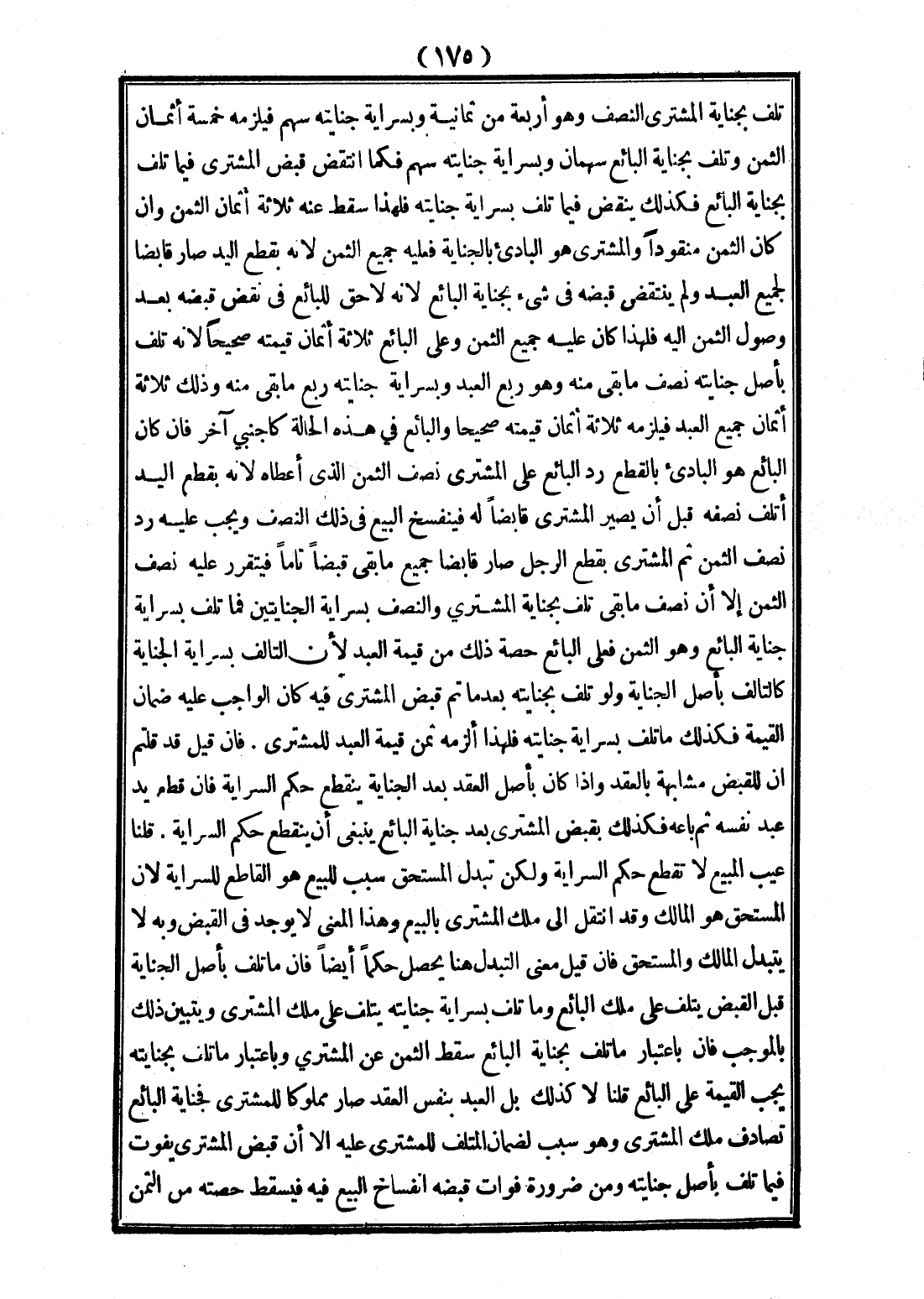 فَلِهَذَا كَانَ عَلَيْهِ جَمِيعُ الثَّمَنِ وَعَلَى الْبَائِعِ ثَلَاثَةُ أَثْمَانِ قِيمَتِهِ صَحِيحًا؛ لِأَنَّهُ تَلِفَ بِأَصْلِ جِنَايَتِهِ نِصْفُ مَا بَقِيَ مِنْهُ وَهُوَ رُبْعُ الْعَبْدِ وَبِسِرَايَةِ جِنَايَتِهِ رُبْعُ مَا بَقِيَ مِنْهُ وَذَلِكَ ثَلَاثَةُ أَثْمَانِ جَمِيعِ الْعَبْدِ فَيَلْزَمُهُ ثَلَاثَةُ أَثْمَانِ قِيمَتِهِ صَحِيحًا وَالْبَائِعُ فِي هَذِهِ الْحَالَةِ كَأَجْنَبِيٍّ آخَرَ فَإِنْ كَانَ الْبَائِعُ هُوَ الْبَادِئَ بِالْقَطْعِ رَدَّ الْبَائِعُ عَلَى الْمُشْتَرِي نِصْفَ الثَّمَنِ الَّذِي أَعْطَاهُ؛ لِأَنَّهُ بِقَطْعِ الْيَدِ أَتْلَفَ نِصْفَهُ قَبْلَ أَنْ يَصِيرَ الْمُشْتَرِي قَابِضًا لَهُ فَيَنْفَسِخُ الْبَيْعُ فِي ذَلِكَ النِّصْفِ وَيَجِبُ عَلَيْهِ رَدُّ نِصْفِ الثَّمَنِ ثُمَّ الْمُشْتَرِي بِقَطْعِ الرِّجْلِ صَارَ قَابِضًا جَمِيعَ مَا بَقِيَ قَبْضًا تَامًّا فَيَتَقَرَّرُ عَلَيْهِ نِصْفُ الثَّمَنِ إلَّا أَنَّ نِصْفَ مَا بَقِيَ تَلِفَ بِجِنَايَةِ الْمُشْتَرِي وَالنِّصْفُ بِسِرَايَةِ الْجِنَايَتَيْنِ فَمَا تَلِفَ بِسِرَايَةِ جِنَايَةِ الْبَائِعِ وَهُوَ الثَّمَنُ فَعَلَى الْبَائِعِ حِصَّةُ ذَلِكَ مِنْ قِيمَةِ الْعَبْدِ؛ لِأَنَّ التَّالِفَ بِسِرَايَةِ الْجِنَايَةِ كَالتَّالِفِ بِأَصْلِ الْجِنَايَةِ، وَلَوْ تَلِفَ بِجِنَايَتِهِ بَعْدَمَا تَمَّ قَبْضُ الْمُشْتَرِي فِيهِ كَانَ الْوَاجِبُ عَلَيْهِ ضَمَانُ الْقِيمَةِ فَكَذَلِكَ مَا تَلِفَ بِسِرَايَةِ جِنَايَتِهِ فَلِهَذَا أَلْزَمَهُ ثُمُنَ قِيمَةِ الْعَبْدِ لِلْمُشْتَرِي فَإِنْ قِيلَ قَدْ قُلْتُمْ: إنَّ لِلْقَبْضِ مُشَابَهَةً بِالْعَقْدِ وَإِذَا كَانَ بِأَصْلِ الْعَقْدِ بَعْدَ الْجِنَايَةِ يَنْقَطِعُ حُكْمُ السِّرَايَةِ فَإِنْ قَطَعَ يَدَ عَبْدِ نَفْسِهِ ثُمَّ بَاعَهُ فَكَذَلِكَ بِقَبْضِ الْمُشْتَرِي بَعْدَ جِنَايَةِ الْبَائِعِ يَنْبَغِي أَنْ يَنْقَطِعَ حُكْمُ السِّرَايَةِ قُلْنَا عَيْبُ الْمَبِيعِ لَا يَقْطَعُ حُكْمَ السِّرَايَةِ وَلَكِنَّ تَبَدُّلَ الْمُسْتَحِقِّ سَبَبٌ لِلْبَيْعِ وَهُوَ الْقَاطِعُ لِلسِّرَايَةِ؛ لِأَنَّ الْمُسْتَحِقَّ هُوَ الْمَالِكُ وَقَدْ انْتَقَلَ إلَى مِلْكِ الْمُشْتَرِي بِالْبَيْعِ وَهَذَا الْمَعْنَى لَا يُوجَدُ فِي الْقَبْضِ وَبِهِ لَا يَتَبَدَّلُ الْمَالِكُ وَالْمُسْتَحِقُّ فَإِنْ قِيلَ مَعْنَى التَّبَدُّلِ هُنَا يَحْصُلُ حُكْمًا أَيْضًا فَإِنَّ مَا تَلِفَ بِأَصْلِ الْجِنَايَةِ قَبْلَ الْقَبْضِ يَتْلَفُ عَلَى مِلْكِ الْبَائِعِ وَمَا تَلِفَ بِسِرَايَةِ جِنَايَتِهِ يَتْلَفُ عَلَى مِلْكِ الْمُشْتَرِي.