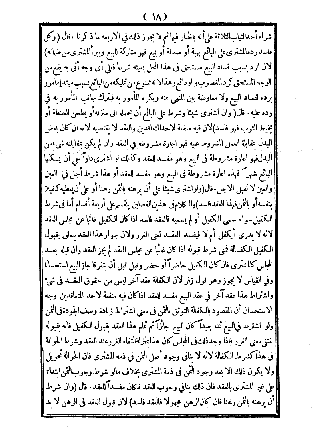 قَالَ وَلَوْ اشْتَرَى شَيْئًا عَلَى أَنْ يَرْهَنَهُ بِالثَّمَنِ رَهْنًا أَوْ عَلَى أَنْ يُعْطِيَهُ كَفِيلًا بِنَفْسِهِ أَوْ بِالثَّمَنِ فَهَذَا الْعَقْدُ فَاسِدٌ وَالْكَلَامُ فِي هَذَيْنِ الْفَصْلَيْنِ يَنْقَسِمُ عَلَى أَرْبَعَةِ أَقْسَامٍ أَمَّا فِي شَرْطِ الْكَفِيلِ سَوَاءٌ سَمَّى الْكَفِيلُ أَوْ لَمْ يُسَمِّهِ فَالْعَقْدُ فَاسِدٌ إذَا كَانَ الْكَفِيلُ غَائِبًا عَنْ مَجْلِسِ الْعَقْدِ؛ لِأَنَّهُ لَا يَدْرِي أَيَكْفُلُ أَمْ لَا فَيَفْسُدُ الْعَقْدُ لِمَعْنَى الْغَرَرِ، وَلِأَنَّ جَوَازَ هَذَا الْعَقْدِ يَتَعَلَّقُ بِقَبُولِ الْكَفِيلِ الْكَفَالَةَ فَمَتَى شَرَطَ قَبُولَهُ إذَا كَانَ غَائِبًا عَنْ مَجْلِسِ الْعَقْدِ لَمْ يَجُزْ الْعَقْدُ، وَإِنْ قَبِلَهُ بَعْدَ الْمَجْلِسِ كَالْمُشْتَرِي، فَإِنْ كَانَ الْكَفِيلُ حَاضِرًا أَوْ حَضَرَ وَقَبِلَ قَبْلَ أَنَّ يَتَفَرَّقَا جَازَ الْبَيْعُ اسْتِحْسَانًا وَفِي الْقِيَاسِ لَا يَجُوزُ وَهُوَ قَوْلُ زُفَرَ؛ لِأَنَّ الْكَفَالَةَ عَقْدٌ آخَرُ لَيْسَ مِنْ حُقُوقِ الْعَقْدِ فِي شَيْءٍ وَاشْتِرَاطُ هَذَا عَقْدٌ آخَرُ فِي عَقْدِ الْبَيْعِ مُفْسِدٌ لِلْعَقْدِ إذَا كَانَ فِيهِ مَنْفَعَةٌ لِأَحَدِ الْمُتَعَاقِدَيْنِ، وَجْهُ الِاسْتِحْسَانِ أَنَّ الْمَقْصُودَ بِالْكَفَالَةِ التَّوَثُّقُ بِالثَّمَنِ فِي مَعْنَى اشْتِرَاطِ زِيَادَةِ وَصْفِ الْجَوْدَةِ فِي الثَّمَنِ، وَلَوْ اشْتَرَطَ فِي الْبَيْعِ ثَمَنًا جَيِّدًا كَانَ الْبَيْعُ جَائِزًا ثُمَّ تَمَامُ هَذَا الْعَقْدِ بِقَبُولِ الْكَفِيلِ فَإِنَّهُ بِقَبُولِهِ يَنْتَفِي مَعْنَى الْغَرَرِ فَإِذَا وَجَدَ ذَلِكَ فِي الْمَجْلِسِ كَانَ هَذَا بِمَنْزِلَةِ انْتِفَاءِ الْغَرَرِ عِنْدَ الْعَقْدِ، وَشَرْطُ الْحَوَالَةِ فِي هَذَا كَشَرْطِ الْكَفَالَةِ؛ لِأَنَّهُ لَا يُنَافِي وُجُودَ أَصْلِ الثَّمَنِ فِي ذِمَّةِ الْمُشْتَرِي فَإِنَّ الْحَوَالَةَ تَحْوِيلٌ وَلَا يَكُونُ ذَلِكَ إلَّا بَعْدَ وُجُودِ الثَّمَنِ فِي ذِمَّةِ الْمُشْتَرِي بِخِلَافِ مَا لَوْ شَرَطَ وُجُوبَ الثَّمَنِ ابْتِدَاءً عَلَى غَيْرِ الْمُشْتَرِي بِالْعَقْدِ فَإِنَّ ذَلِكَ يُنَافِي وُجُوبَ الْعَقْدِ فَكَانَ مُفْسِدًا لِلْعَقْدِ قَالَ: وَإِنْ شَرَطَ أَنْ يَرْهَنَهُ بِالثَّمَنِ رَهْنًا فَإِنْ كَانَ الرَّهْنُ مَجْهُولًا فَالْعَقْدُ فَاسِدٌ؛ لِأَنَّ قَبُولَ الرَّهْنِ لَا بُدَّ