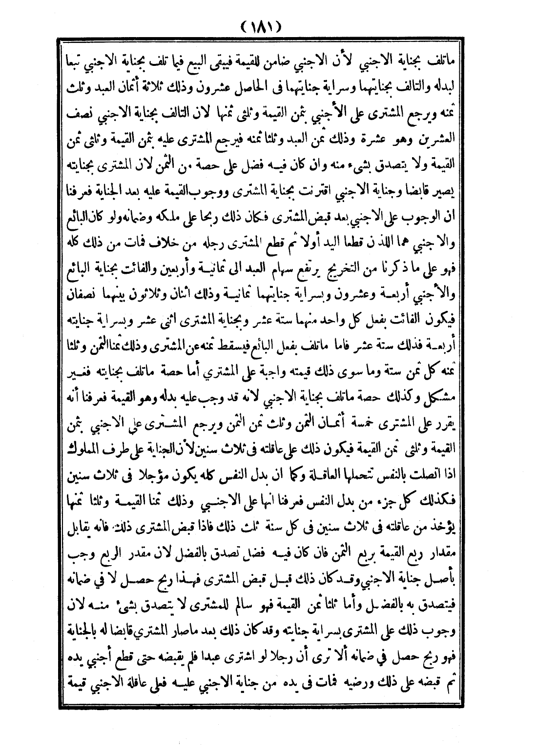 وَلَوْ كَانَ الْبَائِعُ وَالْأَجْنَبِيُّ هُمَا اللَّذَانِ قَطَعَا الْيَدَ أَوَّلًا ثُمَّ قَطَعَ الْمُشْتَرِي رِجْلَهُ مِنْ خِلَافٍ فَمَاتَ مِنْ ذَلِكَ كُلِّهِ فَهُوَ عَلَى مَا ذَكَرْنَا مِنْ التَّخْرِيجِ يَرْتَفِعُ سِهَامُ الْعَبْدِ إلَى ثَمَانِيَةٍ وَأَرْبَعِينَ وَالْفَائِتُ بِجِنَايَةِ الْبَائِعِ وَالْأَجْنَبِيِّ أَرْبَعَةٌ وَعِشْرُونَ وَبِسِرَايَةِ جِنَايَتِهِمَا ثَمَانِيَةٌ وَذَلِكَ اثْنَانِ وَثَلَاثُونَ بَيْنَهُمَا نِصْفَانِ فَيَكُونُ الْفَائِتُ بِفِعْلِ كُلِّ وَاحِدٍ مِنْهُمَا سِتَّةَ عَشَرَ وَبِجِنَايَةِ الْمُشْتَرِي اثْنَيْ عَشَرَ وَبِسِرَايَةِ جِنَايَتِهِ أَرْبَعَةً فَذَلِكَ سِتَّةَ عَشَرَ فَأَمَّا مَا تَلِفَ بِفِعْلِ الْبَائِعِ فَيَسْقُطُ ثَمَنُهُ عَنْ الْمُشْتَرِي وَذَلِكَ ثُمُنَا الثَّمَنِ وَثُلُثَا ثُمُنِهِ كُلُّ ثُمُنٍ سِتَّةٌ وَمَا سِوَى ذَلِكَ قِيمَتُهُ وَاجِبَةٌ عَلَى الْمُشْتَرِي أَمَّا حِصَّةُ مَا تَلِفَ بِجِنَايَتِهِ فَغَيْرُ مُشْكِلٍ، وَكَذَلِكَ حِصَّةُ مَا تَلِفَ بِجِنَايَةِ الْأَجْنَبِيِّ؛ لِأَنَّهُ قَدْ وَجَبَ عَلَيْهِ بَدَلَهُ وَهُوَ الْقِيمَةُ فَعَرَفْنَا أَنَّهُ يُقَرِّرُ عَلَى الْمُشْتَرِي خَمْسَةَ أَثْمَانِ الثَّمَنِ وَثُلُثَ ثُمُنِ الثَّمَنِ وَيَرْجِعُ الْمُشْتَرِي عَلَى الْأَجْنَبِيِّ بِثُمُنِ الْقِيمَةِ وَثُلُثَيْ ثُمُنِ الْقِيمَةِ فَيَكُونُ ذَلِكَ عَلَى عَاقِلَتِهِ فِي ثَلَاثِ سِنِينَ؛ لِأَنَّ الْجِنَايَةَ عَلَى طَرَفِ الْمَمْلُوكِ إذَا اتَّصَلَتْ بِالنَّفْسِ تَتَحَمَّلُهَا الْعَاقِلَةُ وَكَمَا أَنَّ بَدَلَ النَّفْسِ كُلَّهُ يَكُونُ مُؤَجَّلًا فِي ثَلَاثِ سِنِينَ فَكَذَلِكَ كُلُّ جُزْءٍ مِنْ بَدَلِ النَّفْسِ فَعَرَفْنَا أَنَّهَا عَلَى الْأَجْنَبِيِّ وَذَلِكَ ثُمُنَا الْقِيمَةِ وَثُلُثَا ثُمُنِهَا يُؤْخَذُ مِنْ عَاقِلَتِهِ فِي ثَلَاثِ سِنِينَ فِي كُلِّ سَنَةٍ ثُلُثُ ذَلِكَ، فَإِذَا قَبَضَ الْمُشْتَرِي ذَلِكَ فَإِنَّهُ يُقَابِلُ مِقْدَارَ رُبْعِ الْقِيمَةِ بِرُبُعِ الثَّمَنِ فَإِنْ كَانَ فِيهِ فَضْلٌ تَصَدَّقَ بِالْفَضْلِ؛ لِأَنَّ مِقْدَارَ الرُّبُعِ وَجَبَ بِأَصْلِ جِنَايَةِ الْأَجْنَبِيِّ وَقَدْ كَانَ ذَلِكَ قَبْلَ قَبْضِ الْمُشْتَرِي فَهَذَا رِبْحٌ حَصَلَ لَا فِي ضَمَانِهِ فَيَتَصَدَّقُ بِهِ بِالْفَضْلِ وَأَمَّا ثُلُثَا ثُمُنِ الْقِيمَةِ فَهُوَ سَالِمٌ لِلْمُشْتَرِي لَا يَتَصَدَّقُ بِشَيْءٍ مِنْهُ؛ لِأَنَّ وُجُوبَ ذَلِكَ عَلَى الْمُشْتَرِي بِسِرَايَةِ جِنَايَتِهِ وَقَدْ كَانَ ذَلِكَ بَعْدَ مَا صَارَ الْمُشْتَرِي قَابِضًا لَهُ بِالْجِنَايَةِ فَهُوَ رِبْحٌ حَصَلَ فِي ضَمَانِهِ، أَلَا تَرَى أَنَّ رَجُلًا لَوْ اشْتَرَى عَبْدًا فَلَمْ يَقْبِضْهُ حَتَّى قَطَعَ أَجْنَبِيٌّ يَدَهُ ثُمَّ قَبَضَهُ عَلَى ذَلِكَ وَرَضِيَهُ فَمَاتَ فِي يَدِهِ مِنْ جِنَايَةِ الْأَجْنَبِيِّ عَلَيْهِ فَعَلَى عَاقِلَةِ الْأَجْنَبِيِّ قِيمَةُ