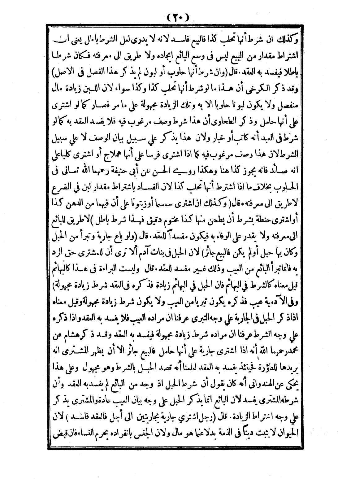 وَكَذَلِكَ إنْ شَرَطَ أَنَّهَا تَحْلِبُ كَذَا فَالْبَيْعُ فَاسِدٌ؛ لِأَنَّهُ لَا يَدْرِي لَعَلَّ الشَّرْطَ بَاطِلٌ يَعْنِي أَنَّ اشْتِرَاطَ مِقْدَارٍ مِنْ الْبَيْعِ لَيْسَ فِي وُسْعِ الْبَائِعِ إيجَادُهُ وَلَا طَرِيقَ إلَى مَعْرِفَتِهِ فَكَانَ شَرْطًا بَاطِلًا فَيَفْسُدُ بِهِ الْعَقْدُ قَالَ: وَإِنْ شَرَطَ أَنَّهَا حَلُوبٌ أَوْ لَبُونٌ لَمْ يَذْكُرْ هَذَا الْفَصْلَ فِي الْأَصْلِ، وَقَدْ ذَكَرَ الْكَرْخِيُّ أَنَّ هَذَا مَا لَوْ شَرَطَ أَنَّهَا تَحْلِبُ كَذَا وَكَذَا سَوَاءٌ اللَّبَنُ زِيَادَةُ مَالٍ مُنْفَصِلٍ وَلَا يَكُونُ لَبُونًا حَلُوبًا إلَّا بِهِ وَتِلْكَ الزِّيَادَةُ مَجْهُولَةٌ عَلَى مَا مَرَّ فَصَارَ كَمَا لَوْ اشْتَرَى عَلَى أَنَّهَا حَامِلٌ وَذَكَرَ الطَّحَاوِيُّ أَنَّ هَذَا شَرْطُ وَصْفٍ مَرْغُوبٍ فِيهِ فَلَا يَفْسُدُ الْعَقْدُ بِهِ كَمَا لَوْ شَرَطَ فِي الْعَبْدِ أَنَّهُ كَاتِبٌ أَوْ خَبَّازٌ وَلِأَنَّ هَذَا يُذْكَرُ عَلَى سَبِيلِ بَيَانِ الْوَصْفِ لَا عَلَى سَبِيلِ الشَّرْطِ؛ لِأَنَّ هَذَا وَصْفٌ مَرْغُوبٌ فِيهِ كَمَا إذَا اشْتَرَى فَرَسًا عَلَى أَنَّهَا هِمْلَاجٌ أَوْ اشْتَرَى كَلْبًا عَلَى أَنَّهُ صَائِدٌ فَإِنَّهُ يَجُوزُ كَذَا هُنَا وَهَكَذَا رَوَى الْحَسَنُ عَنْ أَبِي حَنِيفَةَ - رَحِمَهُمَا اللَّهُ تَعَالَى - فِي الْحَلُوبِ بِخِلَافِ مَا إذَا اشْتَرَطَ أَنَّهَا تَحْلِبُ كَذَا؛ لِأَنَّ الْفَسَادَ بِاشْتِرَاطِ مِقْدَارِ لَبَنٍ فِي الضَّرْعِ لَا طَرِيقَ إلَى مَعْرِفَتِهِ قَالَ: وَكَذَلِكَ إنْ اشْتَرَى سِمْسِمًا أَوْ زَيْتُونًا عَلَى أَنَّ فِيهِمَا مِنْ الدُّهْنِ كَذَا أَوْ اشْتَرَى حِنْطَةً بِشَرْطِ أَنْ يَطْحَنَ مِنْهَا كَذَا مَخْتُومَ دَقِيقٍ فَهَذَا شَرْطٌ بَاطِلٌ لَا طَرِيقَ لِلْبَائِعِ إلَى مَعْرِفَتِهِ وَلَا يَقْدِرُ عَلَى الْوَفَاءِ بِهِ فَيَكُونُ مُفْسِدًا لِلْعَقْدِ.