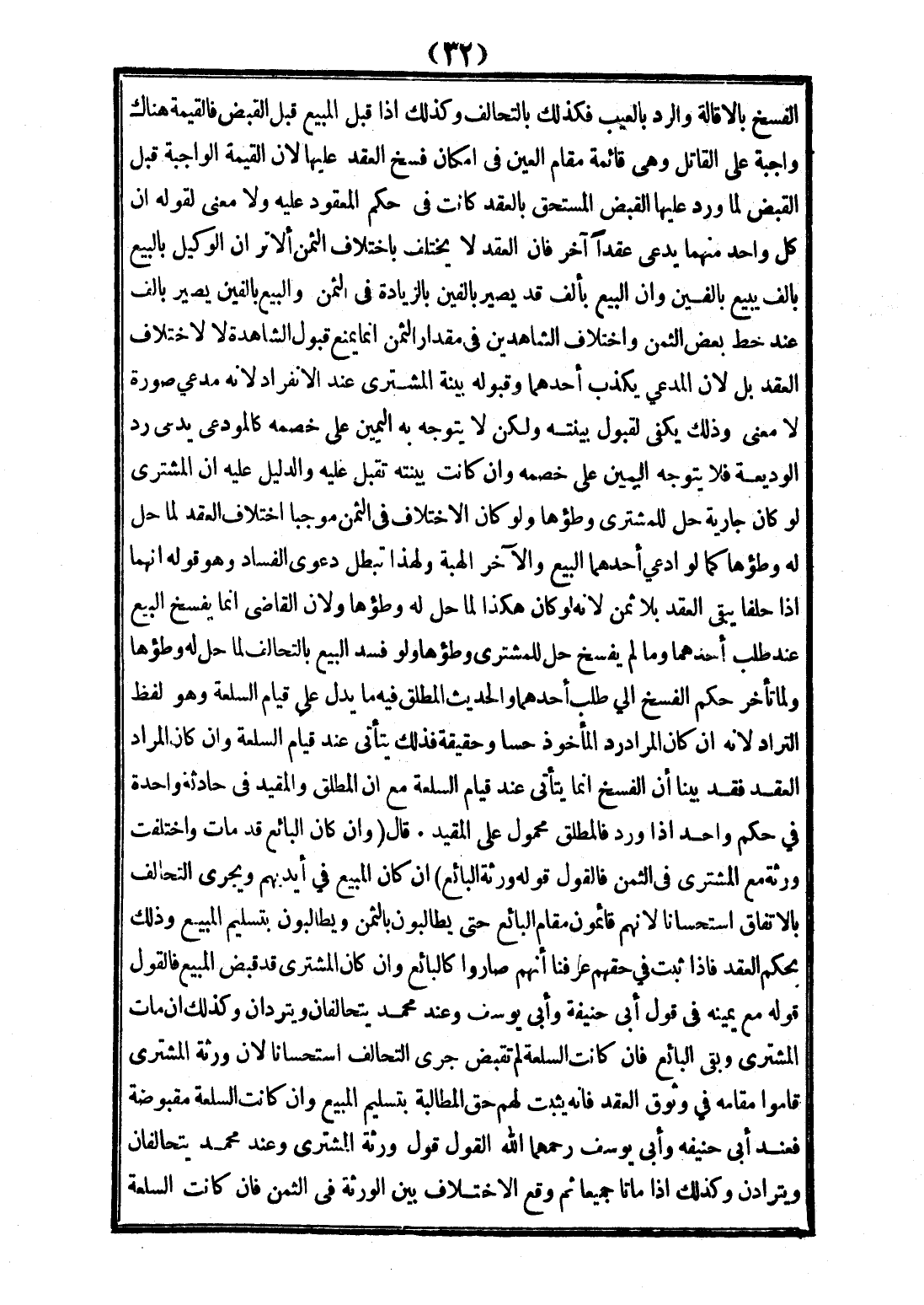 الْفَسْخُ بِالْإِقَالَةِ وَالرَّدُّ بِالْعَيْبِ، فَكَذَلِكَ بِالتَّحَالُفِ، وَكَذَلِكَ إذَا قُبِلَ الْمَبِيعُ قَبْلَ الْقَبْضِ فَالْقِيمَةُ هُنَاكَ وَاجِبَةٌ عَلَى الْقَاتِلِ وَهِيَ قَائِمَةٌ مَقَامَ الْعَيْنِ فِي إمْكَانِ فَسْخِ الْعَقْدِ عَلَيْهَا؛ لِأَنَّ الْقِيمَةَ الْوَاجِبَةَ قَبْلَ الْقَبْضِ لَمَّا وَرَدَ عَلَيْهَا الْقَبْضُ الْمُسْتَحَقُّ بِالْعَقْدِ كَانَتْ فِي حُكْمِ الْمَعْقُودِ عَلَيْهِ وَلَا مَعْنَى لِقَوْلِهِ: أَنَّ كُلَّ وَاحِدٍ مِنْهُمَا يَدَّعِي عَقْدًا آخَرَ فَإِنَّ الْعَقْدَ لَا يَخْتَلِفُ بِاخْتِلَافِ الثَّمَنِ أَلَا تَرَى أَنَّ الْوَكِيلَ بِالْبَيْعِ بِأَلْفٍ يَبِيعُ بِأَلْفَيْنِ وَأَنَّ الْبَيْعَ بِأَلْفٍ قَدْ يَصِيرُ بِأَلْفَيْنِ بِالزِّيَادَةِ فِي الثَّمَنِ، وَالْبَيْعُ بِأَلْفَيْنِ يَصِيرُ بِأَلْفٍ عِنْدَ حَطِّ بَعْضِ الثَّمَنِ وَاخْتِلَافُ الشَّاهِدَيْنِ فِي مِقْدَارِ الثَّمَنِ إنَّمَا يَمْنَعُ قَبُولَ الشَّهَادَةِ لَا لِاخْتِلَافِ الْعَقْدِ بَلْ؛ لِأَنَّ الْمُدَّعِيَ يُكَذِّبُ أَحَدَهُمَا وَقَبُولُهُ بَيِّنَةَ الْمُشْتَرِي عِنْدَ الِانْفِرَادِ؛ لِأَنَّهُ مُدَّعِي صُورَةً لَا مَعْنًى وَذَلِكَ يَكْفِي لِقَبُولِ بَيِّنَتِهِ، وَلَكِنْ لَا يَتَوَجَّهُ بِهِ الْيَمِينُ عَلَى خَصْمِهِ كَالْمُدَّعِي يَدَّعِي رَدَّ الْوَدِيعَةِ فَلَا يَتَوَجَّهُ الْيَمِينُ عَلَى خَصْمِهِ وَإِنْ كَانَتْ بَيِّنَتُهُ تَقْبَلُ عَلَيْهِ، وَالدَّلِيلُ عَلَيْهِ أَنَّ الْمُشْتَرِيَ لَوْ كَانَ جَارِيَةً حَلَّ لِلْمُشْتَرِي وَطْؤُهَا، وَلَوْ كَانَ الِاخْتِلَافُ فِي الثَّمَنِ مُوجِبًا اخْتِلَافَ الْعَقْدِ لَمَا حَلَّ لَهُ وَطْؤُهَا كَمَا لَوْ ادَّعَى أَحَدُهُمَا الْبَيْعَ وَالْآخَرُ الْهِبَةَ وَلِهَذَا تَبْطُلُ دَعْوَى الْفَسَادِ وَهُوَ قَوْلُهُ: إنَّهُمَا إذَا حَلَفَا يَبْقَى الْعَقْدُ بِلَا ثَمَنٍ؛ لِأَنَّهُ لَوْ كَانَ هَكَذَا لَمَا حَلَّ لَهُ وَطْؤُهَا وَلِأَنَّ الْقَاضِيَ إنَّمَا يَفْسَخُ الْبَيْعَ عِنْدَ طَلَبِ أَحَدِهِمَا وَمَا لَمْ يَفْسَخْ حَلَّ لِلْمُشْتَرِي وَطْؤُهَا وَلَوْ فَسَدَ الْبَيْعُ بِالتَّحَالُفِ لَمَا حَلَّ لَهُ وَطْؤُهَا وَلَمَا تَأَخَّرَ حُكْمُ الْفَسْخِ إلَى طَلَبِ أَحَدِهِمَا وَالْحَدِيثُ الْمُطْلَقُ فِيهِ مَا يَدُلُّ عَلَى قِيَامِ السِّلْعَةِ وَهُوَ لَفْظُ التَّرَادِّ؛ لِأَنَّهُ إنْ كَانَ الْمُرَادُ رَدَّ الْمَأْخُوذِ حِسًّا وَحَقِيقَةً فَذَلِكَ يَتَأَتَّى عِنْدَ قِيَامِ السِّلْعَةِ وَإِنْ كَانَ الْمُرَادُ الْعَقْدَ فَقَدْ بَيَّنَّا أَنَّ الْفَسْخَ إنَّمَا يَتَأَتَّى عِنْدَ قِيَامِ السِّلْعَةِ مَعَ أَنَّ الْمُطْلَقَ وَالْمُقَيَّدَ فِي حَادِثَةٍ وَاحِدَةٍ فِي حُكْمٍ وَاحِدٍ إذَا وَرَدَ فَالْمُطْلَقُ مَحْمُولٌ عَلَى الْمُقَيَّدِ
