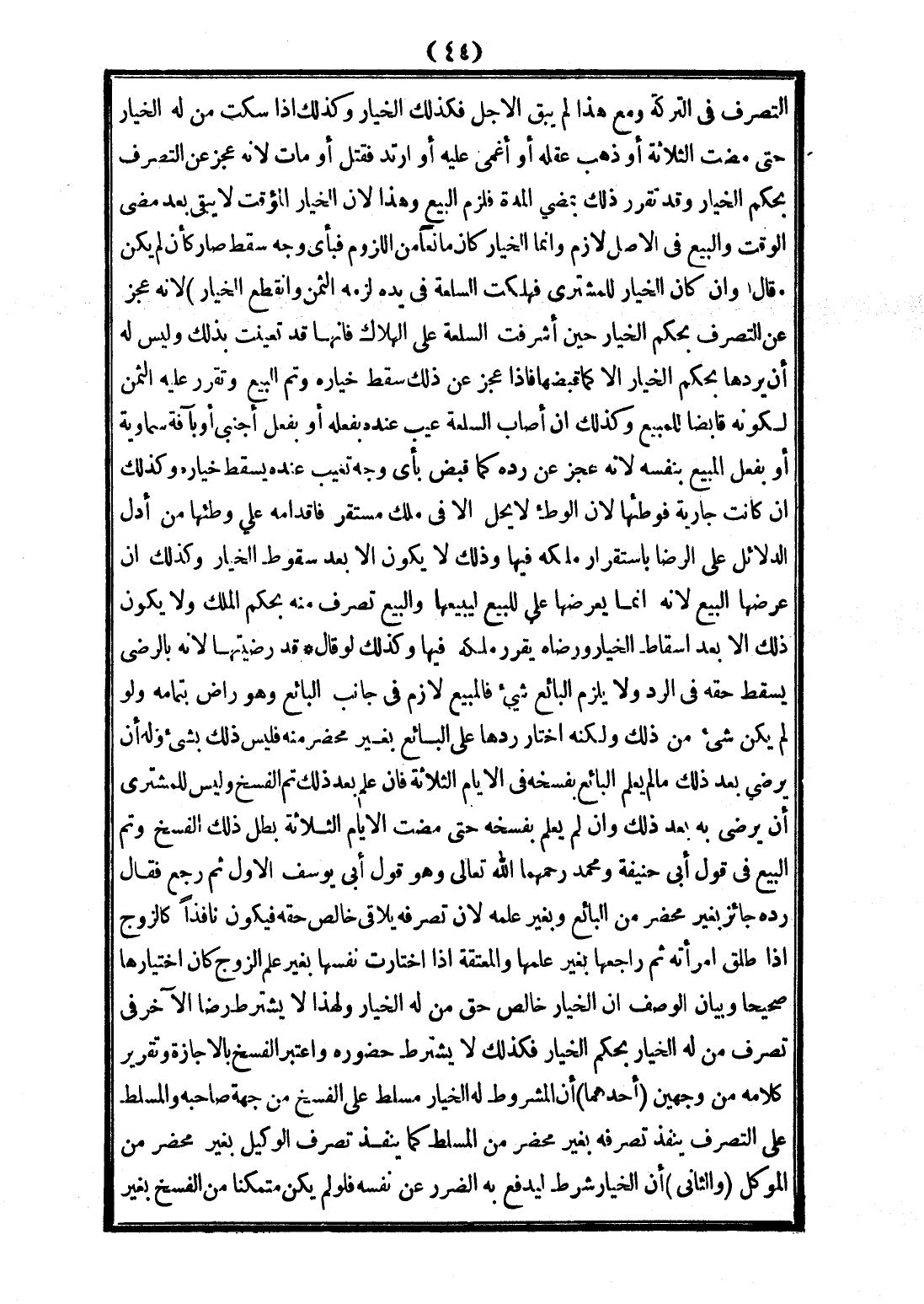 التَّصَرُّفِ فِي التَّرِكَةِ وَمَعَ هَذَا لَمْ يَبْقَ الْأَجَلُ فَكَذَلِكَ الْخِيَارُ.