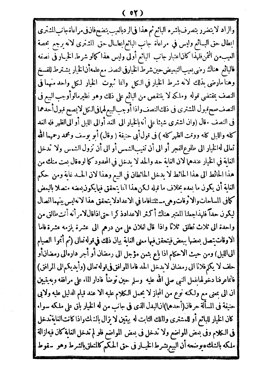 وَالرَّادُّ لَا يَتَضَرَّرُ بِتَصَرُّفٍ بَاشَرَهُ الْبَائِعُ ثُمَّ هَذَا فِي الرَّدِّ بِالْعَيْبِ يَتَّضِحُ فَإِنَّ فِي مُرَاعَاةِ جَانِبِ الْمُشْتَرِي إبْطَالَ حَقِّ الْبَائِعِ، وَلَيْسَ فِي مُرَاعَاةِ جَانِبِ الْبَائِعِ إبْطَالُ حَقِّ الْمُشْتَرِي؛ لِأَنَّهُ يَرْجِعُ بِحِصَّةِ الْعَيْبِ مِنْ الثَّمَنِ فَلِهَذَا كَانَ اعْتِبَارُ جَانِبِ الْبَائِعِ أَوْلَى، وَلَيْسَ هَذَا كَمَا لَوْ شَرَطَ الْخِيَارَ فِي نِصْفِهِ فَالْبَائِعُ هُنَاكَ رَضِيَ بِعَيْبِ التَّبْعِيضِ حِينَ شَرَطَ الْخِيَارَ فِي النِّصْفِ مَعَ عِلْمِهِ أَنَّ الْخِيَارَ يُشْتَرَطُ لِلْفَسْخِ وَهُنَا مَا رَضِيَ بِذَلِكَ؛ لِأَنَّهُ شَرَطَ الْخِيَارَ فِي الْكُلِّ، وَإِنَّمَا ثُبُوتُ الْخِيَارِ لِكُلِّ وَاحِدٍ مِنْهُمَا فِي النِّصْفِ بِمُقْتَضَى قَوْلِهِ، وَمِلْكُهُ لَا يُنْتَقَصُ مِنْ الْبَائِعِ عَلَى ذَلِكَ وَهُوَ نَظِيرُ مَا لَوْ أَوْجَبَ الْبَيْعَ فِي النِّصْفِ صَحَّ قَبُولُ الْمُشْتَرِي فِي ذَلِكَ النِّصْفِ وَإِذَا أَوْجَبَ الْبَيْعَ لَهُمَا فِي الْكُلِّ لَا يَصِحُّ قَبُولُ أَحَدِهِمَا فِي النِّصْفِ قَالَ: وَإِنْ اشْتَرَى شَيْئًا عَلَى أَنَّهُ بِالْخِيَارِ إلَى الْغَدِ أَوْ إلَى اللَّيْلِ أَوْ إلَى الظُّهْرِ فَلَهُ الْغَدُ كُلُّهُ وَاللَّيْلُ كُلُّهُ وَوَقْتُ الظُّهْرِ كُلُّهُ فِي قَوْلِ أَبِي حَنِيفَةَ، وَقَالَ أَبُو يُوسُفَ وَمُحَمَّدٌ - رَحِمَهُمَا اللَّهُ تَعَالَى - لَهُ الْخِيَارُ إلَى طُلُوعِ الْفَجْرِ أَوْ إلَى أَنْ تَغِيبَ الشَّمْسُ أَوْ إلَى أَنْ تَزُولَ الشَّمْسُ وَلَا تَدْخُلُ الْغَايَةُ فِي الْخِيَارِ عِنْدَهُمَا؛ لِأَنَّ الْغَايَةَ حَدٌّ وَالْحَدُّ لَا يَدْخُلُ فِي الْحُدُودِ كَمَا لَوْ قَالَ بِعْتُ مِنْكَ مِنْ هَذَا الْحَائِطِ إلَى هَذَا الْحَائِطِ لَا يَدْخُلُ الْحَائِطَانِ فِي الْبَيْعِ، وَهَذَا لِأَنَّ الْحَدَّ غَايَةٌ وَمِنْ حُكْمِ الْغَايَةِ أَنْ يَكُونَ مَا بَعْدَهُ بِخِلَافِ مَا قَبْلَهُ لَكِنَّ هَذَا إنَّمَا يَتَحَقَّقُ فِيمَا يَكُونُ بَعْضُهُ مُتَّصِلًا بِالْبَعْضِ كَمَا فِي الْمِسَاحَاتِ وَالْأَوْقَاتِ وَهِيَ مَسْأَلَتُنَا فَأَمَّا فِي الْأَعْدَادِ لَا يَتَحَقَّقُ هَذَا؛ لِأَنَّهُ لَيْسَ بَيْنَهُمَا اتِّصَالٌ لِيَكُونَ حَدًّا فَلِهَذَا جَعَلْنَا الْمُعْتَبَرَ هُنَاكَ أَكْثَرَ الْأَعْدَادِ ذِكْرًا حَتَّى إذَا.