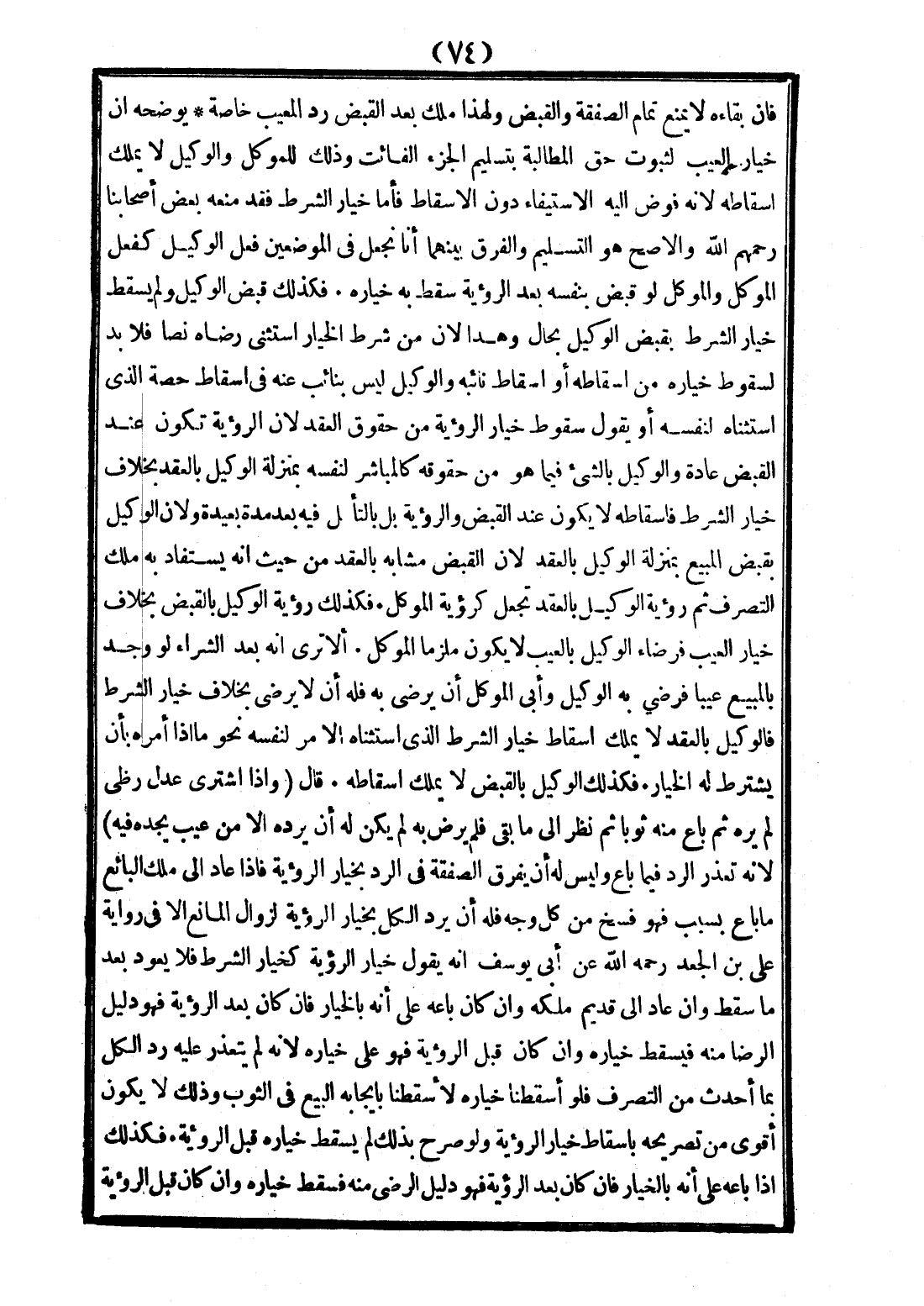 قَالَ: وَإِذَا اشْتَرَى عَدْلَ زُطِّيٍّ لَمْ يَرَهُ ثُمَّ بَاعَ مِنْهُ ثَوْبًا ثُمَّ نَظَرَ إلَى مَا بَقِيَ فَلَمْ يَرْضَ بِهِ لَمْ يَكُنْ لَهُ أَنْ يَرُدَّهُ إلَّا مِنْ عَيْبٍ يَجِدُهُ فِيهِ؛ لِأَنَّهُ تَعَذَّرَ الرَّدُّ فِيمَا بَاعَ وَلَيْسَ لَهُ أَنْ يُفَرِّقَ الصَّفْقَةَ فِي الرَّدِّ بِخِيَارِ الرُّؤْيَةِ فَإِذَا عَادَ إلَى مِلْكِ الْبَائِعِ مَا بَاعَ بِسَبَبٍ فَهُوَ فَسْخٌ مِنْ كُلِّ وَجْهٍ فَلَهُ أَنْ يَرُدَّ الْكُلَّ بِخِيَارِ الرُّؤْيَةِ لِزَوَالِ الْمَانِعِ إلَّا فِي رِوَايَةِ عَلِيِّ بْنِ الْجَعْدِ - رَحِمَهُ اللَّهُ - عَنْ أَبِي يُوسُفَ أَنَّهُ يَقُولُ: خِيَارُ الرُّؤْيَةِ كَخِيَارِ الشَّرْطِ فَلَا يَعُودُ بَعْدَمَا سَقَطَ، وَإِنْ عَادَ إلَى قَدِيمِ مِلْكِهِ وَإِنْ كَانَ بَاعَهُ عَلَى أَنَّهُ بِالْخِيَارِ، فَإِنْ كَانَ بَعْدَ الرُّؤْيَةِ فَهُوَ دَلِيلُ الرِّضَا مِنْهُ فَيَسْقُطُ خِيَارُهُ، وَإِنْ كَانَ قَبْلَ الرُّؤْيَةِ فَهُوَ عَلَى خِيَارِهِ؛ لِأَنَّهُ لَمْ يَتَعَذَّرْ عَلَيْهِ رَدُّ الْكُلِّ بِمَا أَحْدَثَ مِنْ التَّصَرُّفِ فَلَوْ أَسْقَطْنَا خِيَارَهُ لَأَسْقَطْنَا بِإِيجَابِهِ الْبَيْعَ فِي الثَّوْبِ وَذَلِكَ لَا يَكُونُ أَقْوَى مِنْ تَصْرِيحِهِ بِإِسْقَاطِ خِيَارِ الرُّؤْيَةِ، وَلَوْ صَرَّحَ بِذَلِكَ لَمْ يَسْقُطْ خِيَارُهُ قَبْلَ الرُّؤْيَةِ فَكَذَلِكَ إذَا بَاعَهُ عَلَى أَنَّهُ بِالْخِيَارِ، فَإِنْ كَانَ بَعْدَ الرُّؤْيَةِ فَهُوَ دَلِيلُ الرِّضَا مِنْهُ فَسَقَطَ خِيَارُهُ.
