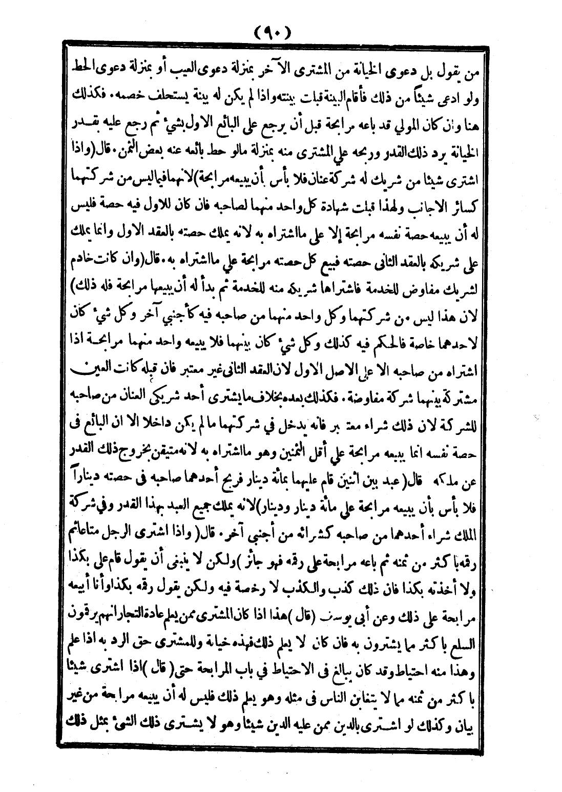 قَالَ: عَبْدٌ بَيْنَ اثْنَيْنِ قَامَ عَلَيْهِمَا بِمِائَةِ دِينَارٍ فَرَبِحَ أَحَدُهُمَا صَاحِبَهُ فِي حِصَّتِهِ دِينَارًا فَلَا بَأْسَ بِأَنْ يَبِيعَهُ مُرَابَحَةً عَلَى مِائَةِ دِينَارٍ وَدِينَارٍ؛ لِأَنَّهُ يَمْلِكُ جَمِيعَ الْعَبْدِ بِهَذَا الْقَدْرِ وَفِي شَرِكَةِ الْمِلْكِ شِرَاءُ أَحَدِهِمَا مِنْ صَاحِبِهِ كَشِرَائِهِ مِنْ أَجْنَبِيٍّ آخَرَ
