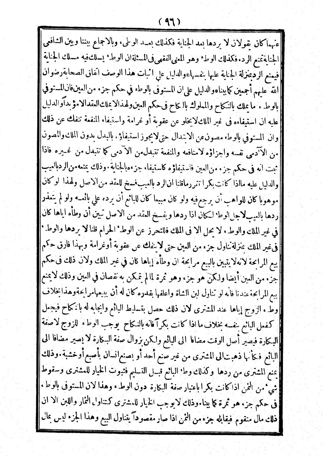 - رَضِيَ اللَّهُ عَنْهُمَا - كَانَ يَقُولَانِ: لَا يَرُدُّهَا بَعْدَ الْجِنَايَةِ فَكَذَلِكَ بَعْدَ الْوَطْءِ وَبِالْإِجْمَاعِ بَيْنَنَا وَبَيْنَ الشَّافِعِيِّ الْجِنَايَةُ تَمْنَعُ الرَّدَّ فَكَذَلِكَ الْوَطْءُ وَهُوَ الْمَعْنَى الْفِقْهِيُّ فِي الْمَسْأَلَةِ أَنَّ الْوَطْءَ يَسْلُكُ فِيهِ مَسْلَكَ الْجِنَايَةِ فَيَمْنَعُ الرَّدَّ بِمَنْزِلَةِ الْجِنَايَةِ عَلَيْهَا بِنَفْسِهَا، وَالدَّلِيلُ عَلَى إثْبَاتِ هَذَا الْوَصْفِ اتِّفَاقُ الصَّحَابَةِ - رِضْوَانُ اللَّهِ عَلَيْهِمْ أَجْمَعِينَ - كَمَا بَيَّنَّا.
