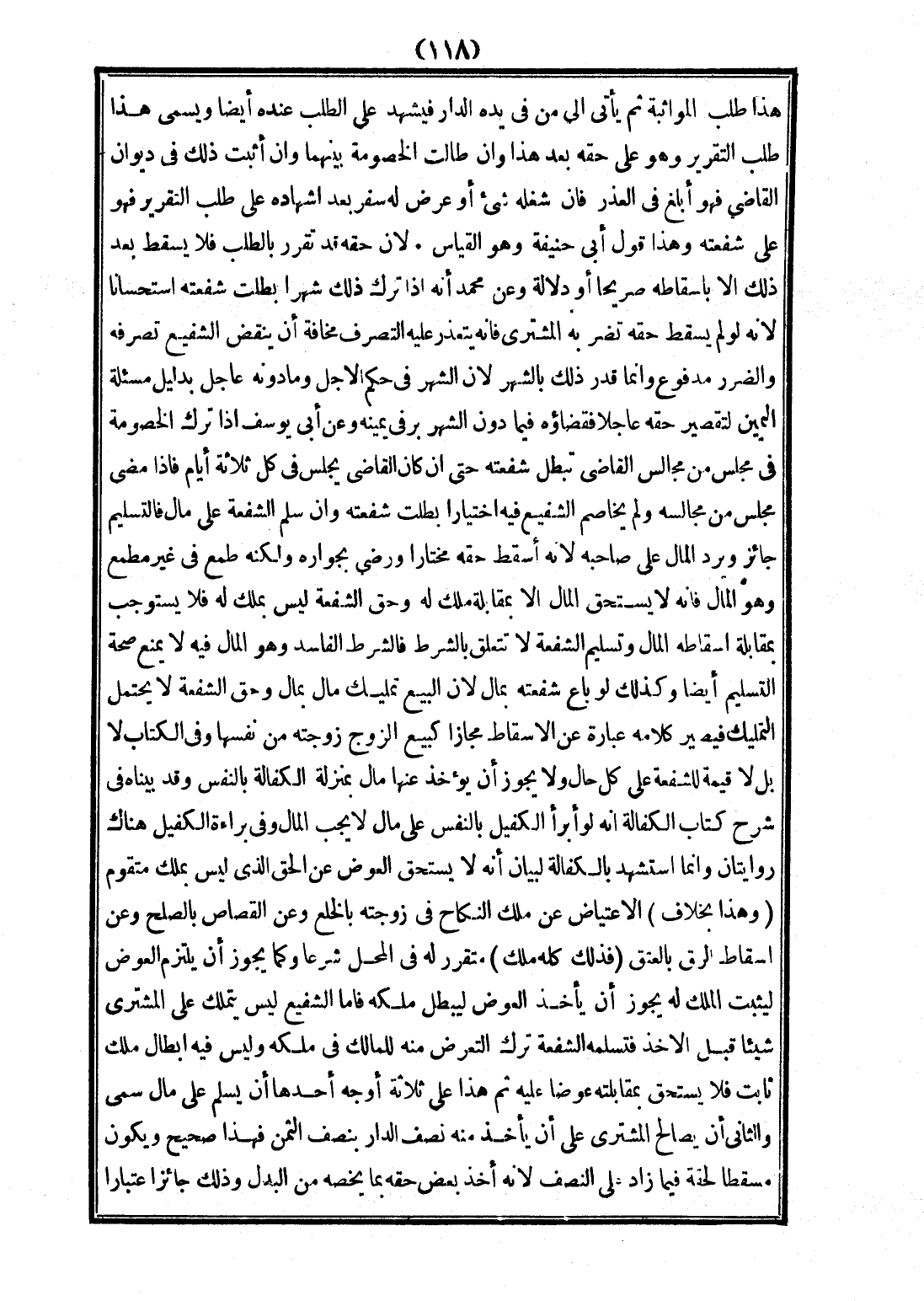 وَعَنْ أَبِي يُوسُفَ إذَا تَرَكَ الْخُصُومَةَ فِي مَجْلِسٍ مِنْ مَجَالِسِ الْقَاضِي تَبْطُلُ شُفْعَتُهُ حَتَّى إنْ كَانَ الْقَاضِي يَجْلِسُ فِي كُلِّ ثَلَاثَةِ أَيَّامٍ، فَإِذَا مَضَى مَجْلِسٌ مِنْ مَجَالِسِهِ وَلَمْ يُخَاصِمْ الشَّفِيعَ فِيهِ اخْتِيَارًا بَطَلَتْ شُفْعَتُهُ، وَإِنْ سَلَّمَ الشُّفْعَةَ عَلَى مَالٍ، فَالتَّسْلِيمُ جَائِزٌ وَيَرُدَّ الْمَالَ عَلَى صَاحِبِهِ؛ لِأَنَّهُ أَسْقَطَ حَقَّهُ مُخْتَارًا وَرَضِيَ بِجِوَارِهِ، وَلَكِنَّهُ طَمِعَ فِي غَيْرِ مَطْمَعٍ وَهُوَ الْمَالُ، فَإِنَّهُ لَا يَسْتَحِقُّ الْمَالَ، إلَّا بِمُقَابِلَةِ مِلْكٍ لَهُ وَحَقُّ الشُّفْعَةِ لَيْسَ بِمُلْكٍ لَهُ، فَلَا يَسْتَوْجِبُ بِمُقَابِلَةِ إسْقَاطِهِ الْمَالَ وَتَسْلِيمُ الشُّفْعَةِ لَا تَتَعَلَّقُ بِالشَّرْطِ، فَالشَّرْطُ الْفَاسِدُ وَهُوَ الْمَالُ فِيهِ لَا يَمْنَعُ صِحَّةَ التَّسْلِيمِ أَيْضًا، وَكَذَلِكَ لَوْ بَاعَ شُفْعَتَهُ بِمَالٍ؛ لِأَنَّ الْبَيْعَ تَمْلِيكُ مَالٍ بِمَالٍ وَحَقُّ الشُّفْعَةِ لَا يَحْتَمِلُ التَّمْلِيكَ فَيَصِيرُ كَلَامُهُ عِبَارَةً عَنْ الْإِسْقَاطِ مَجَازًا كَبَيْعِ الزَّوْجِ زَوْجَتَهُ مِنْ نَفْسِهَا وَفِي الْكِتَابِ لَا، بَلْ لَا قِيمَةَ لِلشُّفْعَةِ عَلَى كُلِّ حَالٍ، وَلَا يَجُوزُ أَنْ يُؤْخَذَ عَنْهَا مَالٌ بِمَنْزِلَةِ الْكَفَالَةِ بِالنَّفْسِ، وَقَدْ بَيَّنَّاهُ فِي شَرْحِ كِتَابِ الْكَفَالَةِ أَنَّهُ لَوْ أَبْرَأَ الْكَفِيلَ بِالنَّفْسِ عَلَى مَالِ لَا يَجِبُ الْمَالُ وَفِي بَرَاءَةِ الْكَفِيلِ هُنَاكَ رِوَايَتَانِ وَإِنَّمَا اسْتَشْهَدَ بِالْكَفَالَةِ لِبَيَانِ أَنَّهُ لَا يَسْتَحِقُّ الْعِوَضَ عَنْ الْحَقِّ الَّذِي لَيْسَ بِمَلْكٍ مُتَقَوِّمٍ (وَهَذَا بِخِلَافِ) الِاعْتِيَاضِ عَنْ مِلْكِ النِّكَاحِ فِي زَوْجَتِهِ بِالْخُلْعِ، وَعَنْ الْقِصَاصِ بِالصُّلْحِ، وَعَنْ إسْقَاطِ الرِّقِّ بِالْعِتْقِ (فَذَلِكَ كُلُّهُ مِلْكٌ) مُتَقَرِّرٌ لَهُ فِي الْمَحَلِّ شَرْعًا وَكَمَا يَجُوز أَنْ يَلْتَزِمَ الْعِوَضَ لِيُثْبِتَ الْمِلْكَ لَهُ يَجُوزُ أَنْ يَأْخُذَ الْعِوَضَ لِيُبْطِلَ مِلْكَهُ، فَأَمَّا الشَّفِيعُ لَيْسَ يَتَمَلَّكُ عَلَى الْمُشْتَرِي شَيْئًا قَبْلَ الْأَخْذِ فَتَسَلُّمِهِ الشُّفْعَةَ تَرْكُ التَّعَرُّضِ مِنْهُ لِلْمَالِكِ فِي مِلْكِهِ، وَلَيْسَ فِيهِ إبْطَالُ مِلْكٍ ثَابِتٍ، فَلَا يَسْتَحِقُّ بِمُقَابِلَتِهِ عِوَضًا عَلَيْهِ، ثُمَّ هَذَا عَلَى ثَلَاثَةِ أَوْجُهٍ أَحَدُهَا أَنْ يُسَلِّمَ عَلَى مَالٍ سُمِّيَ، وَالثَّانِي أَنْ يُصَالِحَ الْمُشْتَرِيَ عَلَى أَنْ يَأْخُذَ مِنْهُ نِصْفَ الدَّارِ بِنِصْفِ الثَّمَنِ فَهَذَا صَحِيحٌ وَيَكُونُ مُسْقِطًا لِحَقِّهِ فِيمَا زَادَ عَلَى النِّصْفِ؛ لِأَنَّهُ أَخَذَ بَعْضَ حَقِّهِ بِمَا يَخُصُّهُ مِنْ الْبَدَلِ، وَذَلِكَ جَائِزٌ اعْتِبَارًا