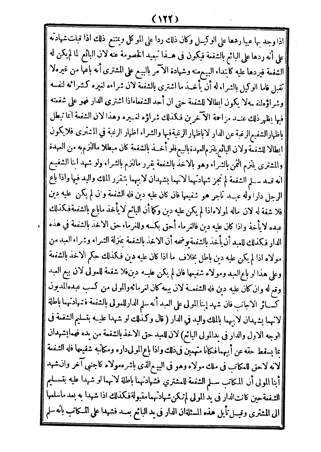 وَإِذَا بَاعَ الرَّجُلُ دَارًا وَلَهُ عَبْدٌ تَاجِرٌ هُوَ شَفِيعُهَا، فَإِنْ كَانَ عَلَيْهِ دَيْنٌ فَلَهُ الشُّفْعَةُ، وَإِنْ لَمْ يَكُنْ عَلَيْهِ دَيْنٌ، فَلَا شُفْعَةَ لَهُ؛ لِأَنَّ مَالَهُ لِمَوْلَاهُ إذَا لَمْ يَكُنْ عَلَيْهِ دَيْنٌ وَكَمَا أَنَّ الْبَائِعَ لَا يَأْخُذُ مَا بَاعَ بِالشُّفْعَةِ فَكَذَلِكَ عَبْدُهُ لَا يَأْخُذُ وَإِذَا كَانَ عَلَيْهِ دَيْنٌ، فَالْغُرَمَاءُ أَحَقُّ بِكَسْبِهِ وَلِلْغُرَمَاءِ حَقُّ الْأَخْذِ بِالشُّفْعَةِ فِي هَذِهِ الدَّارِ فَكَذَلِكَ لِلْعَبْدِ أَنْ يَأْخُذَ بِالشُّفْعَةِ يُوَضِّحُهُ أَنَّ الْأَخْذَ بِالشُّفْعَةِ بِمَنْزِلَةِ الشِّرَاءِ وَشِرَاءُ الْعَبْدِ مِنْ مَوْلَاهُ إذَا لَمْ يَكُنْ عَلَيْهِ دَيْنٌ بَاطِلٌ بِخِلَافِ مَا إذَا كَانَ عَلَيْهِ دَيْنٌ فَكَذَلِكَ حُكْمُ الْأَخْذِ بِالشُّفْعَةِ وَعَلَى هَذَا لَوْ بَاعَ الْعَبْدُ وَمَوْلَاهُ شَفِيعُهَا، فَإِنْ لَمْ يَكُنْ عَلَيْهِ دَيْنٌ، فَلَا شُفْعَةَ لِلْمَوْلَى؛ لِأَنَّ بَيْعَ الْعَبْدِ وَقَعَ لَهُ، وَإِنْ كَانَ عَلَيْهِ دَيْنٌ فَلَهُ الشُّفْعَةُ؛ لِأَنَّ بَيْعَهُ كَانَ لِغُرَمَائِهِ، وَالْمَوْلَى مِنْ كَسْبِ عَبْدِهِ الْمَدْيُونِ كَسَائِرِ الْأَجَانِبِ، فَإِنْ شَهِدَ ابْنَا الْمَوْلَى عَلَى الْعَبْدِ أَنَّهُ سَلَّمَ الدَّارَ لِلْمَوْلَى بِالشُّفْعَةِ فَشَهَادَتُهُمَا بَاطِلَةٌ؛ لِأَنَّهُمَا يَشْهَدَانِ لِأَبِيهِمَا بِالْمِلْكِ، وَالْيَدِ فِي الدَّارِ (قَالَ: وَكَذَلِكَ لَوْ شَهِدَا عَلَيْهِ بِتَسْلِيمِ الشُّفْعَةِ فِي الْوَجْهِ الْأَوَّلِ، وَالدَّارُ فِي يَدِ الْمَوْلَى الْبَائِعِ)؛ لِأَنَّ لِلْعَبْدِ حَقَّ الْأَخْذِ بِالشُّفْعَةِ مِنْ يَدِهِ فَهُمَا يَشْهَدَانِ بِمَا يُسْقِطُ حَقَّهُ عَنْ أَبِيهِمَا فَكَانَا مُتَّهَمَيْنِ فِي ذَلِكَ.