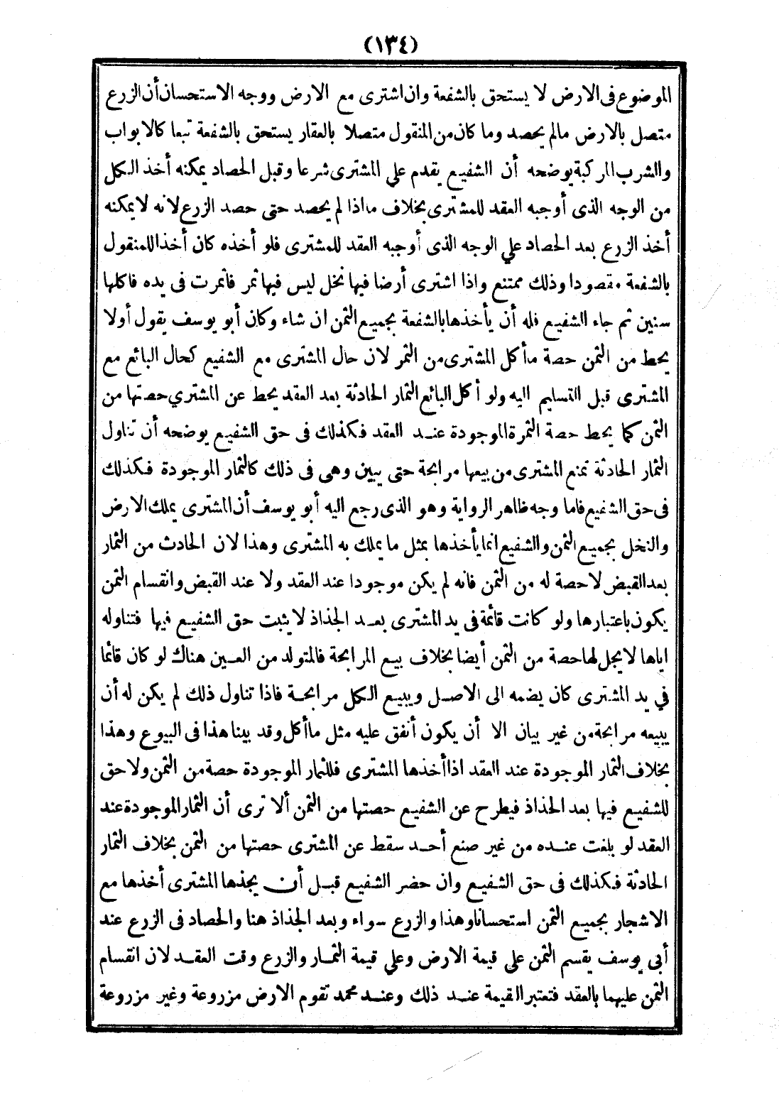 وَإِذَا اشْتَرَى أَرْضًا فِيهَا نَخْلٌ لَيْسَ فِيهَا ثَمَرٌ فَأَثْمَرَتْ فِي يَدِهِ فَأَكَلَهَا سِنِينَ، ثُمَّ جَاءَ الشَّفِيعُ أَنْ يَأْخُذَهَا بِالشُّفْعَةِ بِجَمِيعِ الثَّمَنِ إنْ شَاءَ وَكَانَ أَبُو يُوسُفَ يَقُولُ: أَوَّلًا يَحُطُّ مِنْ الثَّمَنِ حِصَّةَ مَا أَكَلَ الْمُشْتَرِي مِنْ الثَّمَرِ؛ لِأَنَّ حَالَ الْمُشْتَرِي مَعَ الشَّفِيعِ كَحَالِ الْبَائِعِ مَعَ الْمُشْتَرِي قَبْلَ التَّسْلِيمِ إلَيْهِ، وَلَوْ أَكَلَ الْبَائِعُ الثِّمَارَ الْحَادِثَةَ بَعْدَ الْعَقْدِ يَحُطُّ عَنْ الْمُشْتَرِي حِصَّتَهَا مِنْ الثَّمَنِ كَمَا يَحُطُّ حِصَّةَ الثَّمَرَةِ الْمَوْجُودَةِ عِنْدَ الْعَقْدِ فَكَذَلِكَ فِي حَقِّ الشَّفِيعِ يُوَضِّحُهُ أَنَّ تَنَاوُلَ الثِّمَارِ الْحَادِثَةِ تَمْنَعُ الْمُشْتَرِيَ مِنْ بَيْعِهَا مُرَابَحَةً حَتَّى يُبَيِّنَ، وَهِيَ فِي ذَلِكَ، كَالثِّمَارِ الْمَوْجُودَةِ فَكَذَلِكَ فِي حَقِّ الشَّفِيعِ، فَأَمَّا وَجْهُ ظَاهِرِ الرِّوَايَةِ، وَهُوَ الَّذِي رَجَعَ إلَيْهِ أَبُو يُوسُفَ أَنَّ الْمُشْتَرِيَ يَمْلِكُ الْأَرْضَ، وَالنَّخْلَ بِجَمِيعِ الثَّمَنِ، وَالشَّفِيعُ إنَّمَا يَأْخُذُهَا بِمِثْلِ مَا يَمْلِكُ بِهِ الْمُشْتَرِي، وَهَذَا؛ لِأَنَّ الْحَادِثَ مِنْ الثِّمَارِ بَعْدَ الْقَبْضِ لَا حِصَّةَ لَهُ مِنْ الثَّمَنِ، فَإِنَّهُ لَمْ يَكُنْ مَوْجُودًا عِنْدَ الْعَقْدِ، وَلَا عِنْدَ الْقَبْضِ