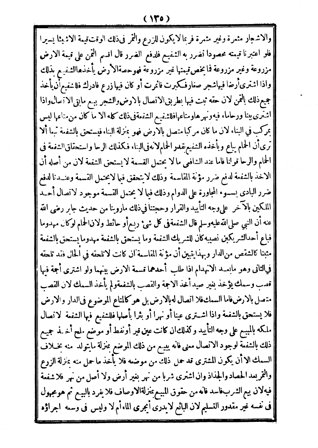 وَالْأَشْجَارُ مُثْمِرَةً وَغَيْرَ مُثْمِرَةٍ، فَرُبَّمَا لَا يَكُونُ لِلزَّرْعِ، وَالثَّمَرِ فِي ذَلِكَ الْوَقْتِ قِيمَةٌ، إلَّا شَيْئًا يَسِيرًا فَلَوْ اعْتَبَرْنَا قِيمَتَهُ مَحْصُودًا تَضَرَّرَ بِهِ الشَّفِيعُ فَلِدَفْعِ الضَّرَرِ قَالَ: أُقَسِّمُ الثَّمَنَ عَلَى قِيمَةِ الْأَرْضِ مَزْرُوعَةً وَغَيْرَ مَزْرُوعَةٍ فَمَا يَخْتَصُّ قِيمَتَهَا غَيْرَ مَزْرُوعَةٍ، فَهُوَ حِصَّةُ الْأَرْضِ يَأْخُذُهَا الشَّفِيعُ بِذَلِكَ.