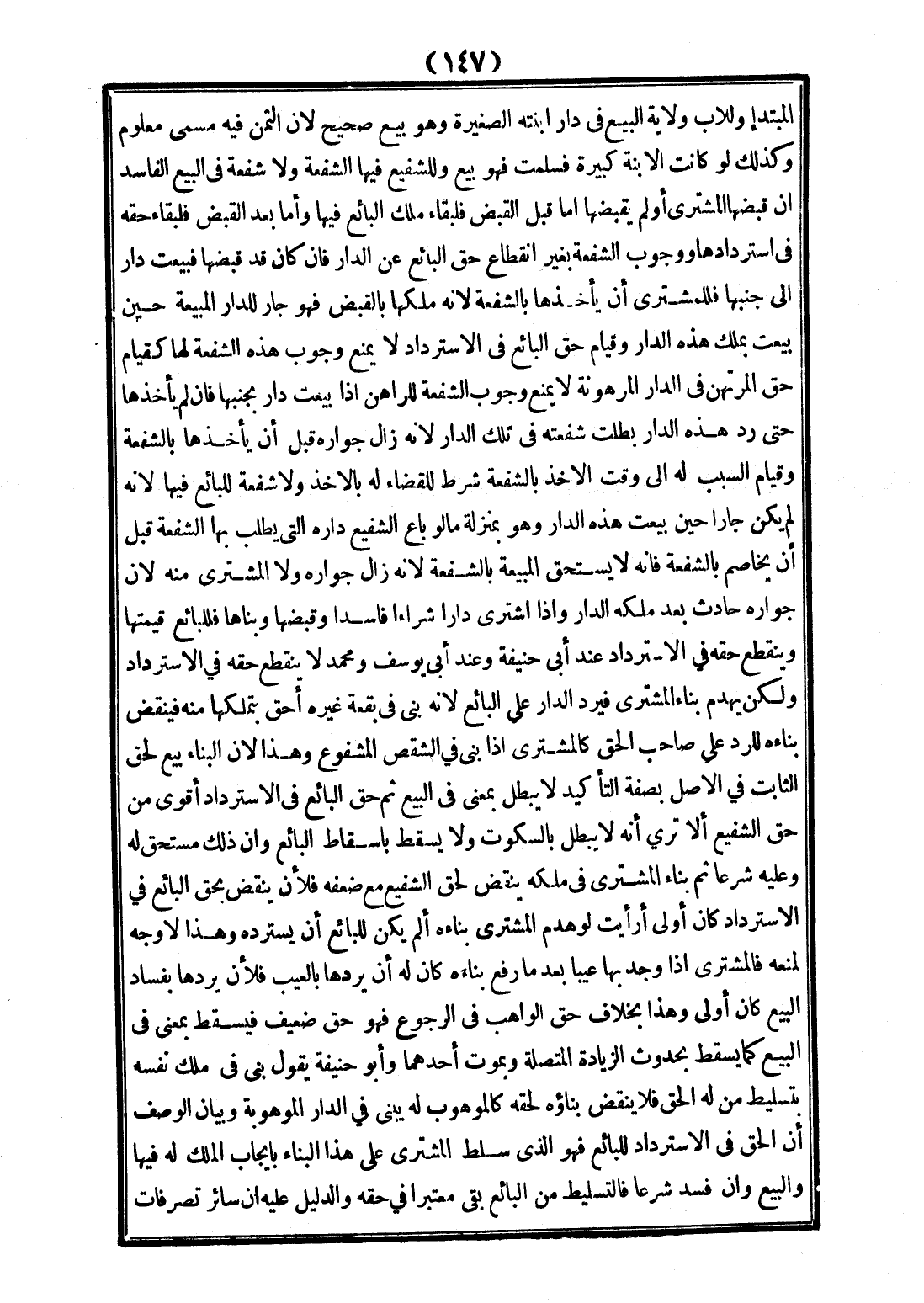 الْمُبْتَدِئِ وَلِلْأَبِ وِلَايَةُ الْبَيْعِ فِي دَارِ ابْنَتِهِ الصَّغِيرَةِ، وَهُوَ بَيْعٌ صَحِيحٌ؛ لِأَنَّ الثَّمَنَ فِيهِ مُسَمًّى مَعْلُومًا، وَكَذَلِكَ لَوْ كَانَتْ الِابْنَةُ كَبِيرَةً فَسَلَّمَتْ، فَهُوَ بَيْعٌ وَلِلشَّفِيعِ فِيهَا الشُّفْعَةُ، وَلَا شُفْعَةَ فِي الْبَيْعِ الْفَاسِدِ إنْ قَبَضَهَا الْمُشْتَرِي، أَوْ لَمْ يَقْبِضْهَا أَمَّا قَبْلَ الْقَبْضِ فَلِبَقَاءِ مِلْكِ الْبَائِعِ فِيهَا وَأَمَّا بَعْدَ الْقَبْضِ فَلِبَقَاءِ حَقِّهِ فِي اسْتِرْدَادِهَا. وَوُجُوبُ الشُّفْعَةِ بِغَيْرِ انْقِطَاعِ حَقِّ الْبَائِعِ عَنْ الدَّارِ، فَإِنْ كَانَ قَدْ قَبَضَهَا فَبِيعَتْ دَارٌ إلَى جَنْبِهَا فَلِلْمُشْتَرِي أَنْ يَأْخُذَهَا بِالشُّفْعَةِ؛ لِأَنَّهُ مَلَكهَا بِالْقَبْضِ، فَهُوَ جَارٌ لِلدَّارِ الْمَبِيعَةِ حِينَ بِيعَتْ بِمِلْكِ هَذِهِ الدَّارِ وَقِيَامُ حَقِّ الْبَائِعِ فِي الِاسْتِرْدَادِ لَا يَمْنَعُ وُجُوبَ هَذِهِ الشُّفْعَةِ لَهَا كَقِيَامِ حَقِّ الْمُرْتَهِنِ فِي الدَّارِ الْمَرْهُونَةِ لَا يَمْنَعُ وُجُوبَ الشُّفْعَةِ لِلرَّاهِنِ إذَا بِيعَتْ دَارٌ بِجَنْبِهَا، فَإِنْ لَمْ يَأْخُذْهَا حَتَّى رَدَّ هَذِهِ الدَّارَ بَطَلَتْ شُفْعَتُهُ فِي تِلْكَ الدَّارِ؛ لِأَنَّهُ زَالَ جِوَارُهُ قَبْلَ أَنْ يَأْخُذَهَا بِالشُّفْعَةِ وَقِيَامُ السَّبَبِ لَهُ إلَى وَقْتِ الْأَخْذِ بِالشُّفْعَةِ شَرْطٌ لِلْقَضَاءِ لَهُ بِالْأَخْذِ، وَلَا شُفْعَةَ لِلْبَائِعِ فِيهَا؛ لِأَنَّهُ لَمْ يَكُنْ جَارًا حِينَ بِيعَتْ هَذِهِ الدَّارُ، وَهُوَ بِمَنْزِلَةِ مَا لَوْ بَاعَ الشَّفِيعُ دَارِهِ الَّتِي يَطْلُبُ بِهَا الشُّفْعَةَ قَبْلَ أَنْ يُخَاصِمَ بِالشُّفْعَةِ، فَإِنَّهُ لَا يَسْتَحِقُّ الْمَبِيعَةَ بِالشُّفْعَةِ؛ لِأَنَّهُ زَالَ جِوَارُهُ، وَلَا الْمُشْتَرِي مِنْهُ؛ لِأَنَّ جِوَارَهُ حَادِثٌ بَعْدَ مِلْكِهِ الدَّارَ.