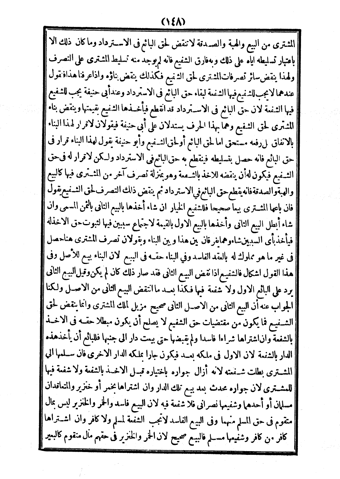 الْمُشْتَرِي مِنْ الْبَيْعِ، وَالْهِبَةِ، وَالصَّدَقَةِ لَا تُنْقَضُ لِحَقِّ الْبَائِعِ فِي الِاسْتِرْدَادِ وَمَا كَانَ ذَلِكَ إلَّا بِاعْتِبَارِ تَسْلِيطِهِ إيَّاهُ عَلَى ذَلِكَ، وَبِهِ فَارَقَ الشَّفِيعَ، فَإِنَّهُ لَمْ يُوجَدْ مِنْهُ تَسْلِيطُ الْمُشْتَرِي عَلَى التَّصَرُّفِ؛ وَلِهَذَا يُنْقَضُ سَائِرُ تَصَرُّفَاتِ الْمُشْتَرِي لِحَقِّ الشَّفِيعِ فَكَذَلِكَ يُنْقَضُ بِنَاؤُهُ وَإِذَا عَرَفْنَا هَذَا، فَنَقُولُ: عِنْدَهُمَا لَا يَجِبُ لِلشَّفِيعِ فِيهَا الشُّفْعَةُ لِبَقَاءِ حَقِّ الْبَائِعِ فِي الِاسْتِرْدَادِ وَعِنْدَ أَبِي حَنِيفَةَ يَجِبُ لِلشَّفِيعِ فِيهَا الشُّفْعَةُ؛ لِأَنَّ حَقَّ الْبَائِعِ فِي الِاسْتِرْدَادِ قَدْ انْقَطَعَ فَيَأْخُذُهَا الشَّفِيعُ بِقِيمَتِهَا وَيُنْقَضُ بِنَاءُ الْمُشْتَرِي لِحَقِّ الشَّفِيعِ وَهُمَا بِهَذَا الْحَرْفِ يَسْتَدِلَّانِ عَلَى أَبِي حَنِيفَةَ فَيَقُولَانِ: لَا قَرَارَ لِهَذَا الْبِنَاءِ بِالِاتِّفَاقِ، بَلْ رَفْعُهُ مُسْتَحَقٌّ إمَّا لَحِقَ الْبَائِعِ، أَوْ لِحَقِّ الشَّفِيعِ وَأَبُو حَنِيفَةَ يَقُولُ: لِهَذَا الْبِنَاءِ قَرَارٌ فِي حَقِّ الْبَائِعِ، فَإِنَّهُ حَصَلَ بِتَسْلِيطٍ فَيَنْقَطِعُ بِهِ حَقُّ الْبَائِعِ فِي الِاسْتِرْدَادِ، وَلَكِنْ لَا قَرَارَ لَهُ فِي حَقِّ الشَّفِيعِ، فَيَكُونُ لَهُ أَنْ يَنْقُضَهُ لِلْأَخْذِ بِالشُّفْعَةِ، وَهُوَ بِمَنْزِلَةِ تَصَرُّفٍ آخَرَ مِنْ الْمُشْتَرِي فِيهَا، كَالْبَيْعِ، وَالْهِبَةِ، وَالصَّدَقَةِ، فَإِنَّهُ يَقْطَعُ حَقَّ الْبَائِعِ فِي الِاسْتِرْدَادِ، ثُمَّ يُنْقَضُ ذَلِكَ التَّصَرُّفُ لِحَقِّ الشَّفِيعِ يَقُولُ: فَإِنْ بَاعَهَا الْمُشْتَرِي بَيْعًا صَحِيحًا فَلِلشَّفِيعِ الْخِيَارُ إنْ شَاءَ أَخَذَهَا بِالْبَيْعِ الثَّانِي بِالثَّمَنِ الْمُسَمَّى، وَإِنْ شَاءَ أَبْطَلَ الْبَيْعَ الثَّانِي وَأَخَذَهَا بِالْبَيْعِ الْأَوَّلِ بِالْقِيمَةِ لِاجْتِمَاعِ سَبَبَيْنِ فِيهَا لِثُبُوتِ حَقِّ الْأَخْذِ لَهُ، فَيَأْخُذُ بِأَيِّ السَّبَبَيْنِ شَاءَ، وَهُمَا يُفَرِّقَانِ بَيْنَ هَذَا وَبَيْنَ الْبِنَاءِ وَيَقُولَانِ: تَصَرُّفُ الْمُشْتَرِي هُنَا حَصَلَ فِي غَيْرِ مَا هُوَ مَمْلُوكٌ لَهُ بِالْعَقْدِ الْفَاسِدِ وَفِي الْبِنَاءِ حَقُّهُ فِي الْبَيْعِ؛ لِأَنَّ الْبِنَاءَ بَيْعٌ لِلْأَصْلِ وَفِي هَذَا الْقَوْلِ إشْكَالٌ، فَالشَّفِيعُ إذَا نَقَضَ الْبَيْعَ الثَّانِيَ، فَقَدْ صَارَ ذَلِكَ كَأَنْ لَمْ يَكُنْ وَقِيلَ الْبَيْعُ الثَّانِي يُرَدُّ عَلَى الْبَائِعِ الْأَوَّلِ، وَلَا شُفْعَةَ فِيهَا فَكَذَلِكَ بَعْدَ مَا اُنْتُقِضَ الْبَيْعُ الثَّانِي مِنْ الْأَصْلِ، وَلَكِنَّ الْجَوَابَ عَنْهُ أَنَّ الْبَيْعَ الثَّانِيَ مِنْ الْأَصْلِ الثَّانِي صَحِيحٌ مُزِيلٌ لِمِلْكِ الْمُشْتَرِي، وَإِنَّمَا يُنْقَضُ لِحَقِّ الشَّفِيعِ فَمَا يَكُونُ مِنْ مُقْتَضَيَاتِ حَقِّ الشَّفِيعِ لَا يَصْلُحُ أَنْ يَكُونَ مُبْطِلًا حَقَّهُ فِي الْأَخْذِ بِالشُّفْعَةِ، وَإِنْ اشْتَرَاهَا شِرَاءً فَاسِدًا وَلَمْ يَقْبِضْهَا حَتَّى بِيعَتْ دَارٌ إلَى جَنْبِهَا فَلِلْبَائِعِ أَنْ يَأْخُذَ هَذِهِ الدَّارَ بِالشُّفْعَةِ؛ لِأَنَّ الْأَوَّلَ فِي مِلْكِهِ بُعْدٌ، فَيَكُونُ جَارًا بِمِلْكِهِ الدَّارَ الْأُخْرَى، فَإِنْ سَلَّمَهَا إلَى الْمُشْتَرِي بَطَلَتْ شُفْعَتُهُ؛ لِأَنَّهُ أَزَالَ جِوَارَهُ بِاخْتِيَارِهِ قَبْلَ الْأَخْذِ بِالشُّفْعَةِ، وَلَا شُفْعَةَ فِيهَا لِلْمُشْتَرِي؛ لِأَنَّ جِوَارَهُ مُحْدَثٌ بَعْدَ بَيْعِ تِلْكَ الدَّارِ.