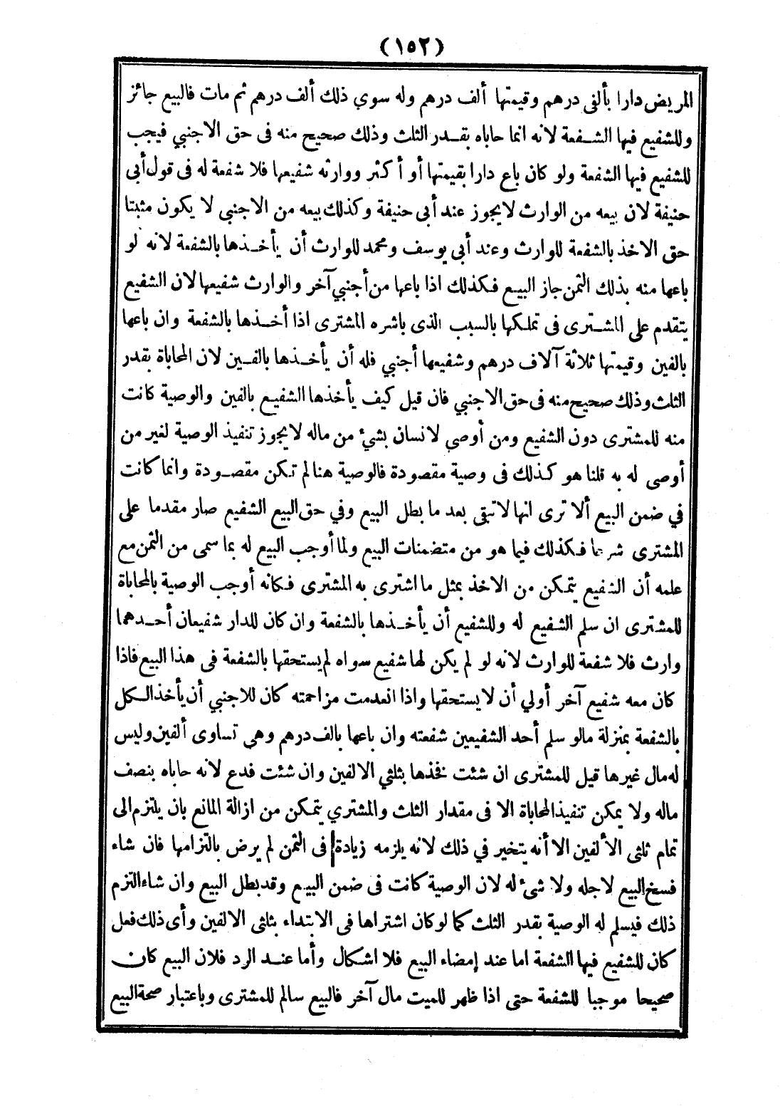 وَإِنْ كَانَ لِلدَّارِ شَفِيعَانِ أَحَدُهُمَا وَارِثٌ، فَلَا شُفْعَةَ لِلْوَارِثِ؛ لِأَنَّهُ لَوْ لَمْ يَكُنْ لَهَا شَفِيعٌ سِوَاهُ لَمْ يَسْتَحِقَّهَا بِالشُّفْعَةِ فِي هَذَا الْبَيْعِ، فَإِذَا كَانَ مَعَهُ شَفِيعٌ آخَرُ أَوْلَى أَنْ لَا يَسْتَحِقَّهَا، وَإِذَا انْعَدَمَتْ مُزَاحَمَتُهُ كَانَ لِلْأَجْنَبِيِّ أَنْ يَأْخُذَ الْكُلَّ بِالشُّفْعَةِ بِمَنْزِلَةِ مَا لَوْ سَلَّمَ أَحَدُ الشَّفِيعِينَ شُفْعَتَهُ، وَإِنْ بَاعَهَا بِأَلْفِ دِرْهَمٍ وَهِيَ تُسَاوِي أَلْفَيْنِ، وَلَيْسَ لَهُ مَالٌ غَيْرُهَا قِيلَ لِلْمُشْتَرِي إنْ شِئْتَ فَخُذْهَا بِثُلُثَيْ الْأَلْفَيْنِ، وَإِنْ شِئْت فَدَعْ؛ لِأَنَّهُ حَابَاهُ بِنِصْفِ مَالِهِ، وَلَا يُمْكِنُ تَنْفِيذُ الْمُحَابَاةِ، إلَّا فِي مِقْدَارِ الثُّلُثِ، وَالْمُشْتَرِي يَتَمَكَّنُ مِنْ إزَالَةِ الْمَانِعِ بِأَنْ يَلْتَزِمَ إلَى تَمَامِ ثُلُثَيْ الْأَلْفَيْنِ، إلَّا أَنَّهُ يَتَخَيَّرُ فِي ذَلِكَ؛ لِأَنَّهُ يَلْزَمُهُ زِيَادَةٌ فِي الثَّمَنِ لَمْ يَرْضَ بِالْتِزَامِهَا، فَإِنْ شَاءَ فَسَخَ الْبَيْعَ لِأَجَلِهِ، وَلَا شَيْءَ لَهُ؛ لِأَنَّ الْوَصِيَّةَ كَانَتْ فِي ضِمْنِ الْبَيْعِ، وَقَدْ بَطَلَ الْبَيْعُ، وَإِنْ شَاءَ الْتَزَمَ ذَلِكَ فَيُسَلِّمُ لَهُ الْوَصِيَّةَ بِقَدْرِ الثُّلُثِ كَمَا لَوْ كَانَ اشْتَرَاهَا فِي الِابْتِدَاءِ بِثُلُثَيْ الْأَلْفَيْنِ وَأَيُّ ذَلِكَ فَعَلَ كَانَ لِلشَّفِيعِ فِيهَا الشُّفْعَةُ أَمَّا عِنْدَ إمْضَاءِ الْبَيْعِ، فَلَا إشْكَالَ وَأَمَّا عِنْدَ الرَّدِّ فَلِأَنَّ الْبَيْعَ كَانَ صَحِيحًا مُوجِبًا لِلشُّفْعَةِ حَتَّى إذَا ظَهَرَ لِلْمَيِّتِ مَالٌ آخَرُ، فَالْبَيْعُ سَالِمٌ لِلْمُشْتَرِي وَبِاعْتِبَارِ صِحَّةِ الْبَيْعِ