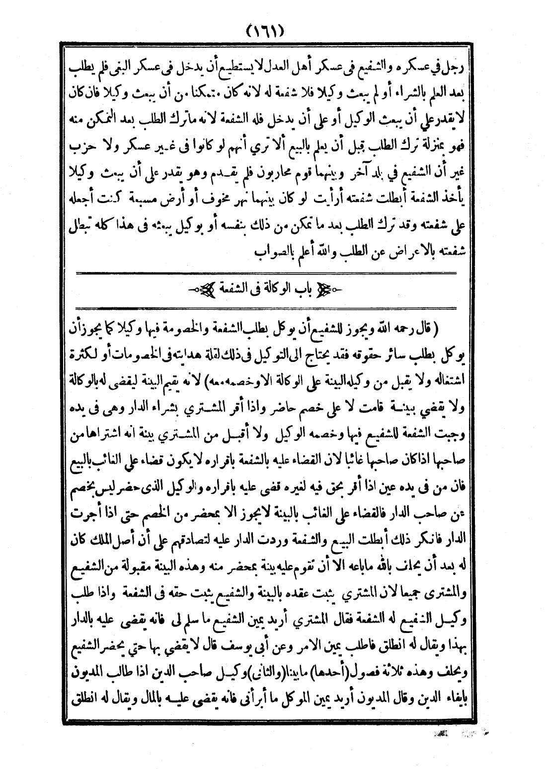 [بَابُ الْوَكَالَةِ فِي الشُّفْعَةِ]