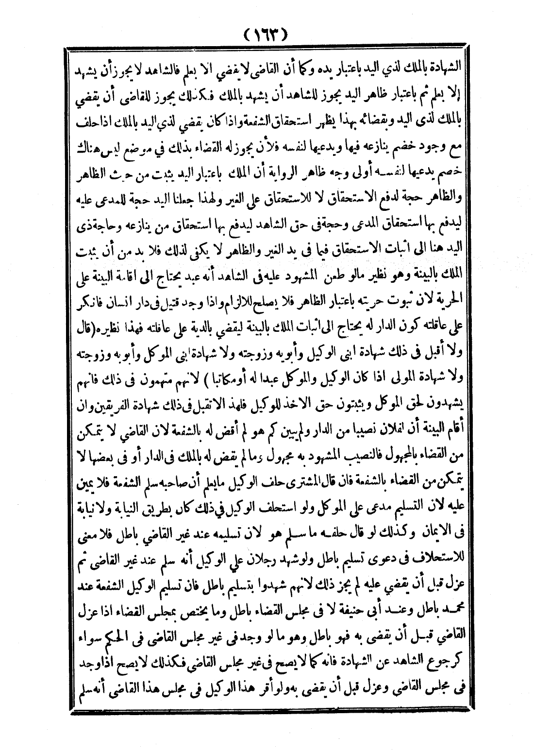 الشَّهَادَةُ بِالْمِلْكِ لِذِي الْيَدِ بِاعْتِبَارِ يَدِهِ وَكَمَا أَنَّ الْقَاضِيَ لَا يَقْضِي، إلَّا بِعِلْمٍ، فَالشَّاهِدُ لَا يَجُوزُ أَنْ يَشْهَدَ، إلَّا بِعِلْمٍ، ثُمَّ بِاعْتِبَارِ ظَاهِرِ الْيَدِ يَجُوزُ لِلشَّاهِدِ أَنْ يَشْهَدَ بِالْمِلْكِ فَكَذَلِكَ يَجُوزُ لِلْقَاضِي أَنْ يَقْضِيَ بِالْمِلْكِ لِذِي الْيَدِ وَبِقَضَائِهِ بِهَذَا يَظْهَرُ اسْتِحْقَاقُ الشُّفْعَةِ وَإِذَا كَانَ يَقْضِي لِذِي الْيَدِ بِالْمِلْكِ إذَا حَلَفَ مَعَ وُجُودِ خَصْمٍ يُنَازِعُهُ فِيهَا وَيَدَّعِيهَا لِنَفْسِهِ فَلَأَنْ يَجُوزُ لَهُ الْقَضَاءُ بِذَلِكَ فِي مَوْضِعٍ لَيْسَ هُنَاكَ خَصْمٌ يَدَّعِيهَا لِنَفْسِهِ أَوْلَى. وَجْهُ ظَاهِرِ الرِّوَايَةِ أَنَّ الْمِلْكَ بِاعْتِبَارِ الْيَدِ يَثْبُتُ مِنْ حَيْثُ الظَّاهِرُ، وَالظَّاهِرُ حُجَّةٌ لِدَفْعِ الِاسْتِحْقَاقِ لَا لِلِاسْتِحْقَاقِ عَلَى الْغَيْرِ؛ وَلِهَذَا جَعَلْنَا الْيَدَ حُجَّةً لِلْمُدَّعِي عَلَيْهِ؛ لِيَدْفَعَ بِهَا اسْتِحْقَاقَ الْمُدَّعِي وَحُجَّةً فِي حَقِّ الشَّاهِدِ؛ لِيَدْفَعَ بِهَا اسْتِحْقَاقَ مَنْ يُنَازِعُهُ، وَحَاجَةُ ذِي الْيَدِ هُنَا إلَى إثْبَاتِ الِاسْتِحْقَاقِ فِيمَا فِي يَدِ الْغَيْرِ، وَالظَّاهِرُ لَا يَكْفِي لِذَلِكَ، فَلَا بُدَّ مِنْ أَنْ يَثْبُتَ الْمِلْكُ بِالْبَيِّنَةِ، وَهُوَ نَظِيرُ مَا لَوْ طَعَنَ الْمَشْهُودُ عَلَيْهِ فِي الشَّاهِدِ أَنَّهُ عَبْدٌ يَحْتَاجُ إلَى إقَامَةِ الْبَيِّنَةِ عَلَى الْحُرِّيَّةِ؛ لِأَنَّ ثُبُوتَ حُرِّيَّتِهِ بِاعْتِبَارِ الظَّاهِرِ، فَلَا يَصْلُحُ لِلْإِلْزَامِ وَإِذَا وُجِدَ قَتِيلٌ فِي دَارِ إنْسَانٍ فَأَنْكَرَ عَلَى عَاقِلَتِهِ كَوْنَ الدَّارِ لَهُ يَحْتَاجُ إلَى إثْبَاتِ الْمِلْكِ بِالْبَيِّنَةِ؛ لِيَقْضِيَ بِالدِّيَةِ عَلَى عَاقِلَتِهِ فَهَذَا نَظِيرُهُ (قَالَ: وَلَا أَقْبَلُ فِي ذَلِكَ شَهَادَةَ ابْنَيْ الْوَكِيلِ وَأَبَوَيْهِ وَزَوْجَتِهِ، وَلَا شَهَادَةَ ابْنَيْ الْمُوَكِّلِ وَأَبَوَيْهِ وَزَوْجَتِهِ، وَلَا شَهَادَةَ الْمَوْلَى إذَا كَانَ الْوَكِيلُ، وَالْمُوَكِّلُ عَبْدًا لَهُ، أَوْ مُكَاتَبًا)؛ لِأَنَّهُمْ مُتَّهَمُونَ فِي ذَلِكَ، فَإِنَّهُمْ يَشْهَدُونَ لِحَقِّ الْمُوَكِّلِ وَيُثْبِتُونَ حَقَّ الْأَخْذِ لِلْوَكِيلِ؛ فَلِهَذَا لَا تُقْبَلُ فِي ذَلِكَ شَهَادَةُ الْفَرِيقَيْنِ.