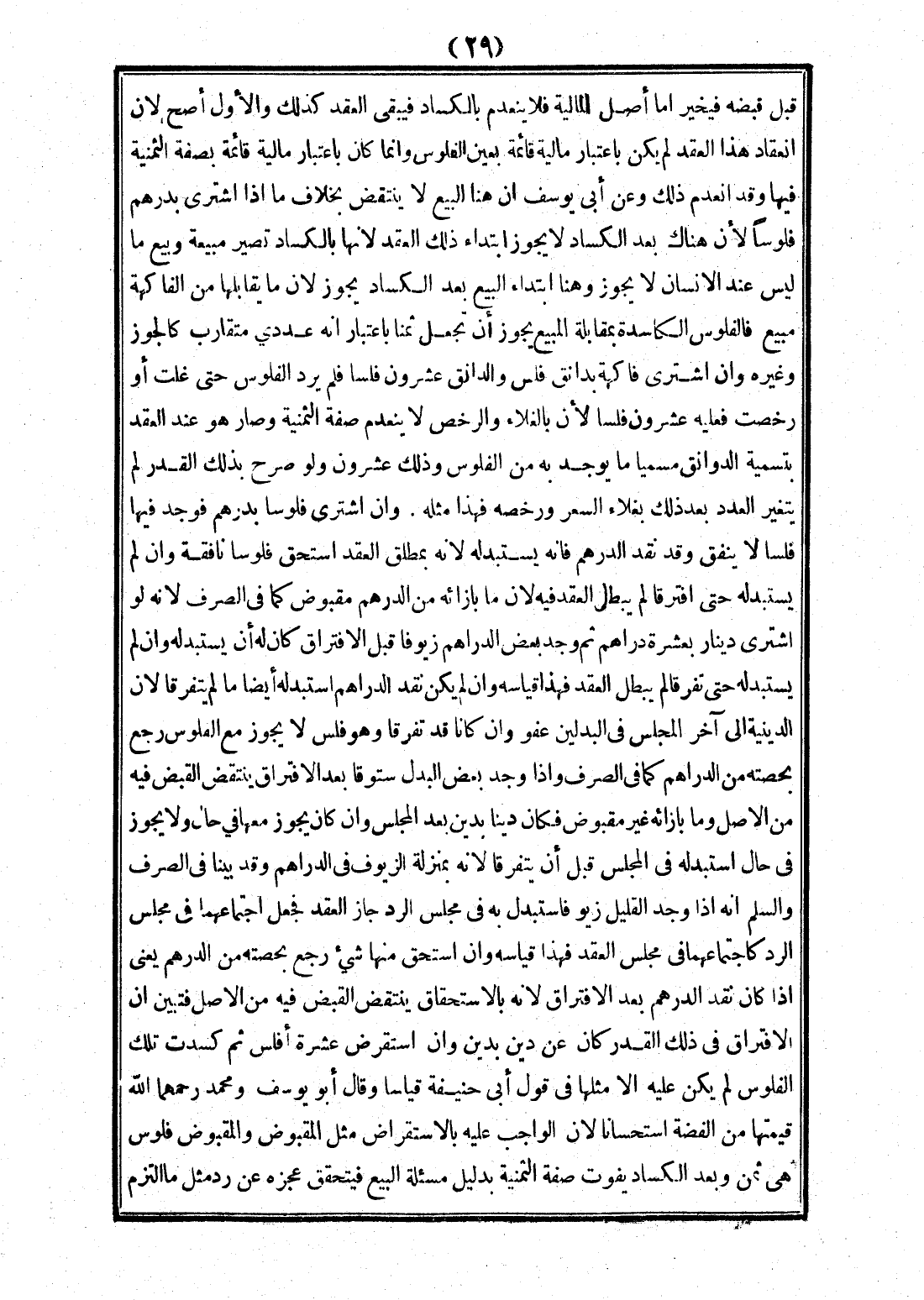 وَإِنْ اشْتَرَى فُلُوسًا بِدِرْهَمٍ، فَوَجَدَ فِيهَا فَلْسًا لَا يُنْفَقُ، وَقَدْ نَقَدَ الدِّرْهَمَ فَإِنَّهُ يَسْتَبْدِلُهُ؛ لِأَنَّهُ بِمُطْلَقِ الْعَقْدِ اسْتَحَقَّ فُلُوسًا نَافِقَةً، وَإِنْ لَمْ يَسْتَبْدِلْهُ حَتَّى افْتَرَقَا لَمْ يَبْطُلْ الْعَقْدُ فِيهِ؛ لِأَنَّ مَا بِإِزَائِهِ مِنْ الدِّرْهَمِ مَقْبُوضٌ كَمَا فِي الصَّرْفِ؛ لِأَنَّهُ لَوْ اشْتَرَى دِينَارًا بِعَشَرَةِ دَرَاهِمَ، ثُمَّ وَجَدَ بَعْضَ الدَّرَاهِمِ زُيُوفًا قَبْلَ الِافْتِرَاقِ كَانَ لَهُ أَنْ يَسْتَبْدِلَهُ، وَإِنْ لَمْ يَسْتَبْدِلْهُ حَتَّى تَفَرَّقَا لَمْ يَبْطُلْ الْعَقْدُ، فَهَذَا قِيَاسُهُ، وَإِنْ لَمْ يَكُنْ نَقَدَ الدَّرَاهِمَ اسْتَبْدَلَهُ أَيْضًا مَا لَمْ يَتَفَرَّقَا؛ لِأَنَّ الدَّيْنِيَّةَ إلَى آخِرِ الْمَجْلِسِ فِي الْبَدَلَيْنِ عَفْوٌ، وَإِنْ كَانَا قَدْ تَفَرَّقَا - وَهُوَ فَلْسٌ لَا يَجُوزُ مَعَ الْفُلُوسِ - رَجَعَ بِحِصَّتِهِ مِنْ الدَّرَاهِمِ كَمَا فِي الصَّرْفِ، وَإِذَا، وَجَدَ بَعْضَ الْبَدَلِ سُتُّوقًا بَعْدَ الِافْتِرَاقِ يُنْتَقَضُ الْقَبْضُ فِيهِ مِنْ الْأَصْلِ، وَمَا بِإِزَائِهِ غَيْرُ مَقْبُوضٍ فَكَانَ دَيْنًا بِدَيْنٍ بَعْدَ الْمَجْلِسِ، وَإِنْ كَانَ يَجُوزُ مَعَهَا فِي حَالٍ، وَلَا يَجُوزُ فِي حَالِ اسْتِبْدَالِهِ فِي الْمَجْلِسِ قَبْلَ أَنْ يَتَفَرَّقَا؛ لِأَنَّهُ بِمَنْزِلَةِ الزُّيُوفِ فِي الدَّرَاهِمِ، وَقَدْ بَيَّنَّا فِي الصَّرْفِ، وَالسَّلَمِ أَنَّهُ إذَا وَجَدَ الْقَلِيلَ زُيُوفًا فَاسْتَبْدَلَ بِهِ فِي مَجْلِسِ الرَّدِّ جَازَ الْعَقْدُ فَجُعِلَ اجْتِمَاعُهُمَا فِي مَجْلِسِ الرَّدِّ كَاجْتِمَاعِهِمَا فِي مَجْلِسِ الْعَقْدِ، فَهَذَا قِيَاسُهُ، وَإِنْ اُسْتُحِقَّ مِنْهَا شَيْءٌ رَجَعَ بِحِصَّتِهِ مِنْ الدِّرْهَمِ يَعْنِي؛ إذَا كَانَ نَقَدَ الدِّرْهَمَ بَعْدَ الِافْتِرَاقِ؛ لِأَنَّهُ بِالِاسْتِحْقَاقِ يَنْتَقِضُ الْقَبْضُ فِيهِ مِنْ الْأَصْلِ فَتَبَيَّنَ أَنَّ الِافْتِرَاقَ فِي ذَلِكَ الْقَدْرِ كَانَ عَنْ دَيْنٍ بِدَيْنٍ.